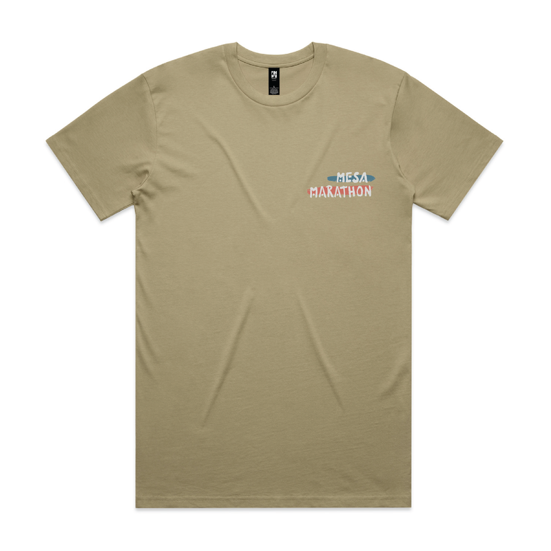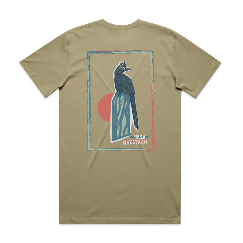 A super soft tan tri-blend t-shirt for every day wear with a clean & simple Mesa Marathon roadrunner logo. Men's & women's sizing.
