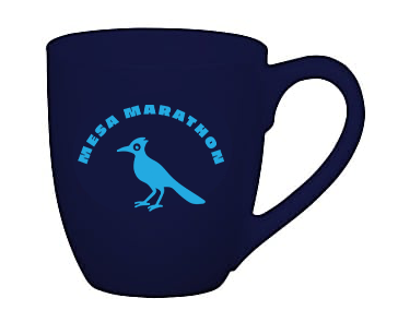 10 oz navy mug with the blue Mesa marathon & roadrunner logo...Great addition to your Mesa marathon collection!