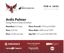 | 1 Mile To Go | 25.2 | 6:40:05 | 15:52/miles | 2.1 | 38:37 | 18:22/miles | 1882 | 1067 M | 127 M25-29 |