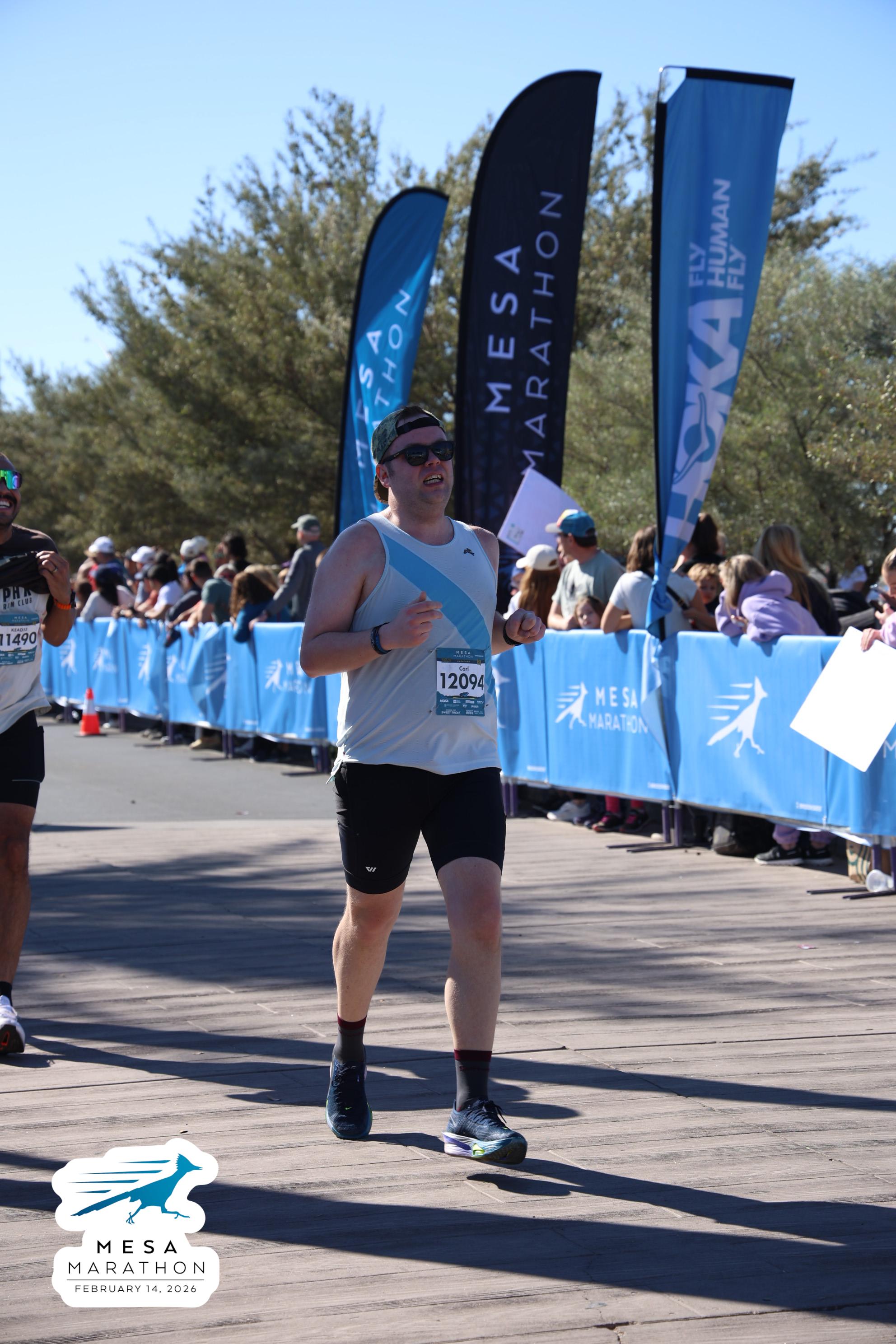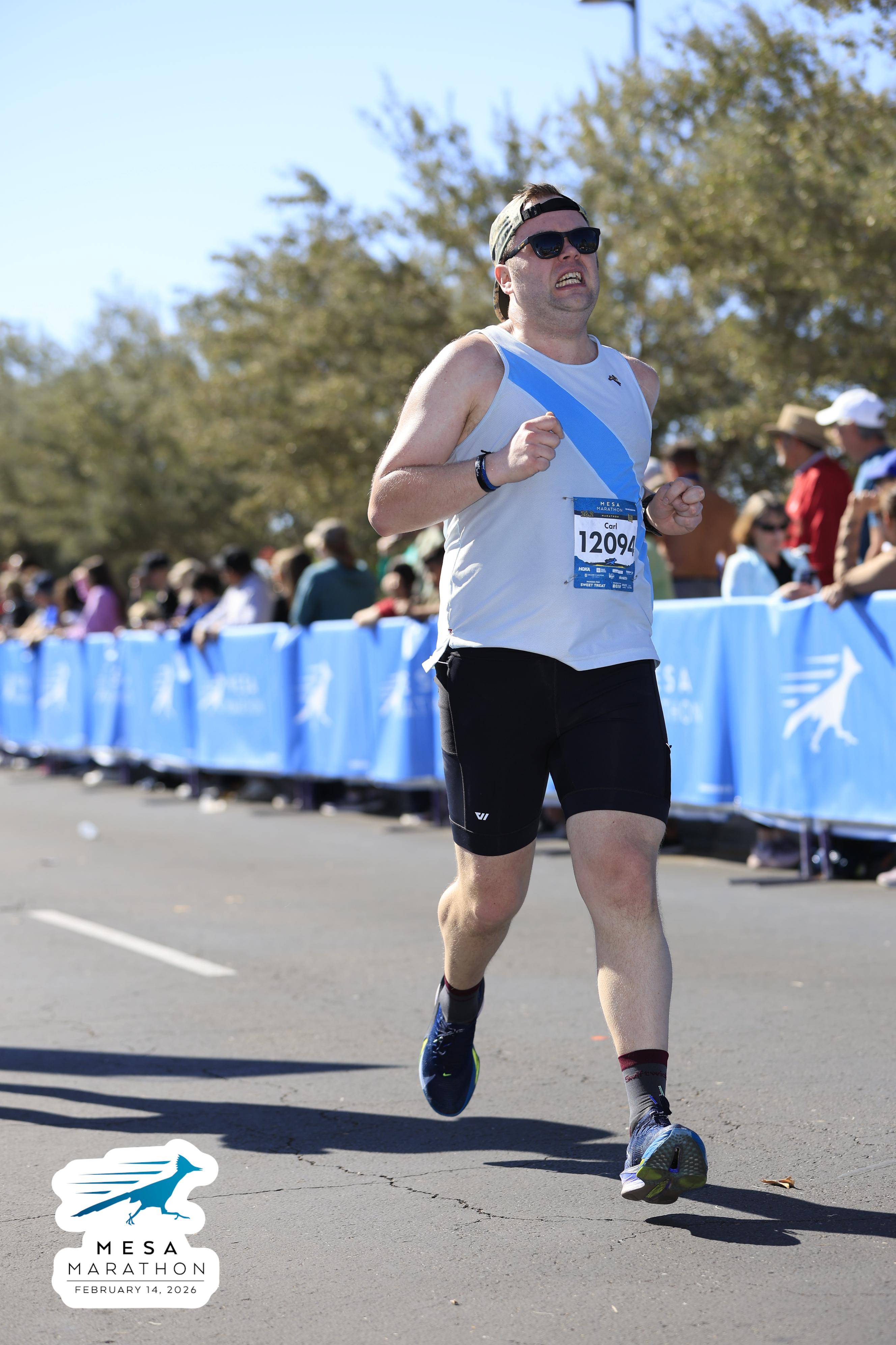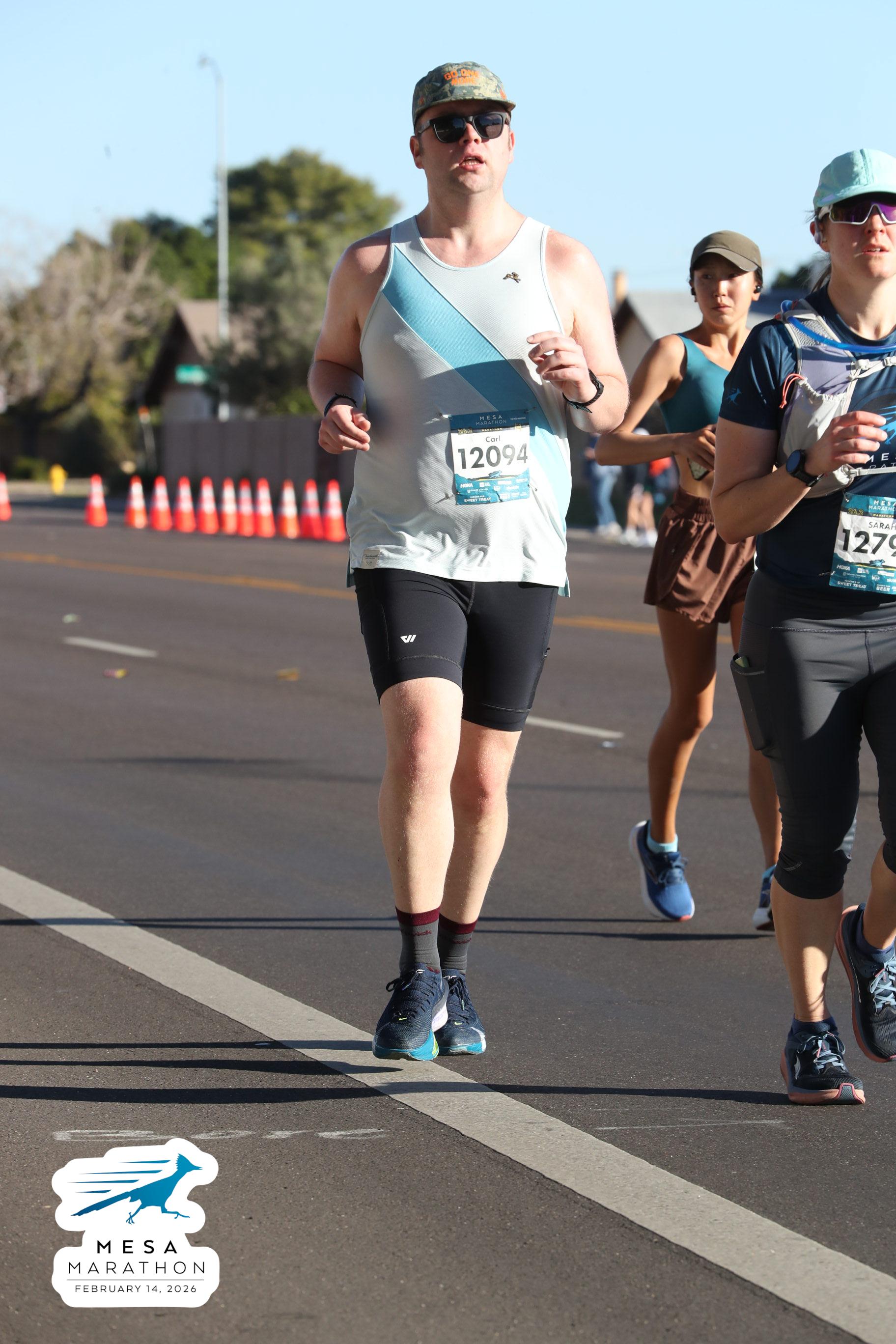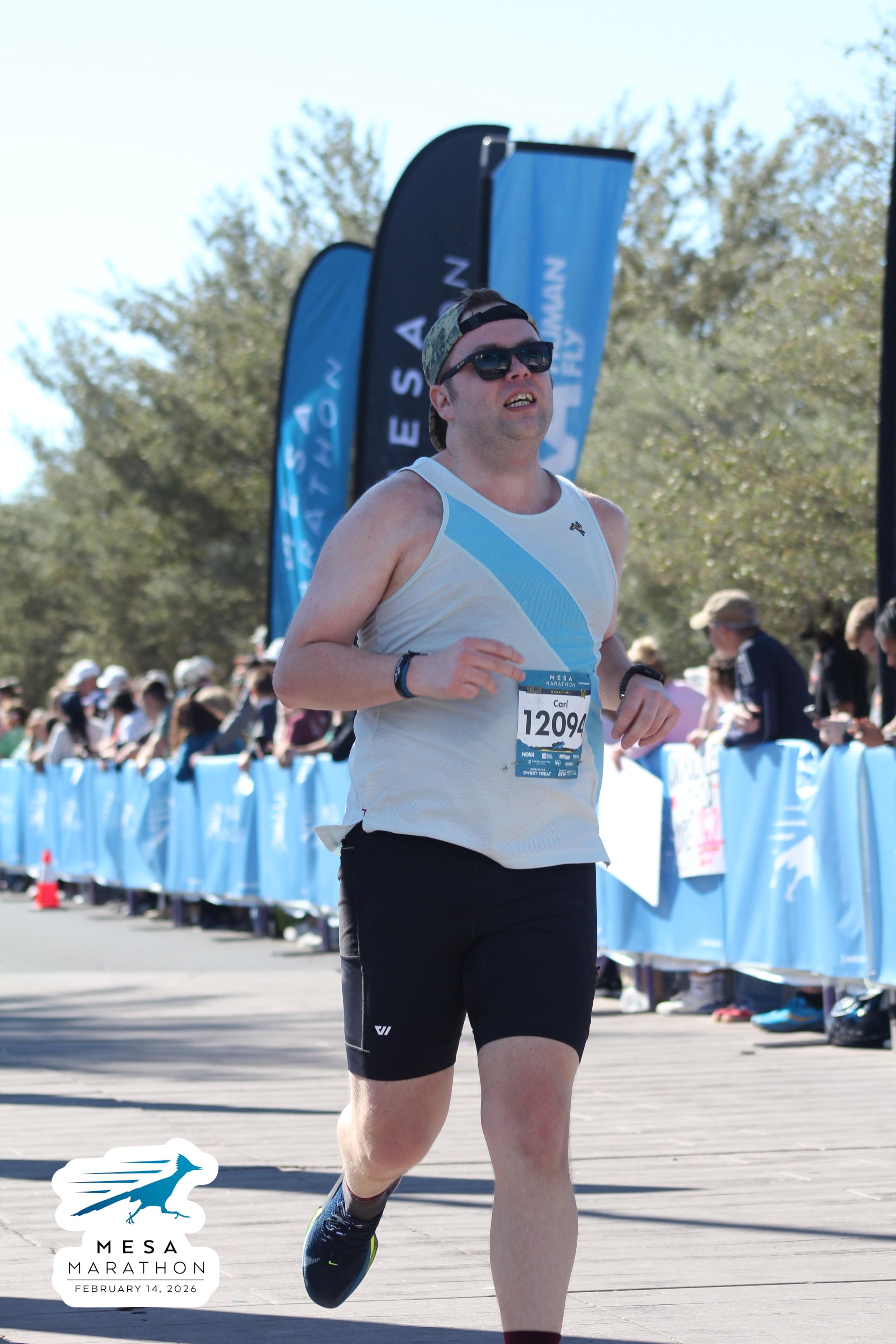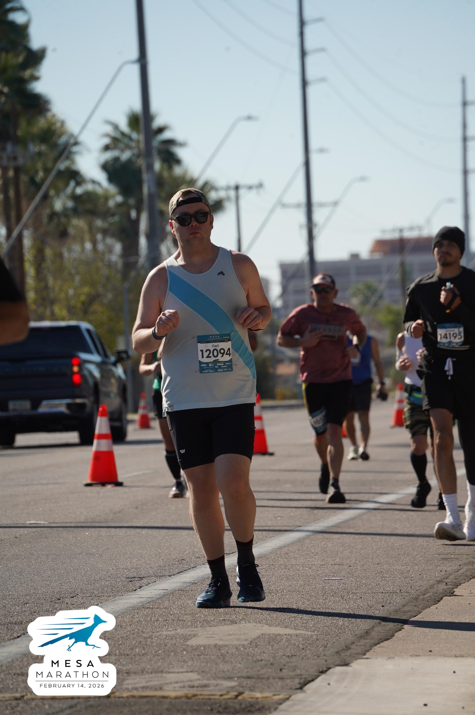 Date: Feb. 14, 2026 Participant: Carl Huffman #12094 Race: 2026 Mesa Marathon Distance: 26.2 miles
