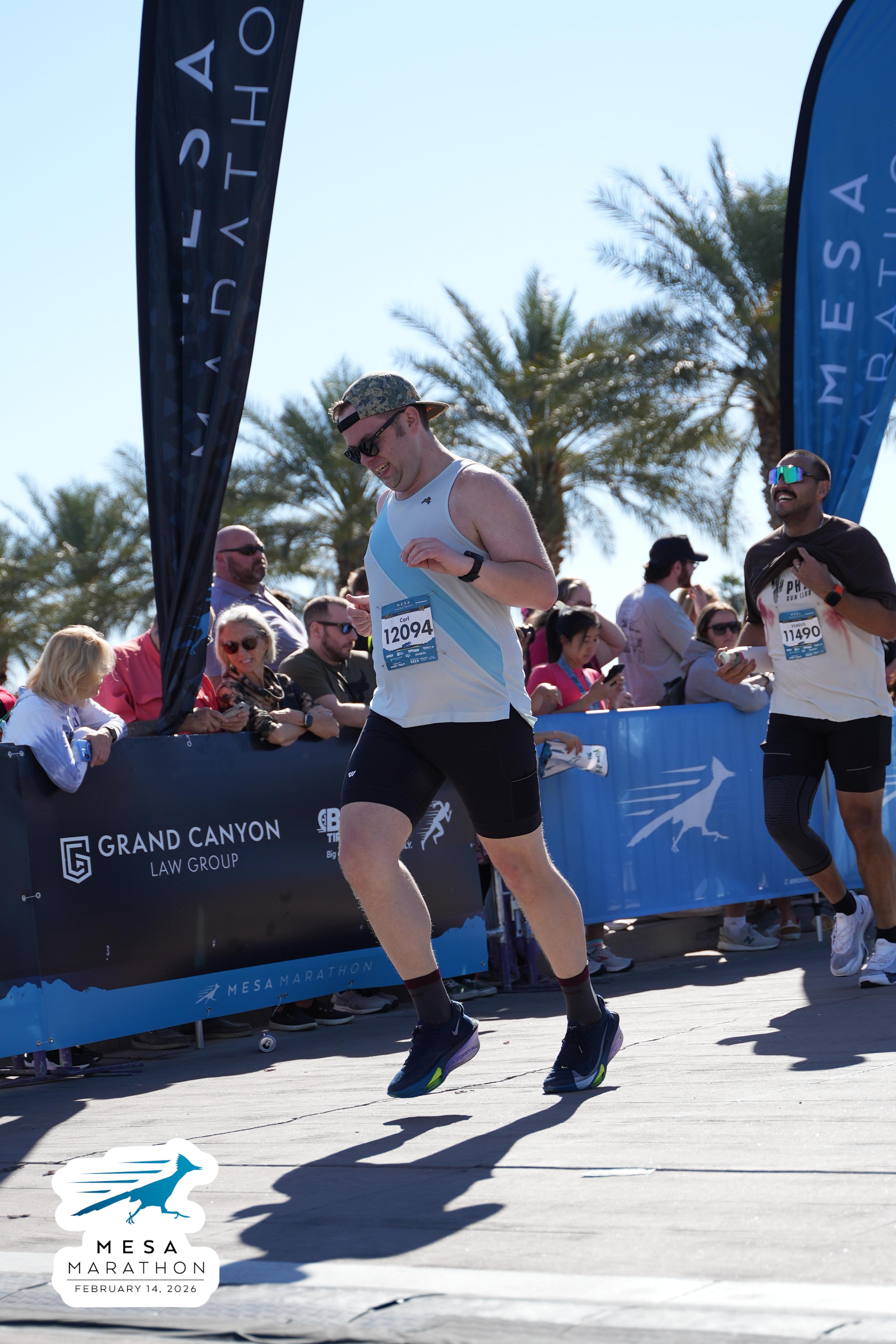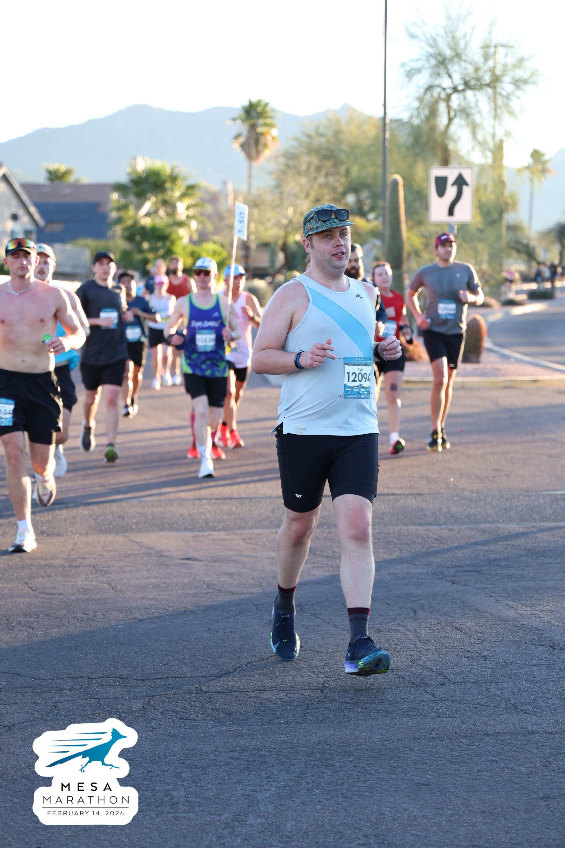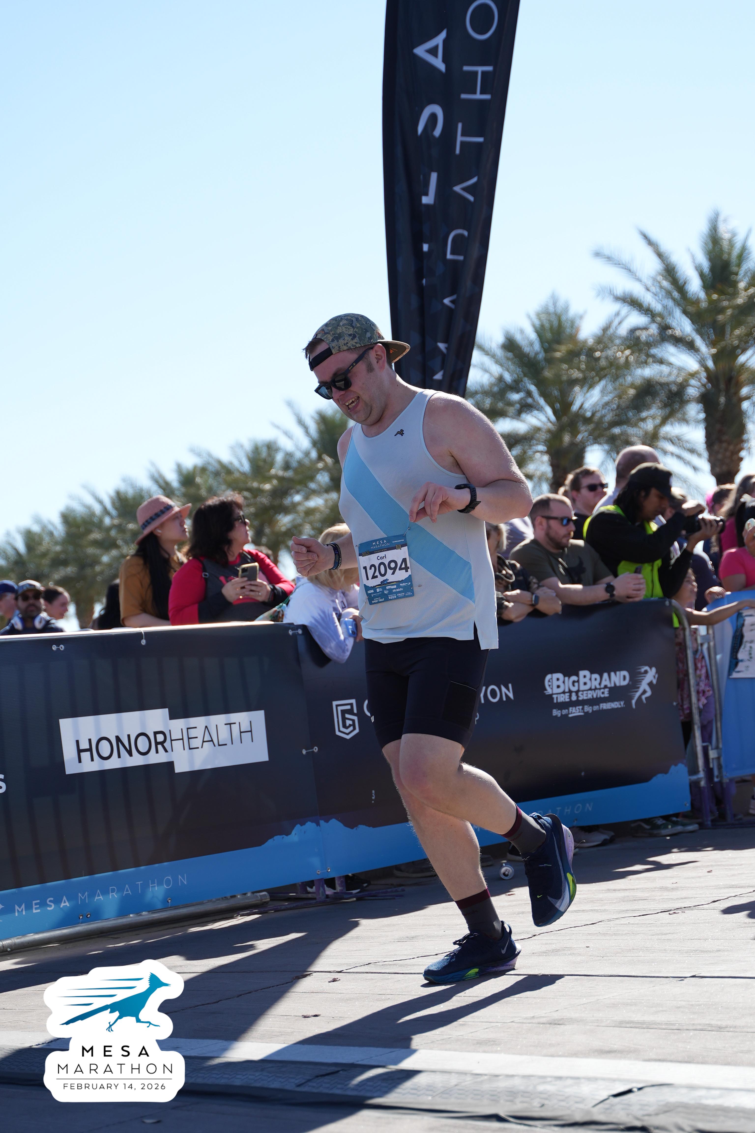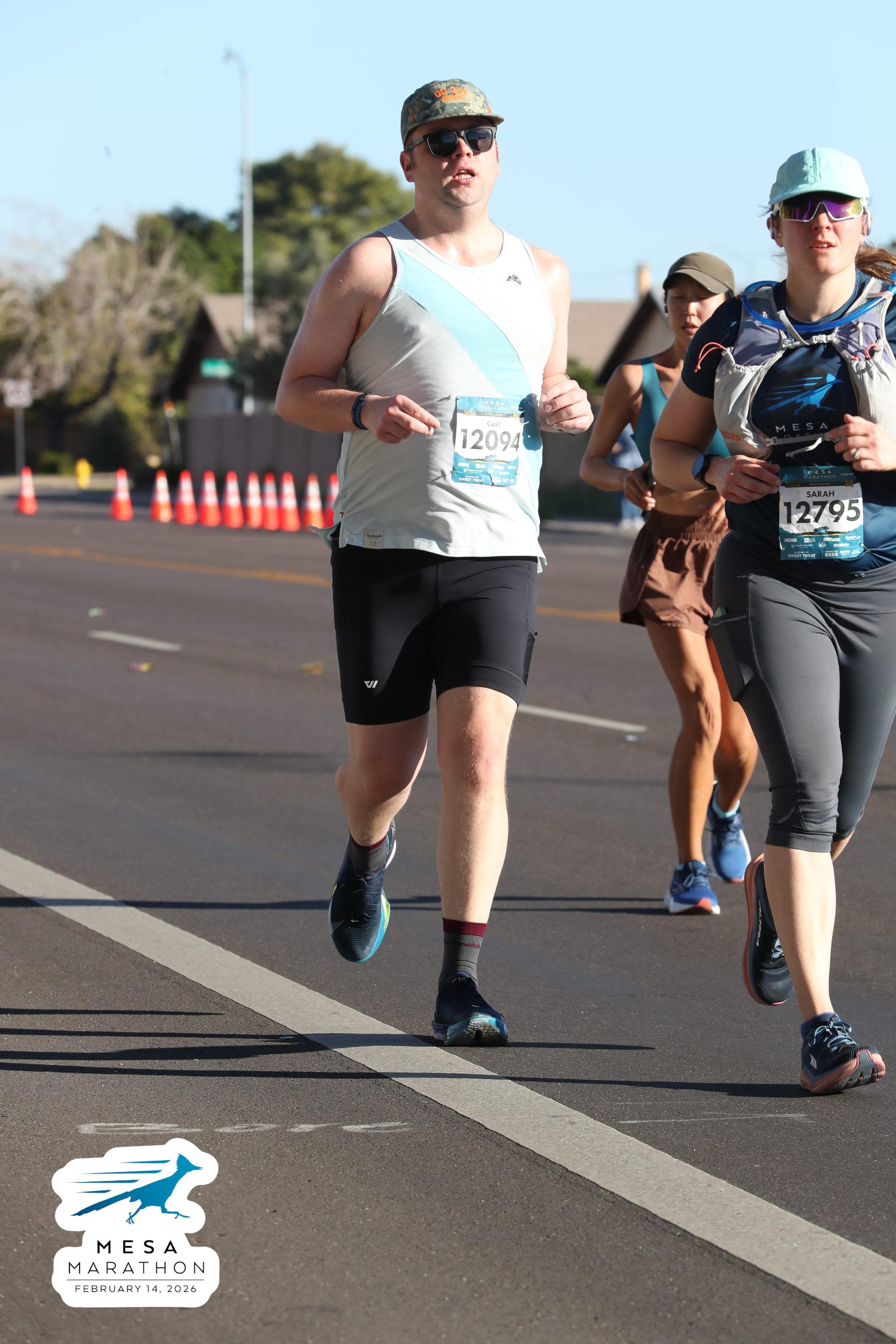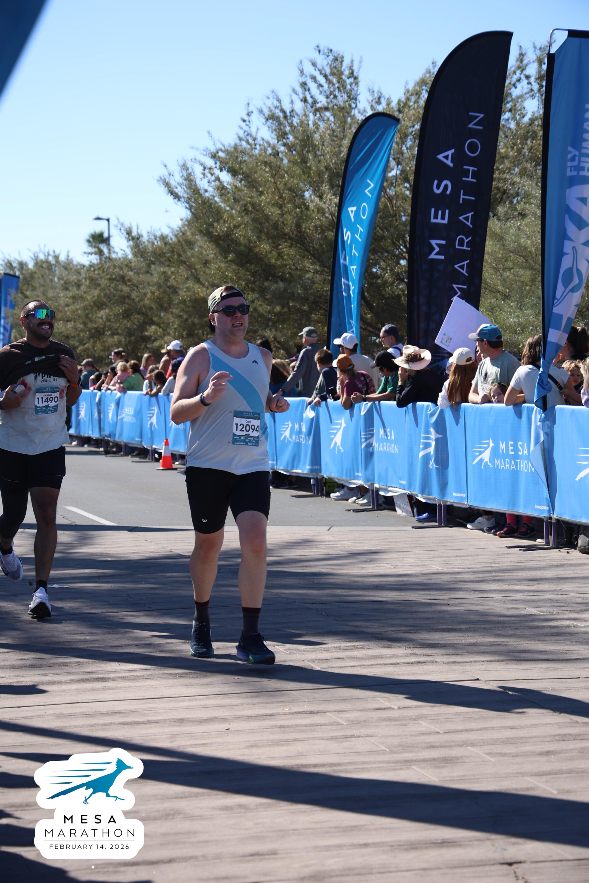 Date: Feb. 14, 2026 Participant: Carl Huffman #12094 Race: 2026 Mesa Marathon Distance: 26.2 miles