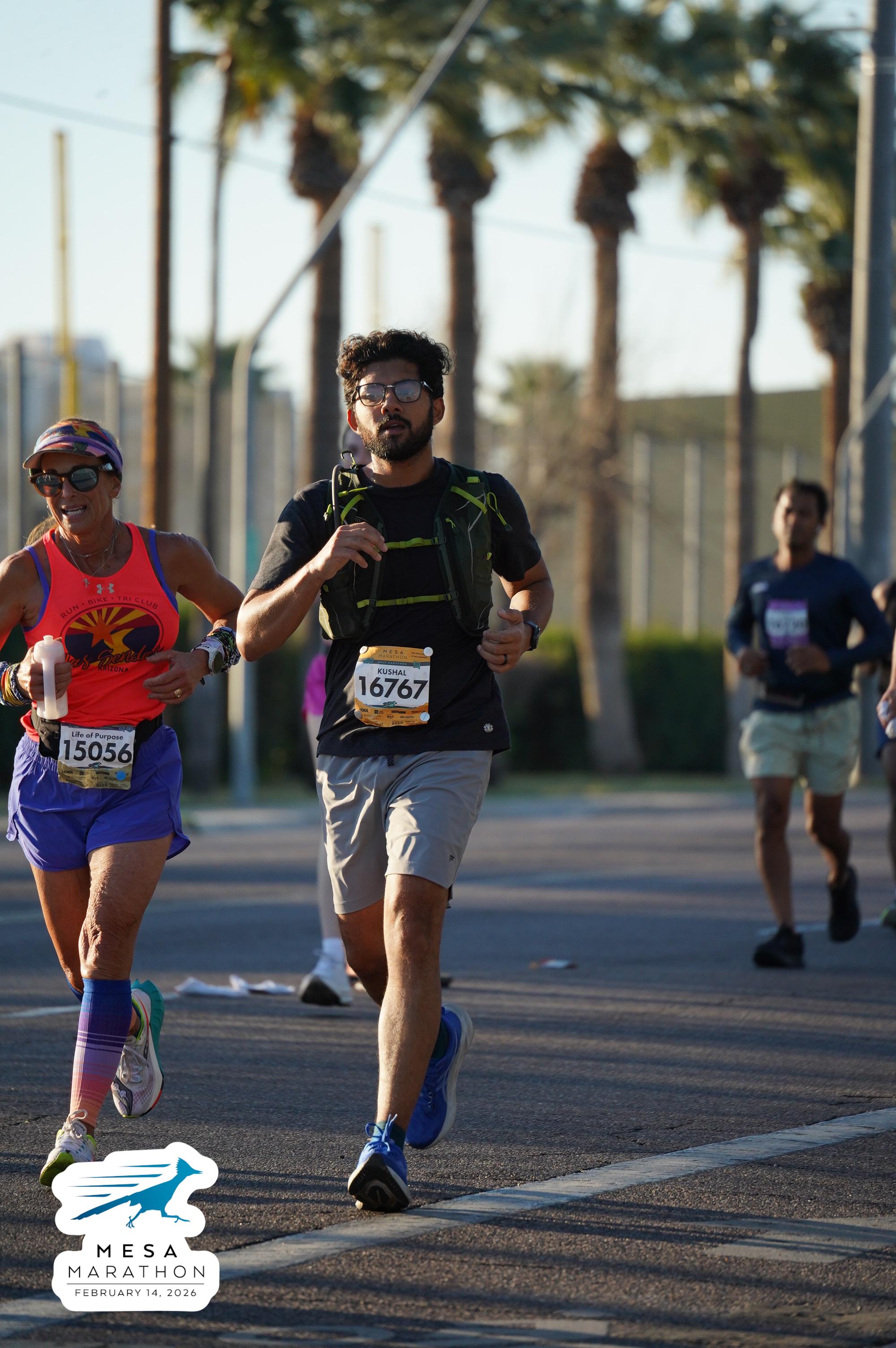 Date: Feb. 14, 2026 Participant: Beverly Crupi #15056 Race: 2026 Mesa Half Marathon Distance: 13.1 miles