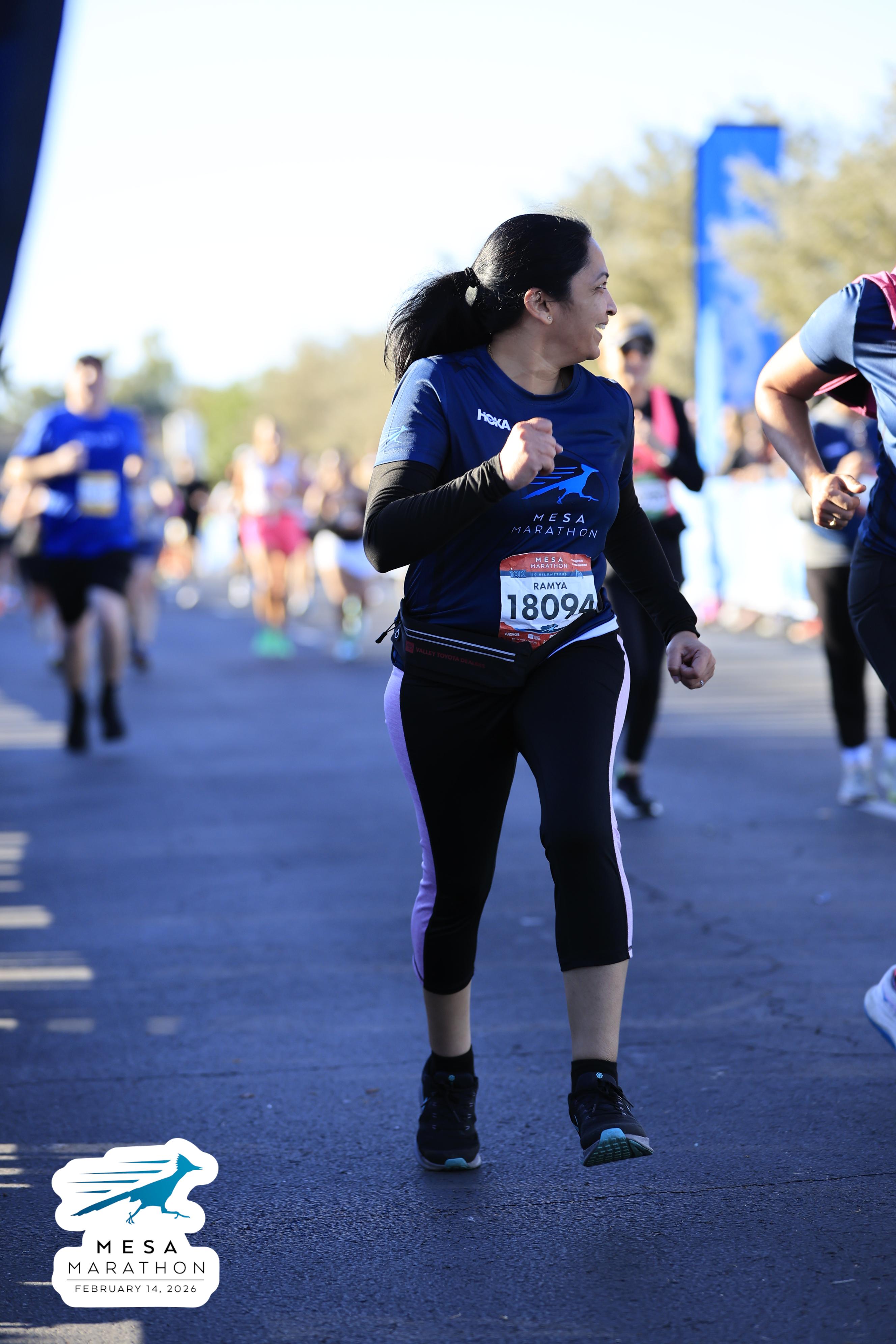 Date: Feb. 14, 2026 Participant: Ramya Boinpally #18094 Race: 2026 Mesa 10K Distance: 6.2 miles