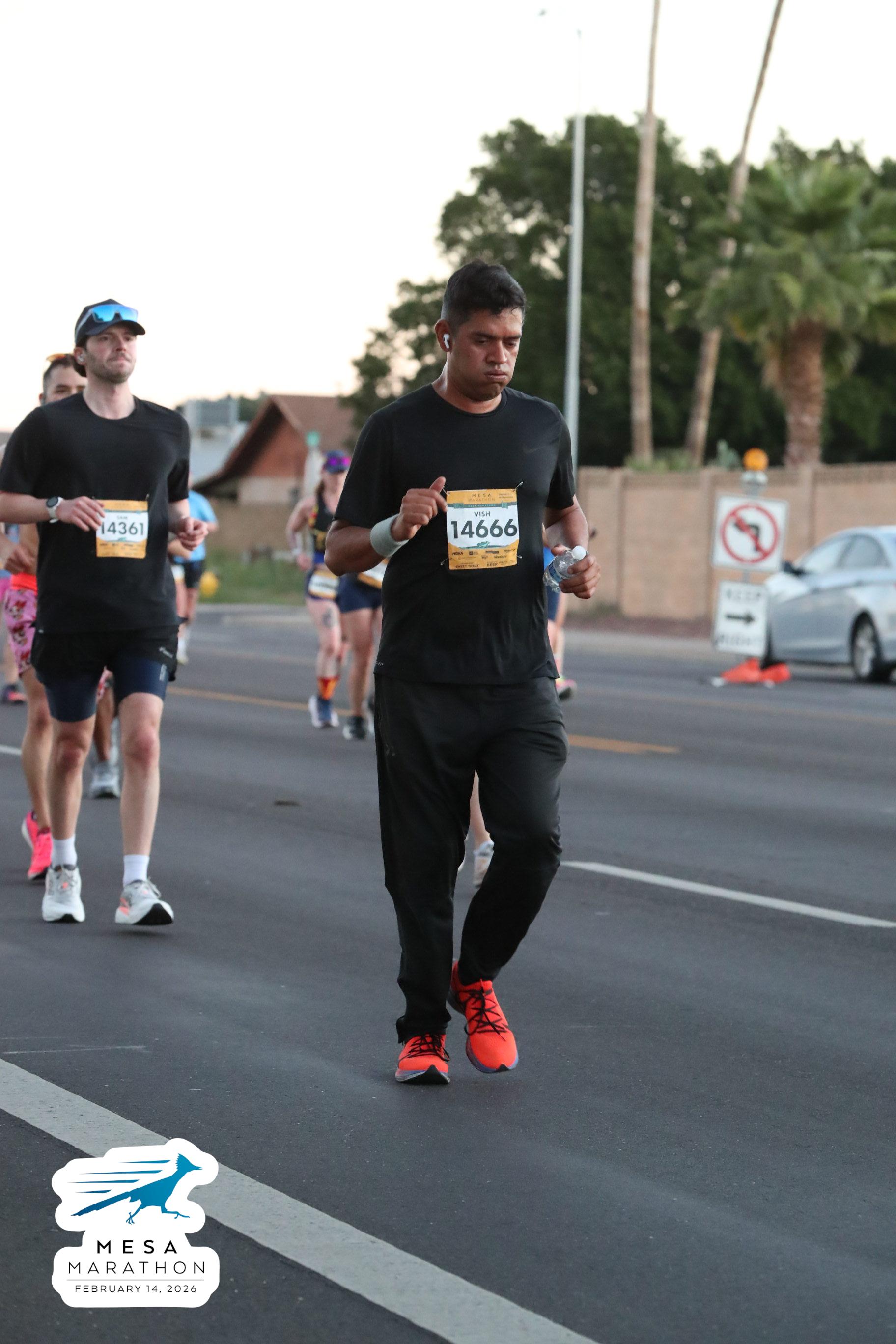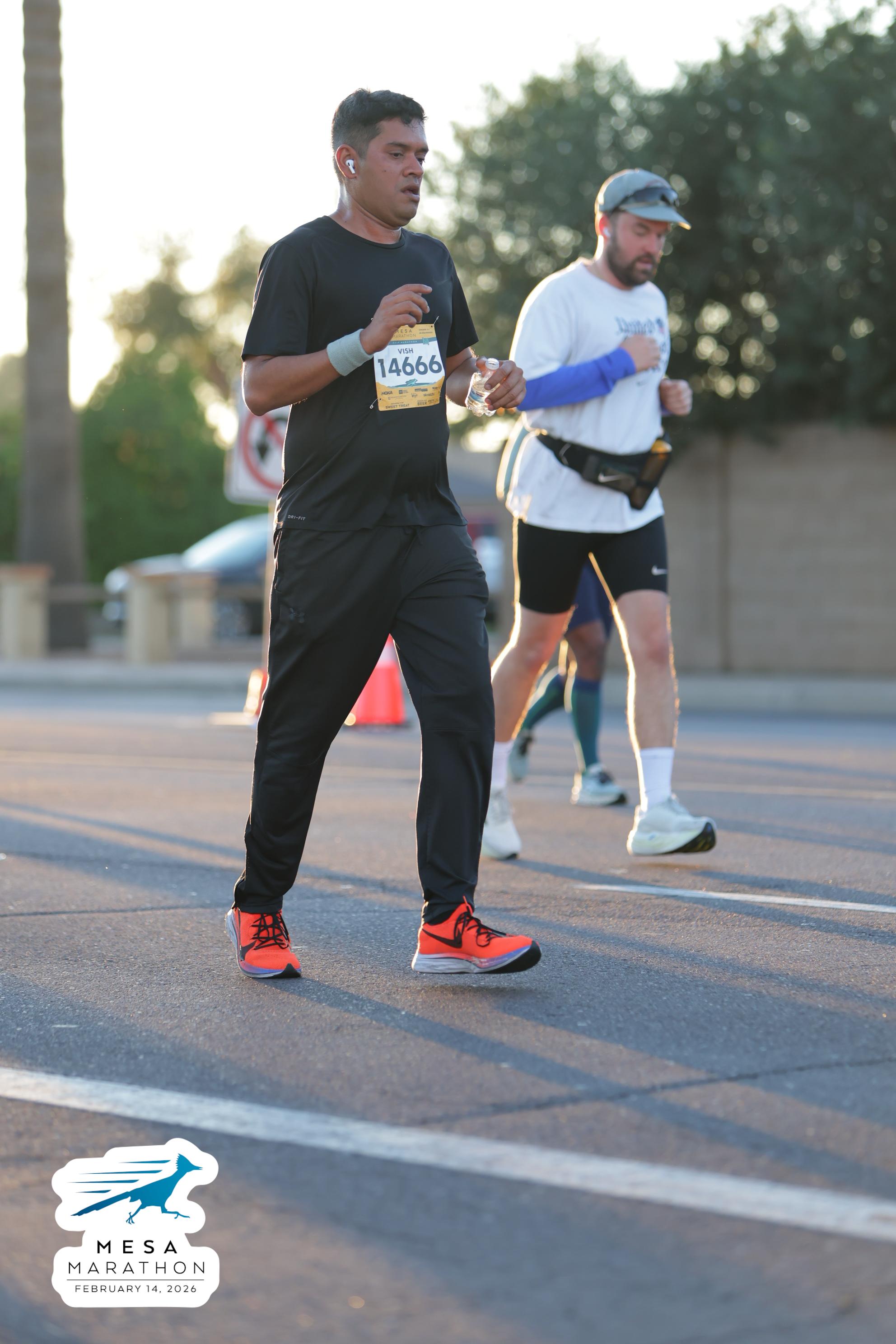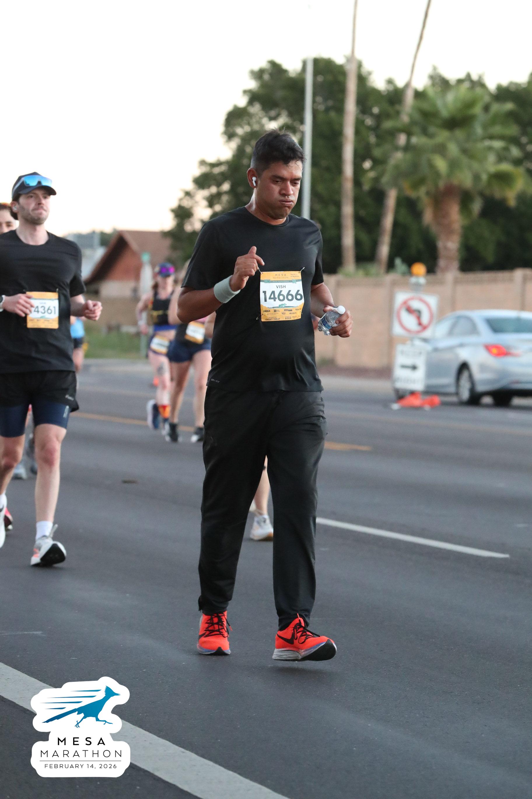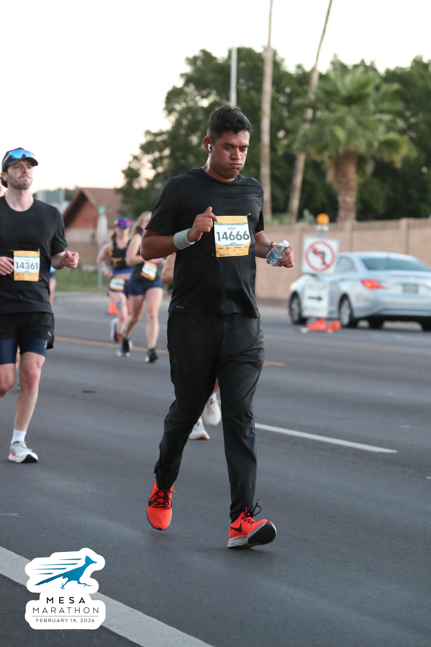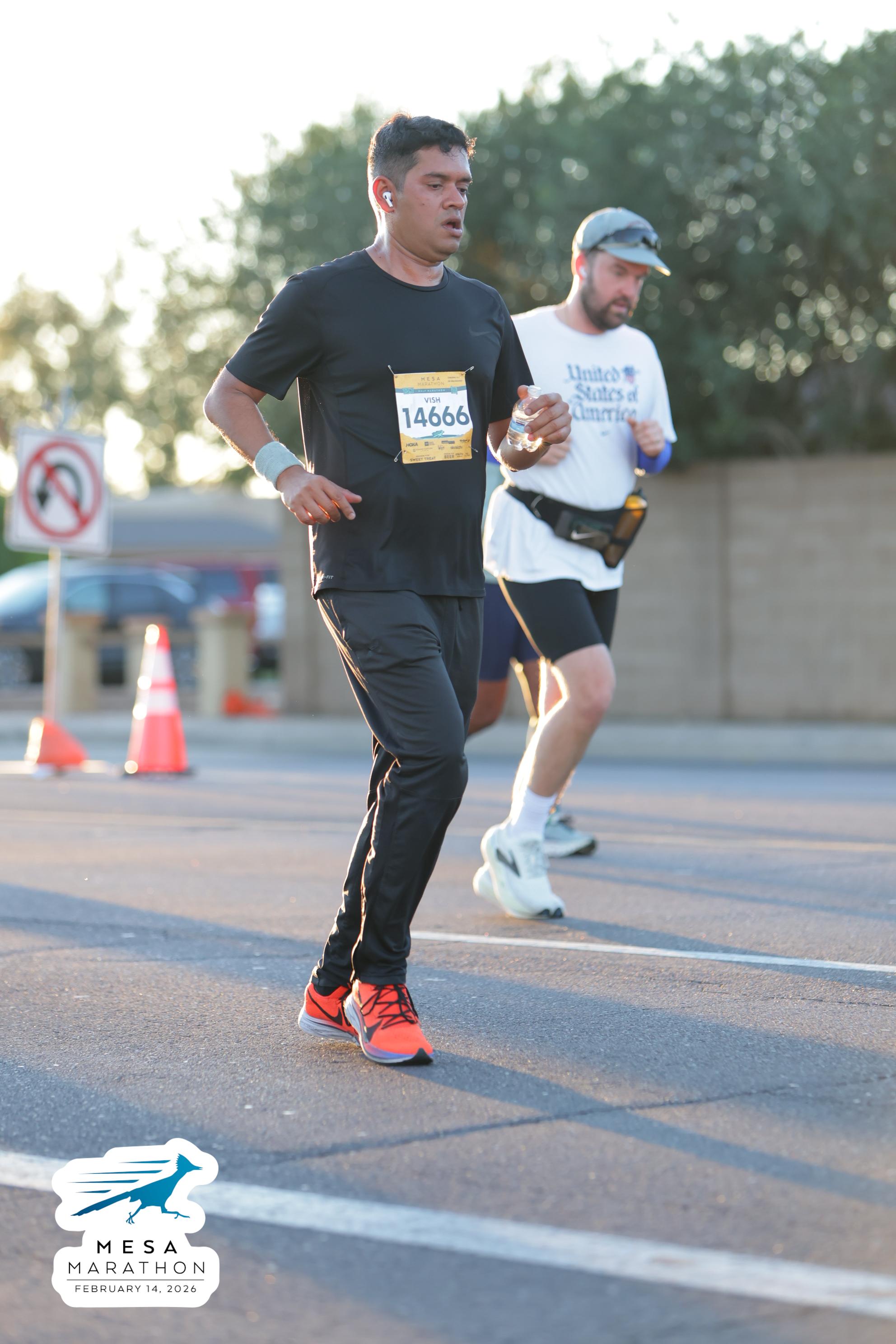 Date: Feb. 14, 2026 Participant: Vish Bhattacharya #14666 Race: 2026 Mesa Half Marathon Distance: 13.1 miles