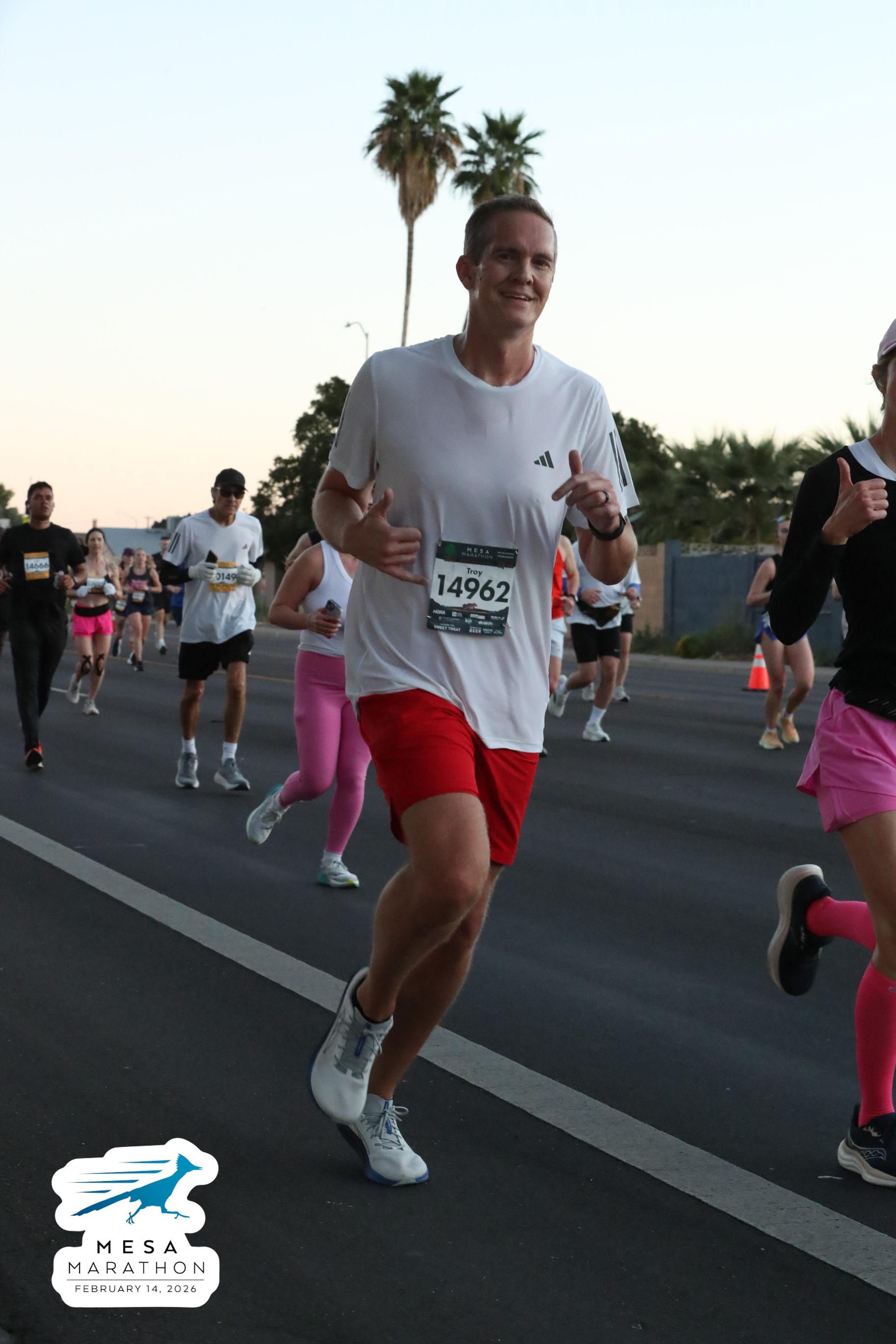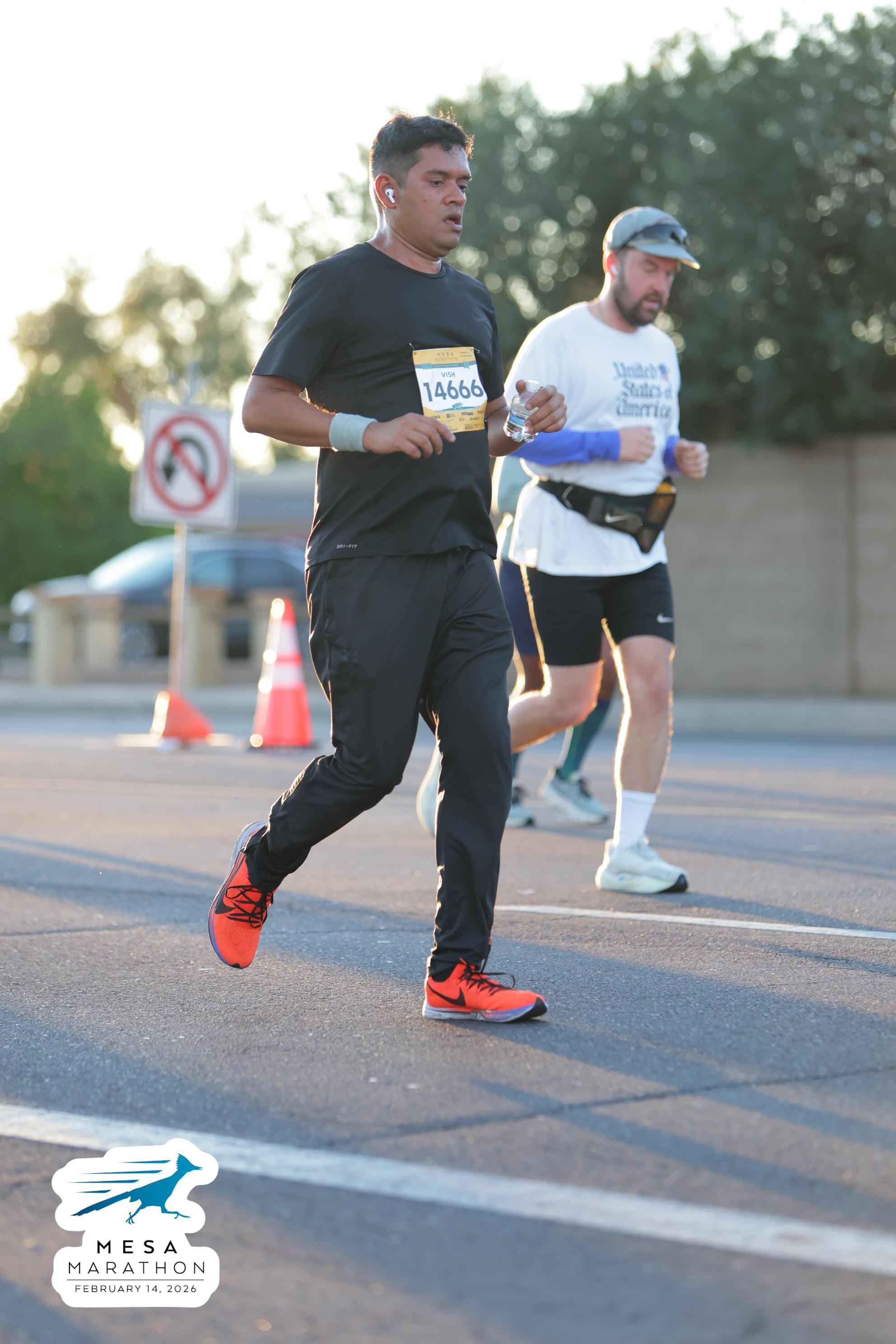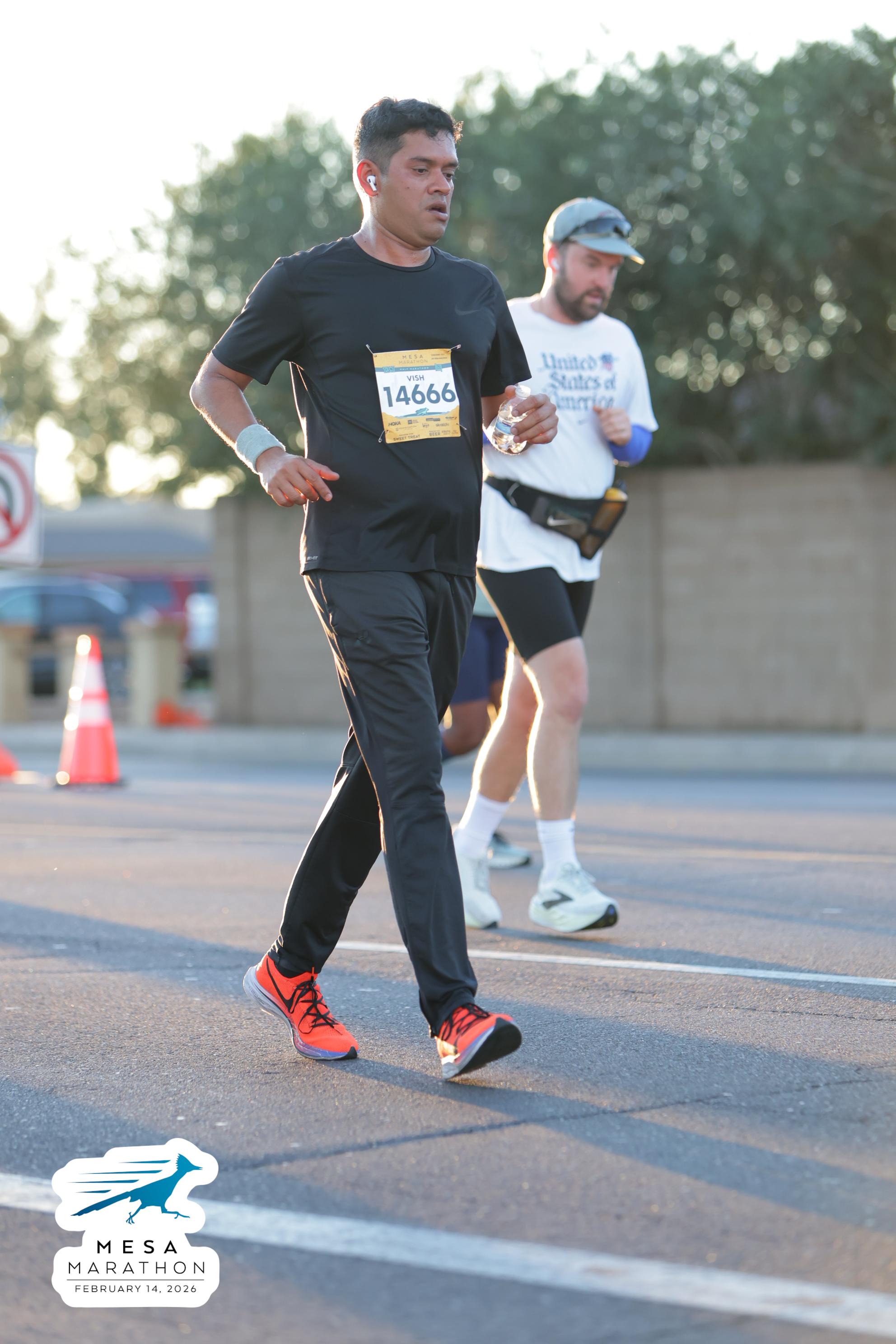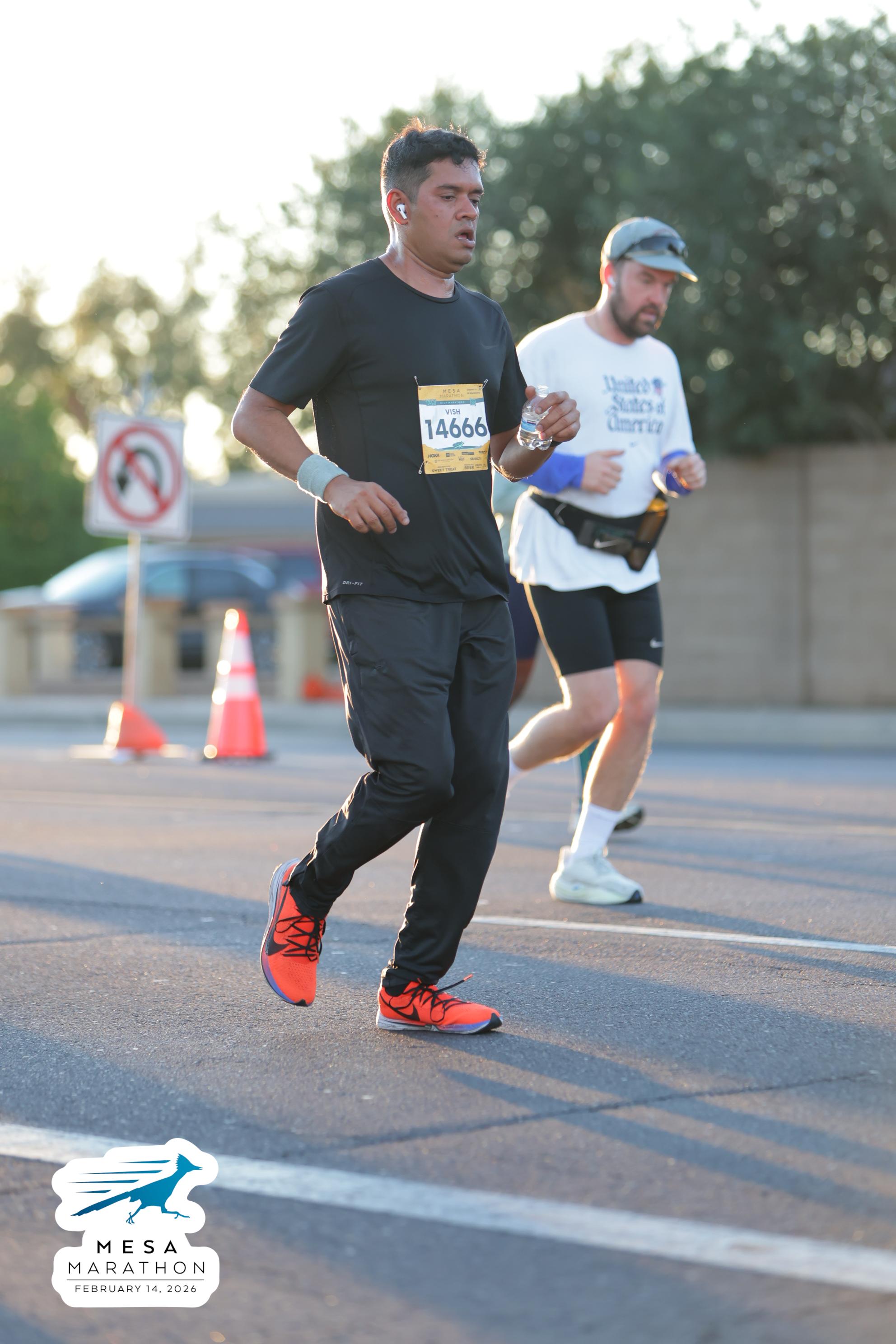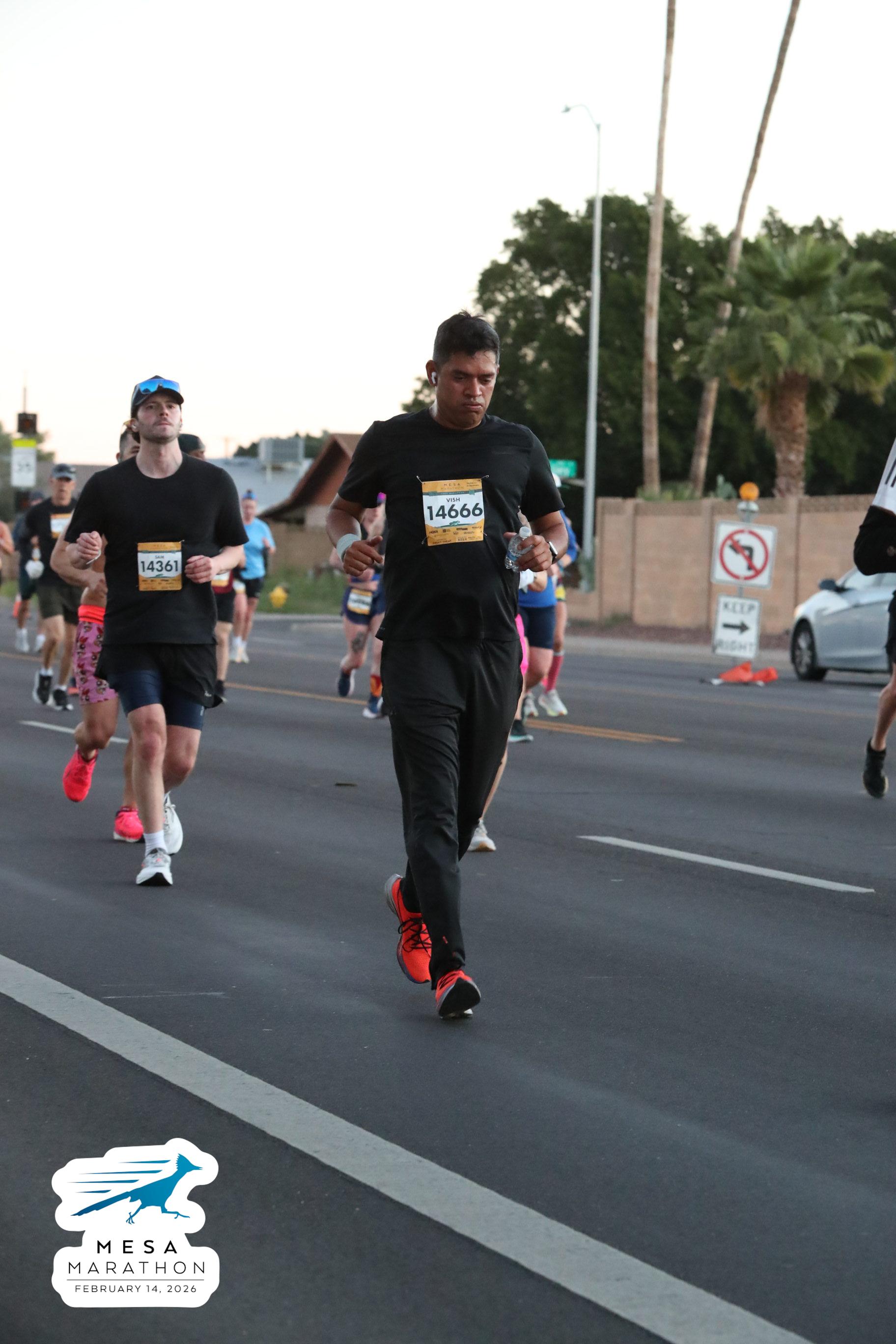 Date: Feb. 14, 2026 Participant: Vish Bhattacharya #14666 Race: 2026 Mesa Half Marathon Distance: 13.1 miles