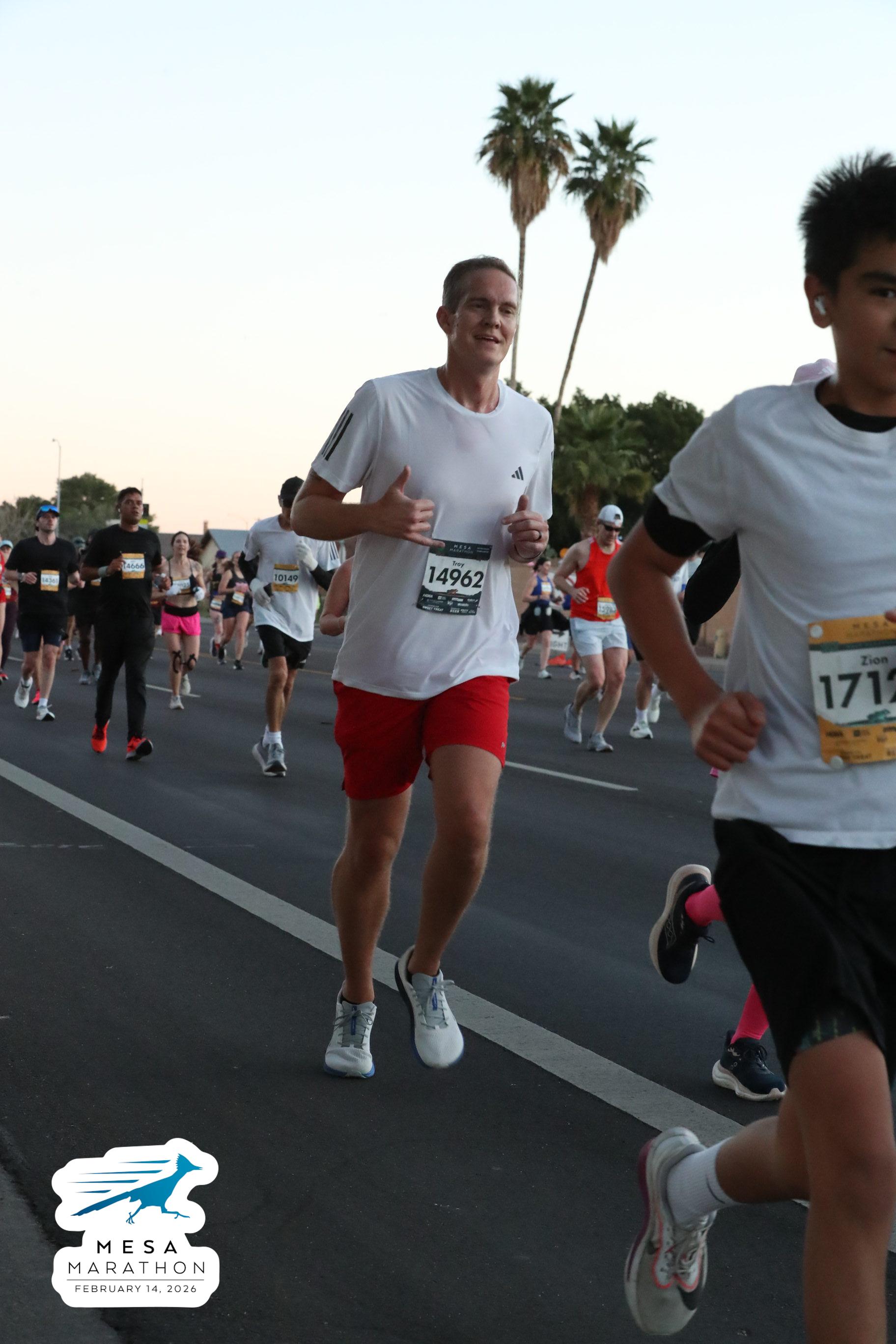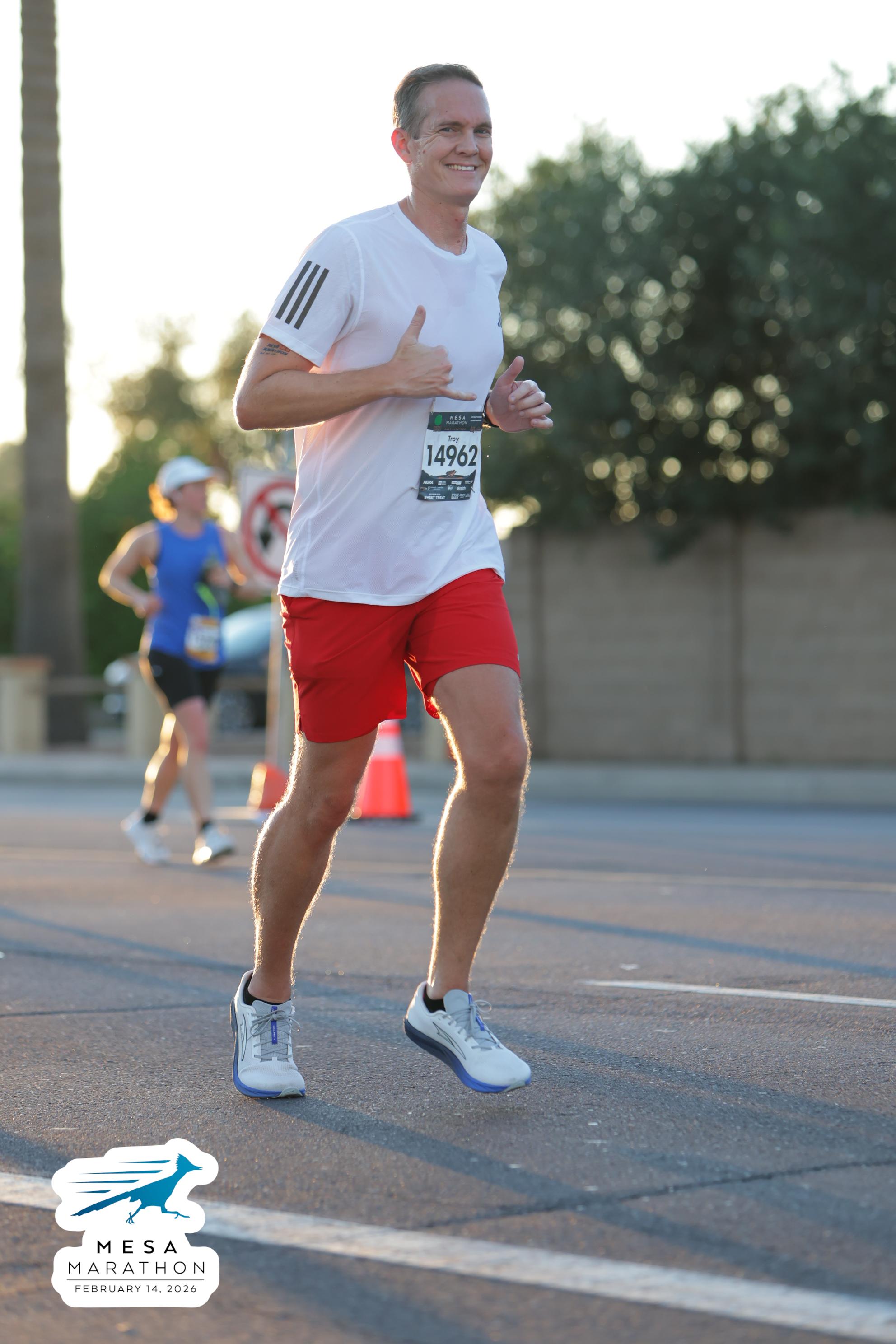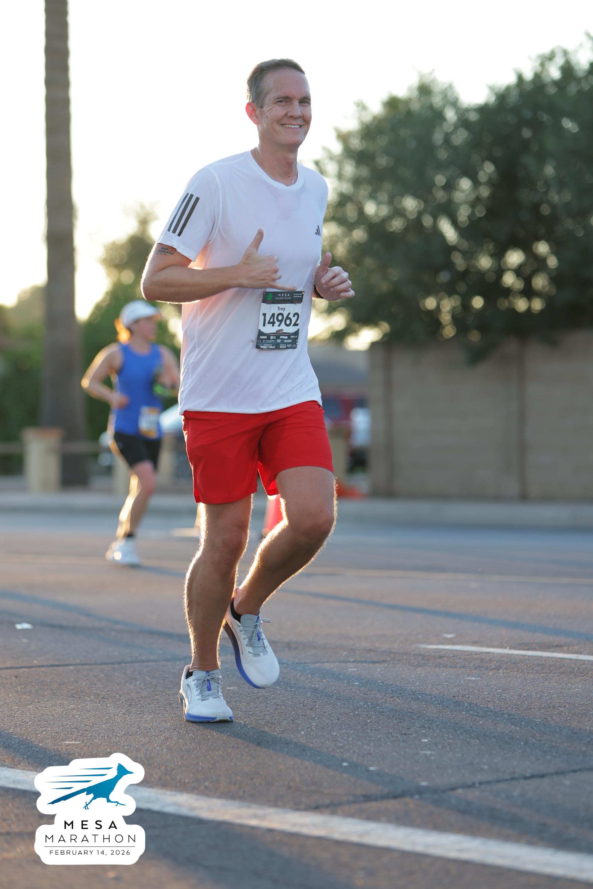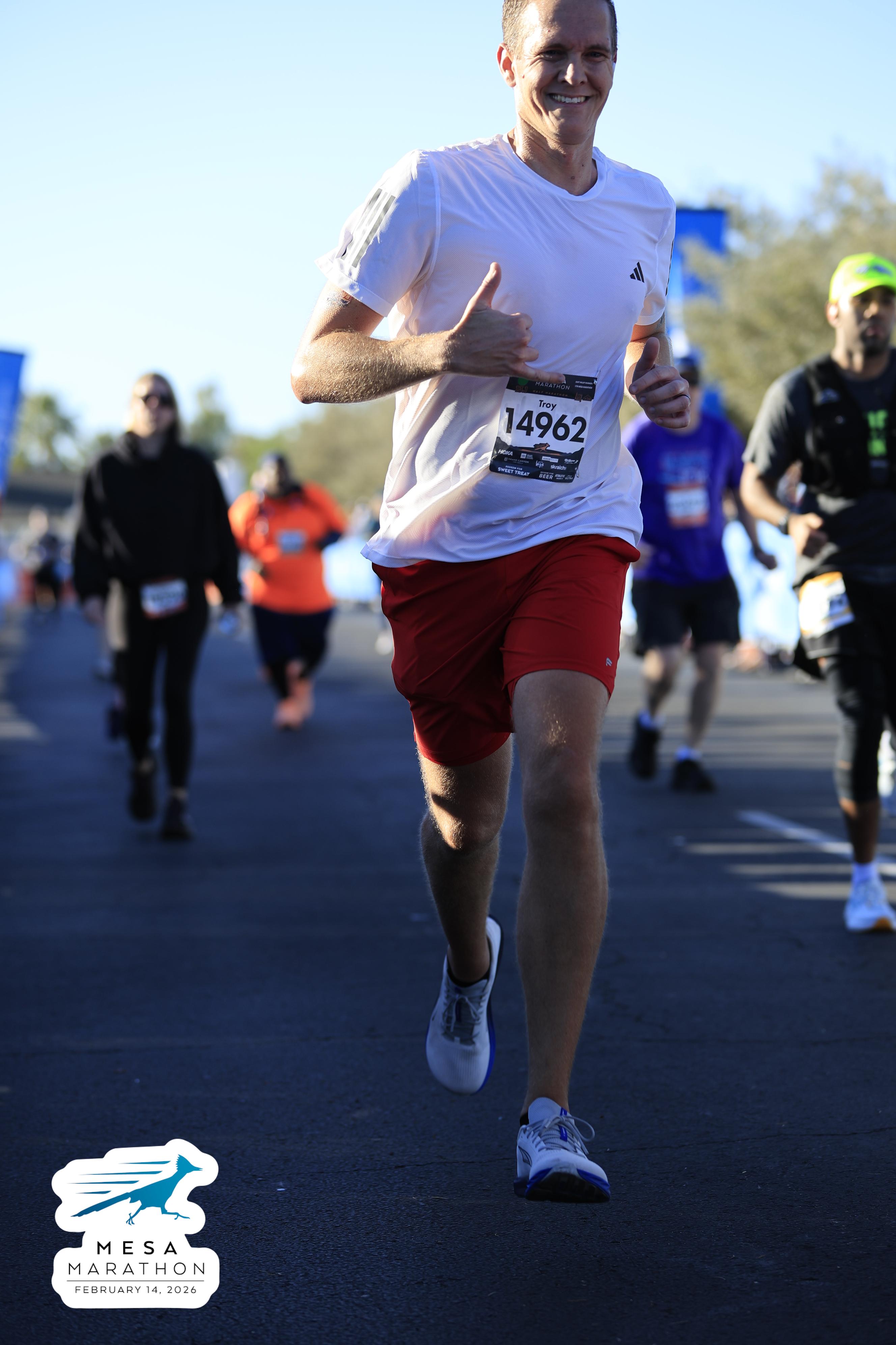 Date: Feb. 14, 2026 Participant: Troy Clarke #14962 Race: 2026 Mesa Half Marathon Distance: 13.1 miles