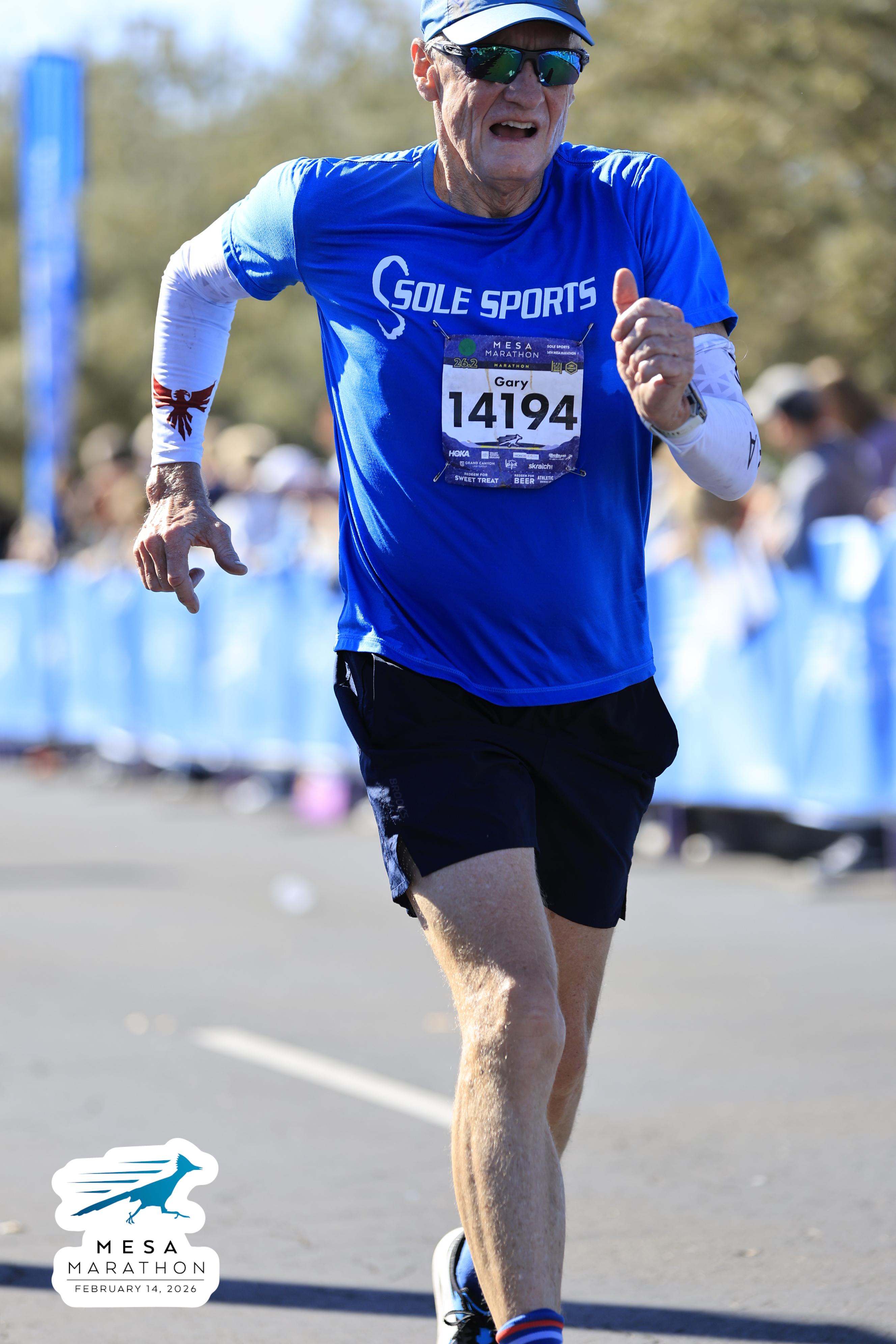 Date: Feb. 14, 2026 Participant: Gary Millslagle #14194 Race: 2026 Mesa Marathon Distance: 26.2 miles