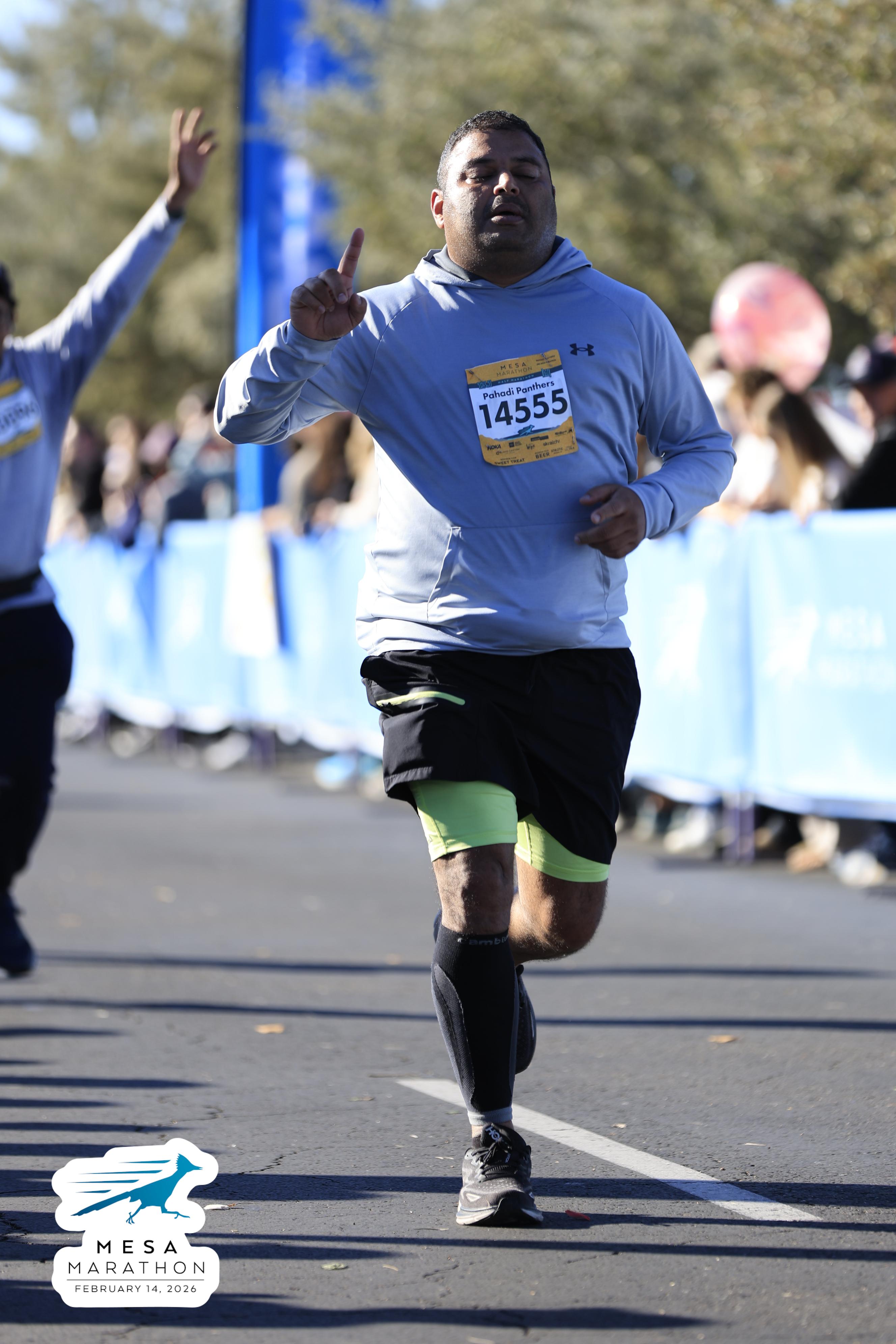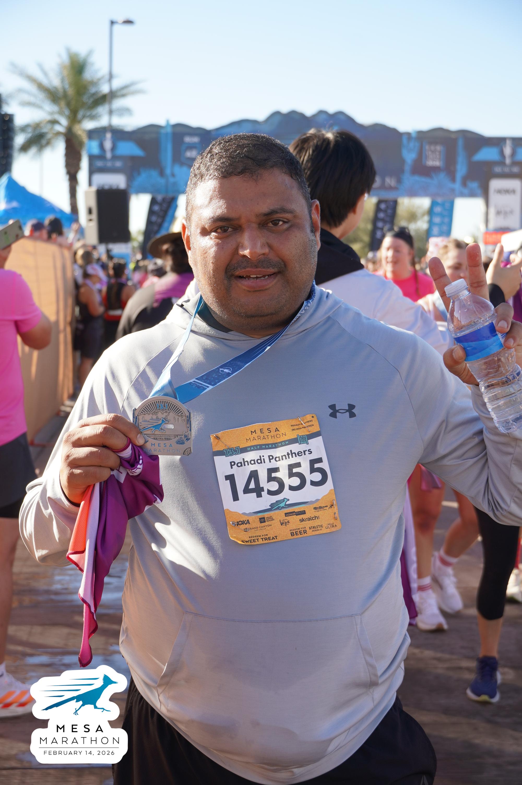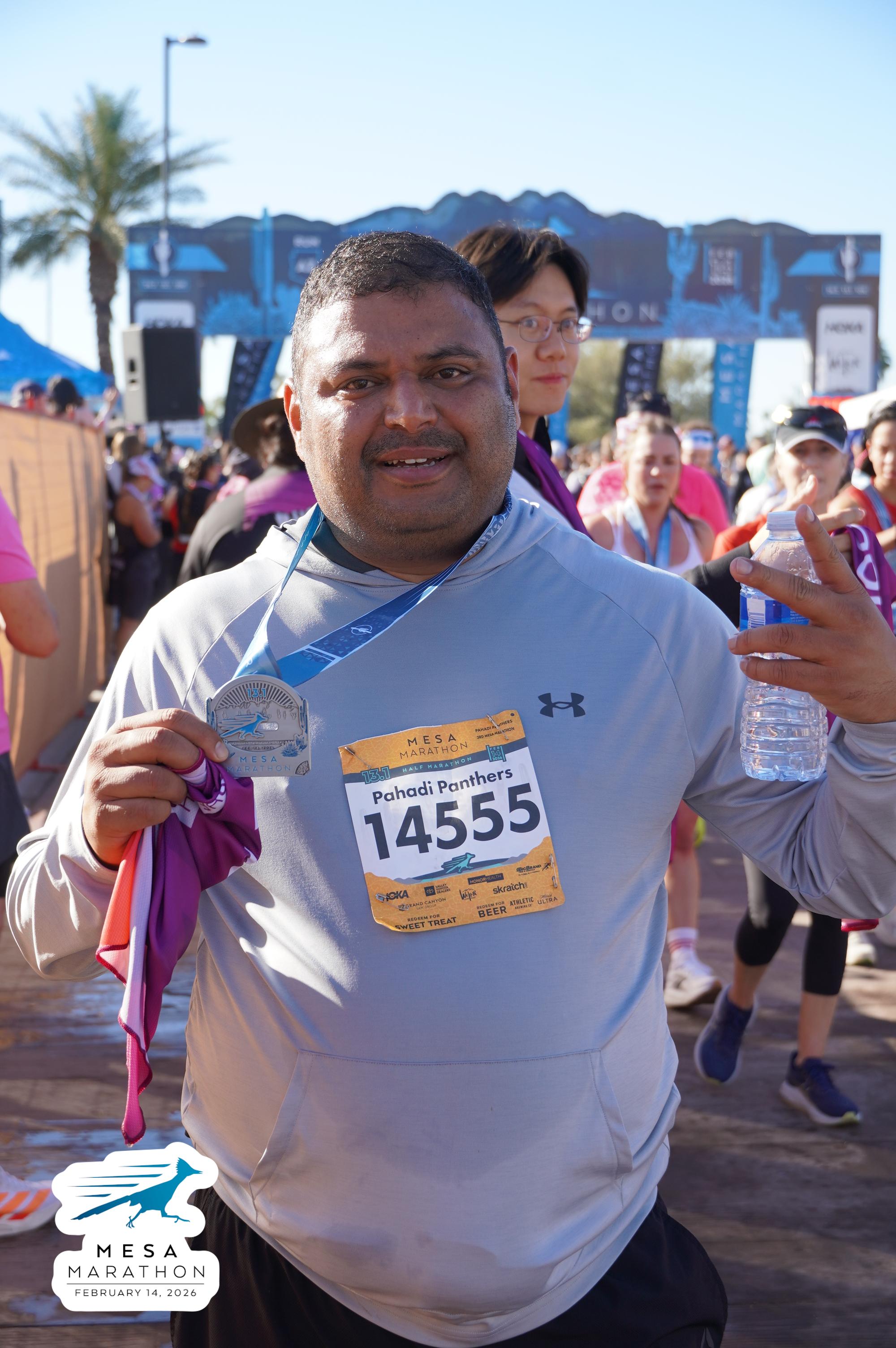 Date: Feb. 14, 2026 Participant: Jeetesh Bahuguna #14555 Race: 2026 Mesa Half Marathon Distance: 13.1 miles
