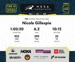 Date: Feb. 14, 2026 Participant: Nicole Gillespie #18545 Race: 2026 Mesa 10K Distance: 6.2 miles