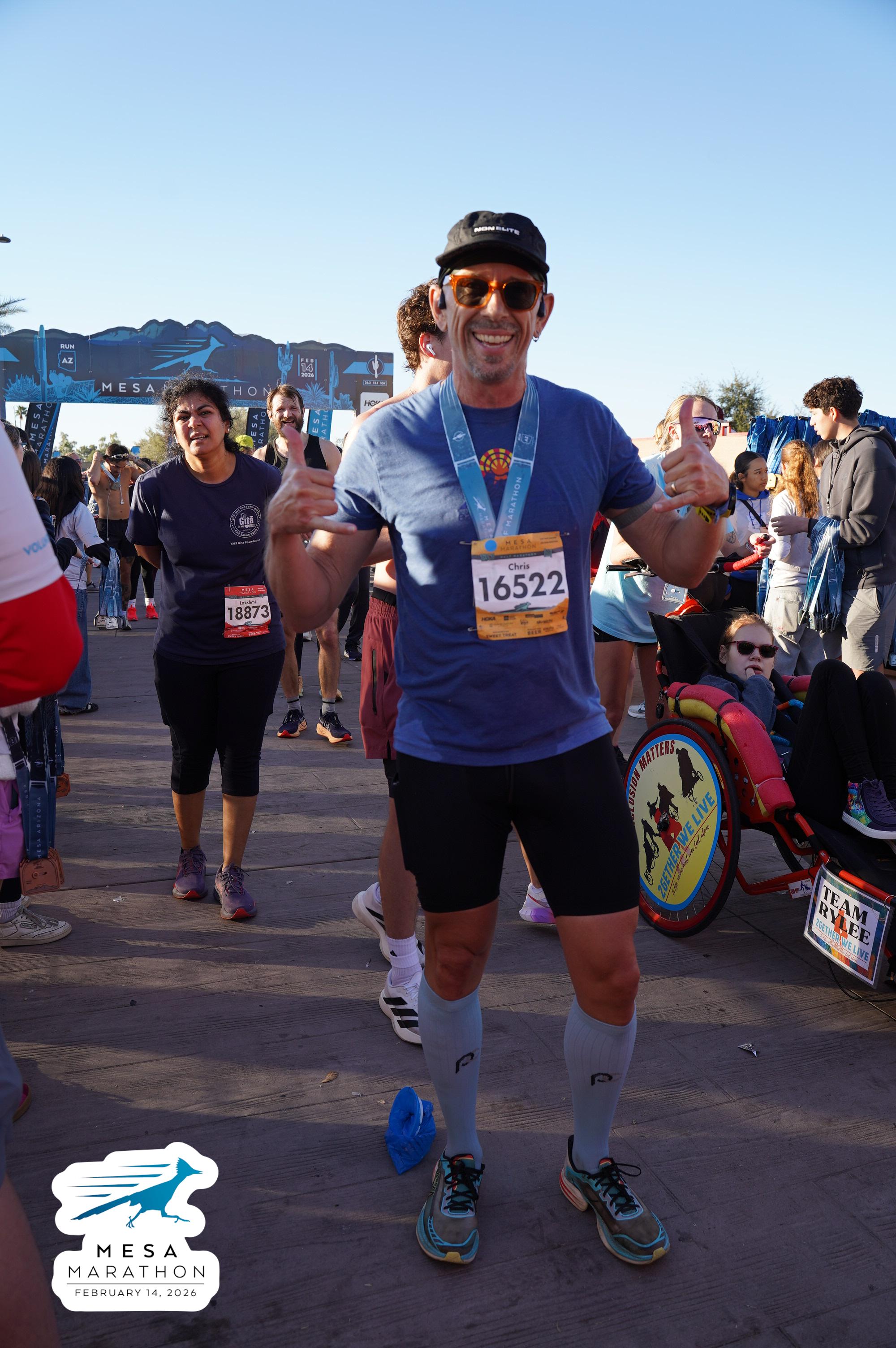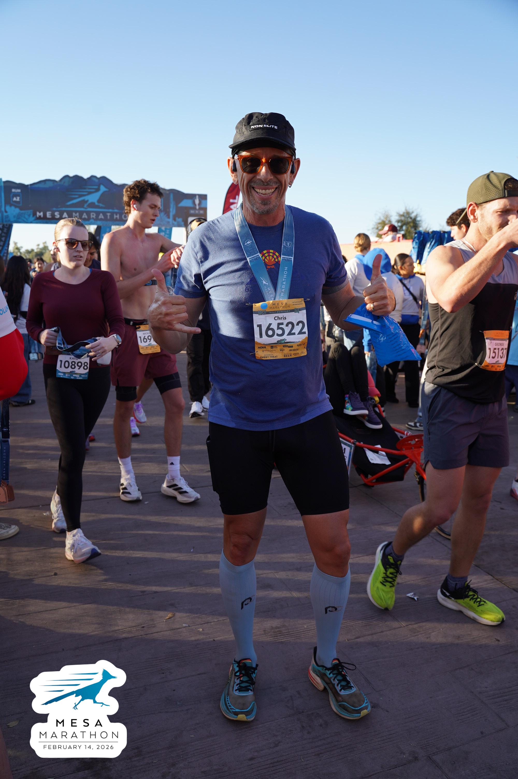 Date: Feb. 14, 2026 Participant: Christopher Neil #16522 Race: 2026 Mesa Half Marathon Distance: 13.1 miles