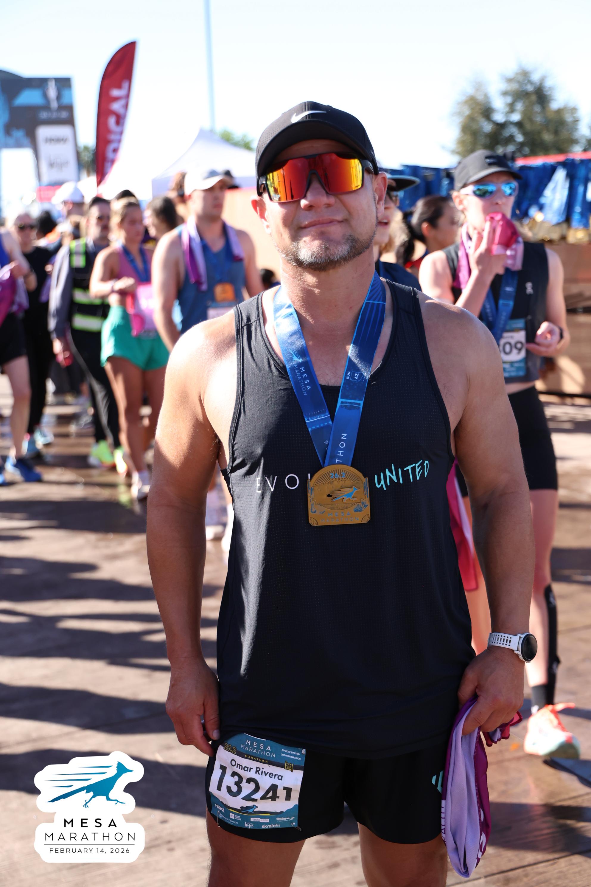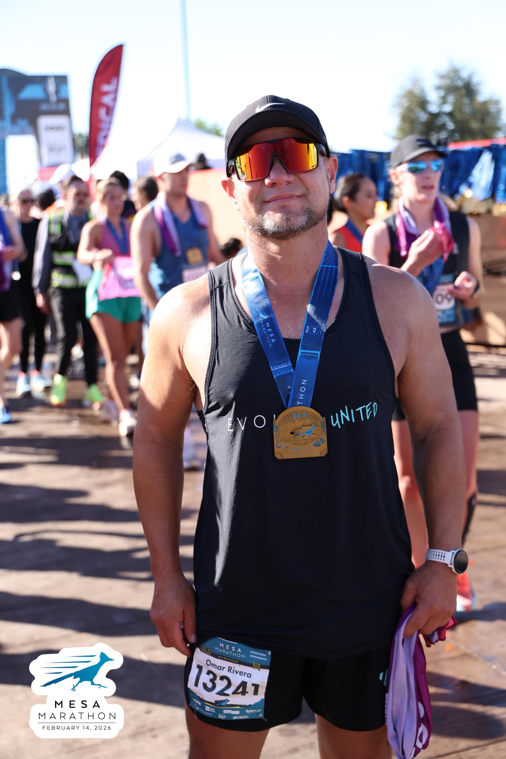 Date: Feb. 14, 2026 Participant: Omar Rivera #13241 Race: 2026 Mesa Marathon Distance: 26.2 miles