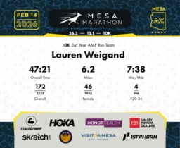 Date: Feb. 14, 2026 Participant: Lauren Weigand #19794 Race: 2026 Mesa 10K Distance: 6.2 miles