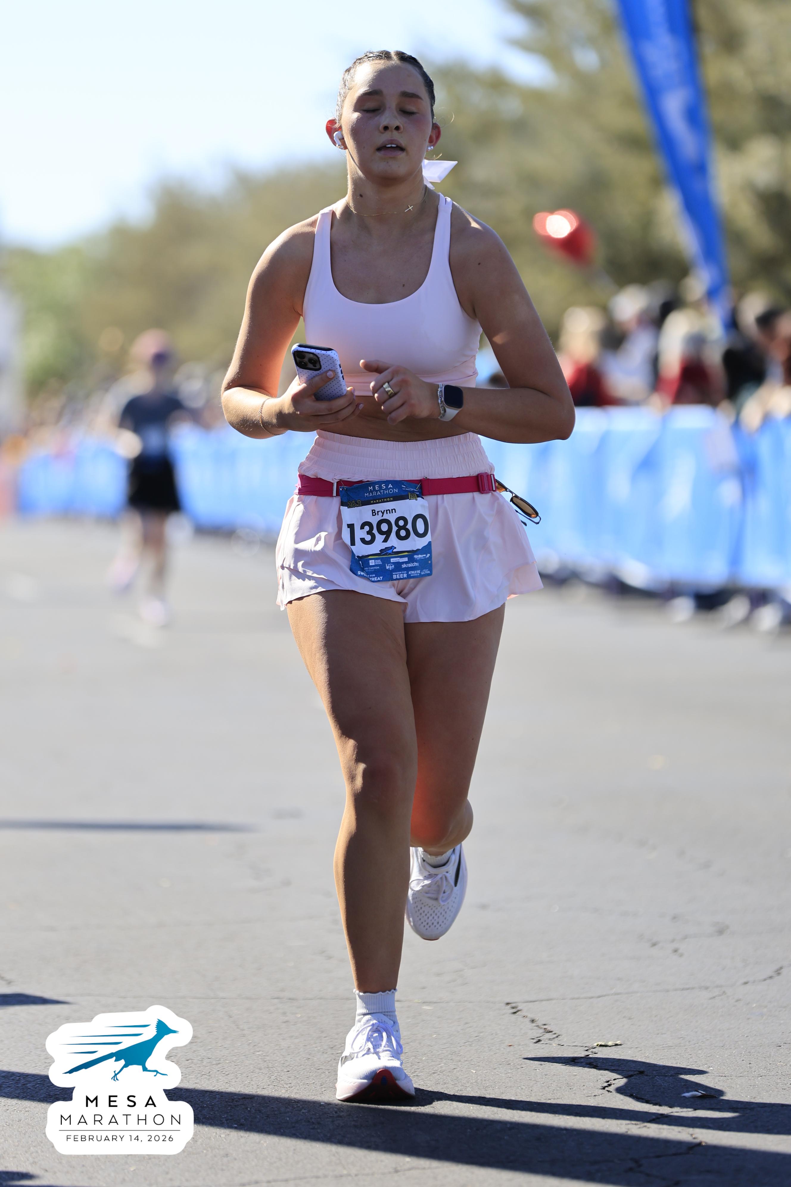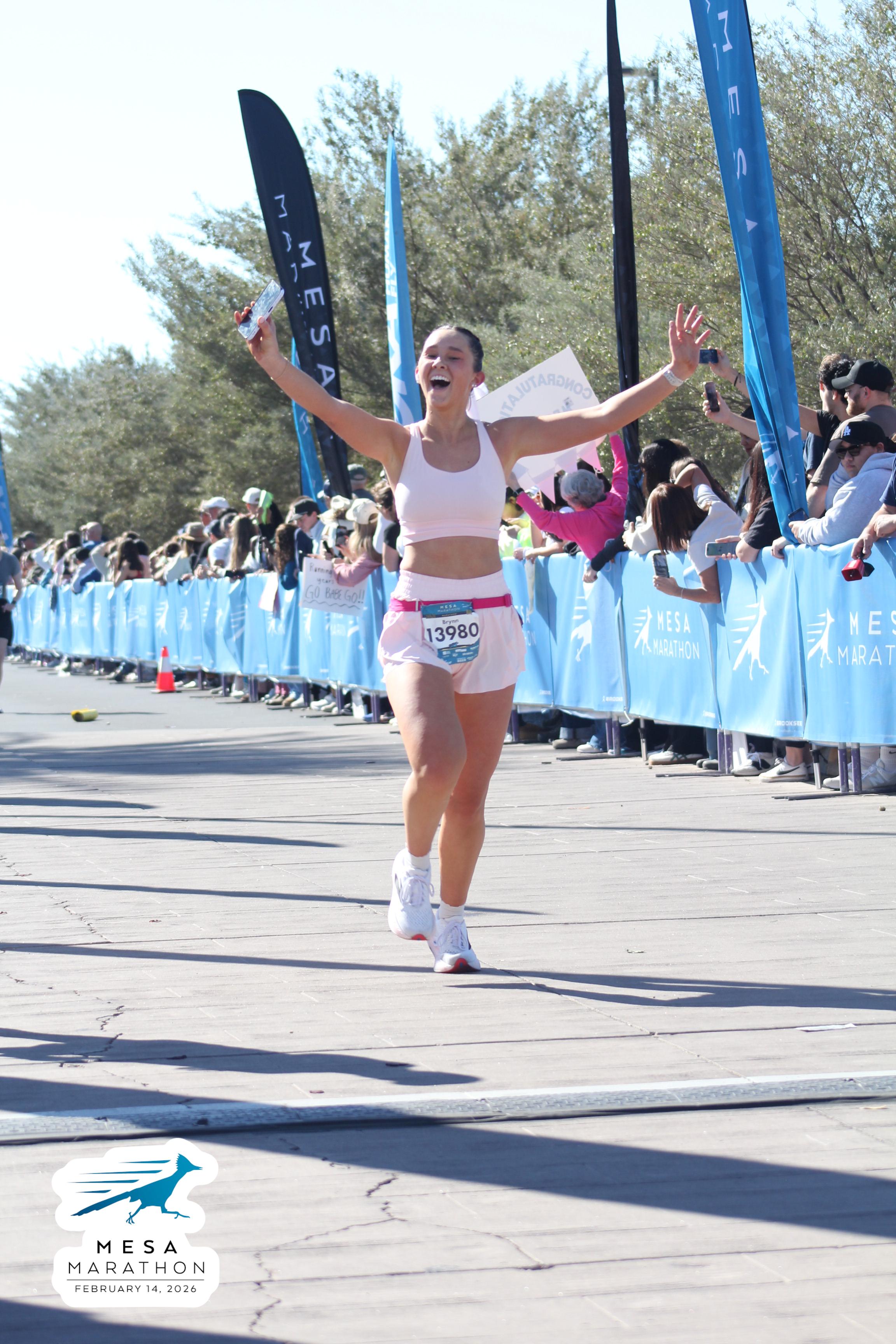 Date: Feb. 14, 2026 Participant: Brynn Wright #13980 Race: 2026 Mesa Marathon Distance: 26.2 miles
