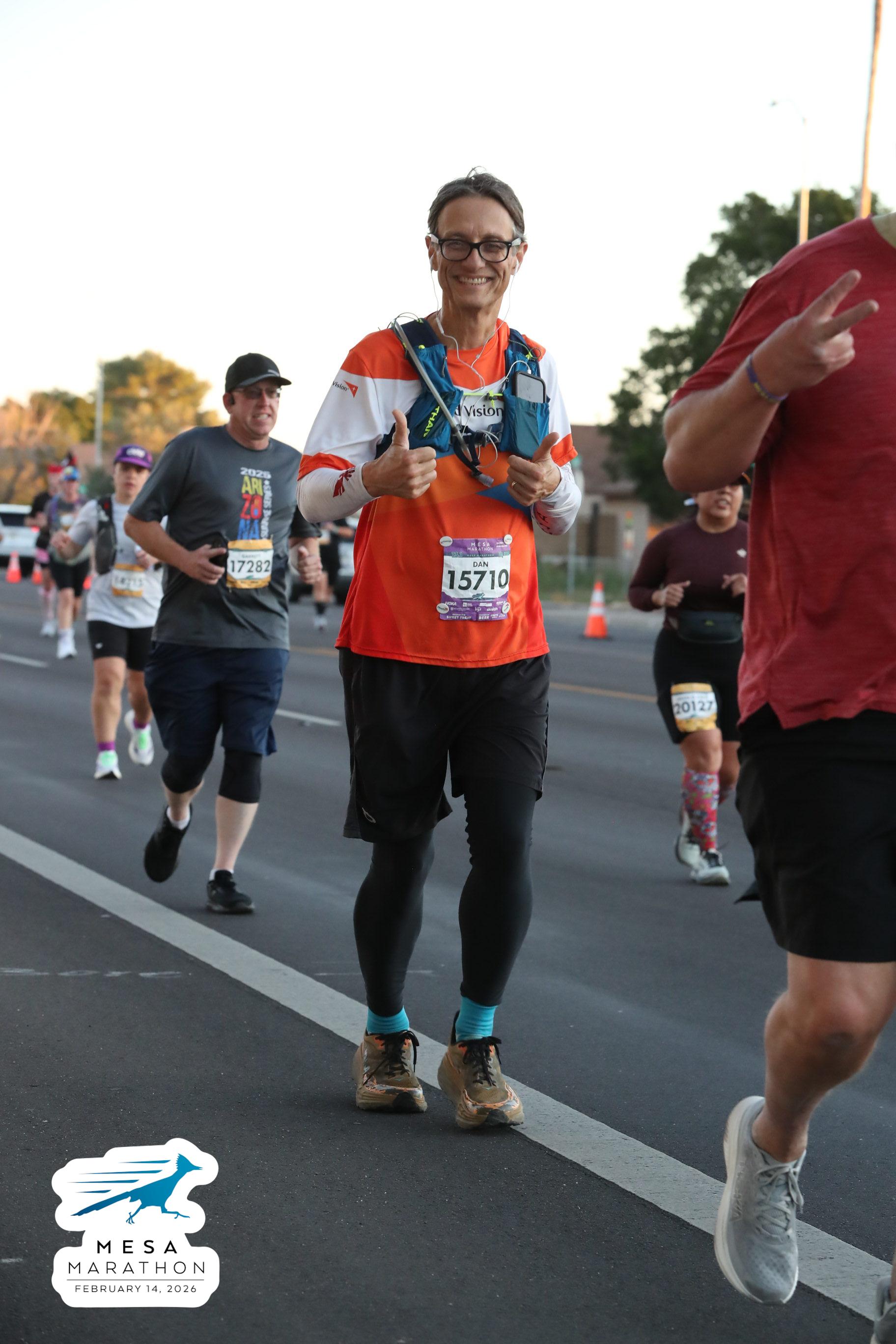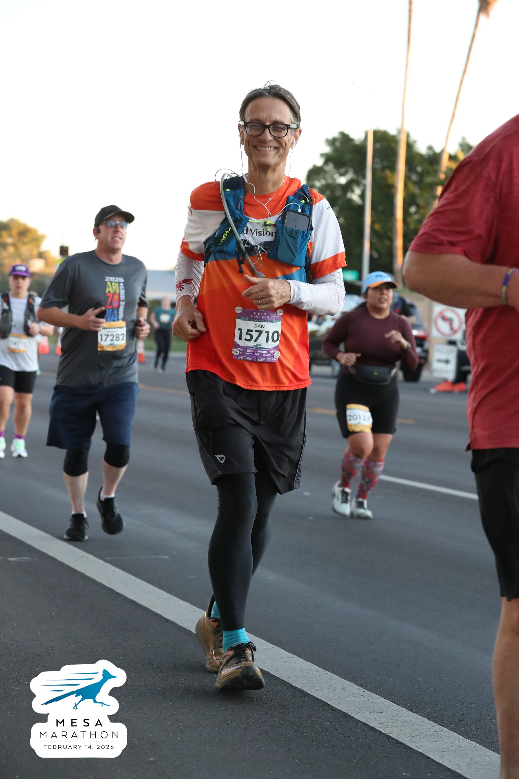 Date: Feb. 14, 2026 Participant: Dan Hoeger #15710 Race: 2026 Mesa Half Marathon Distance: 13.1 miles