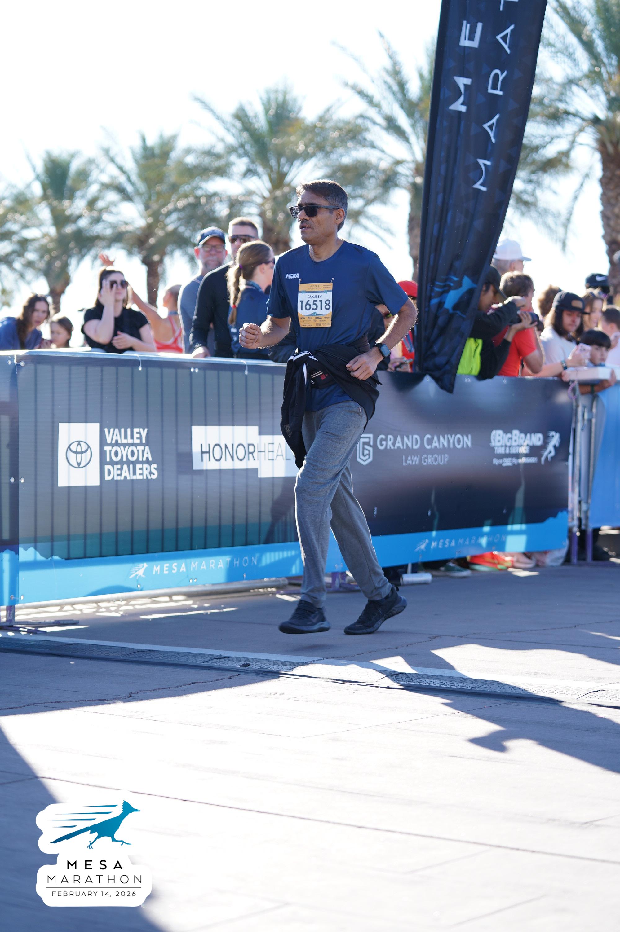 Date: Feb. 14, 2026 Participant: Sanjeev Neerukattu #16518 Race: 2026 Mesa Half Marathon Distance: 13.1 miles