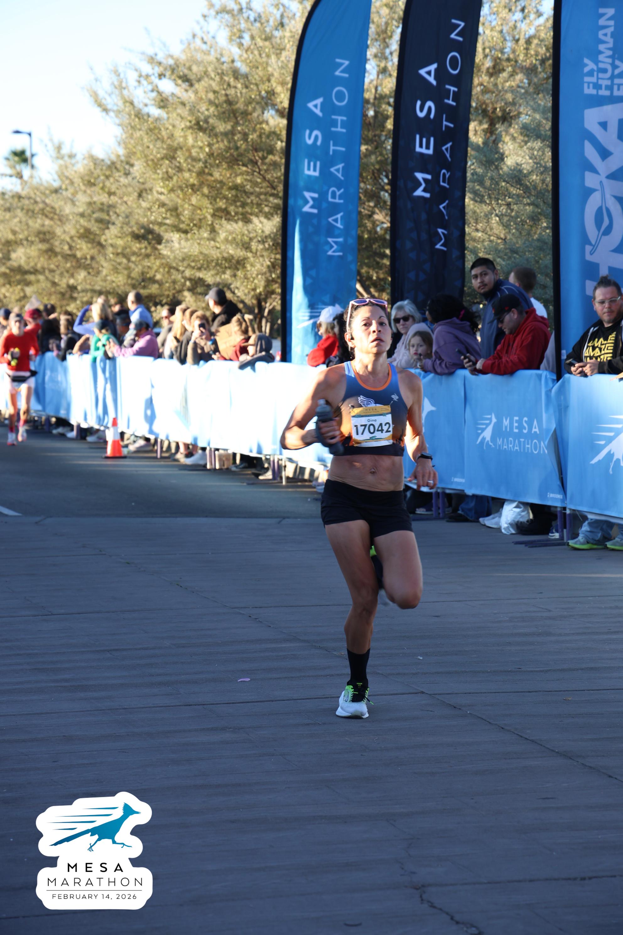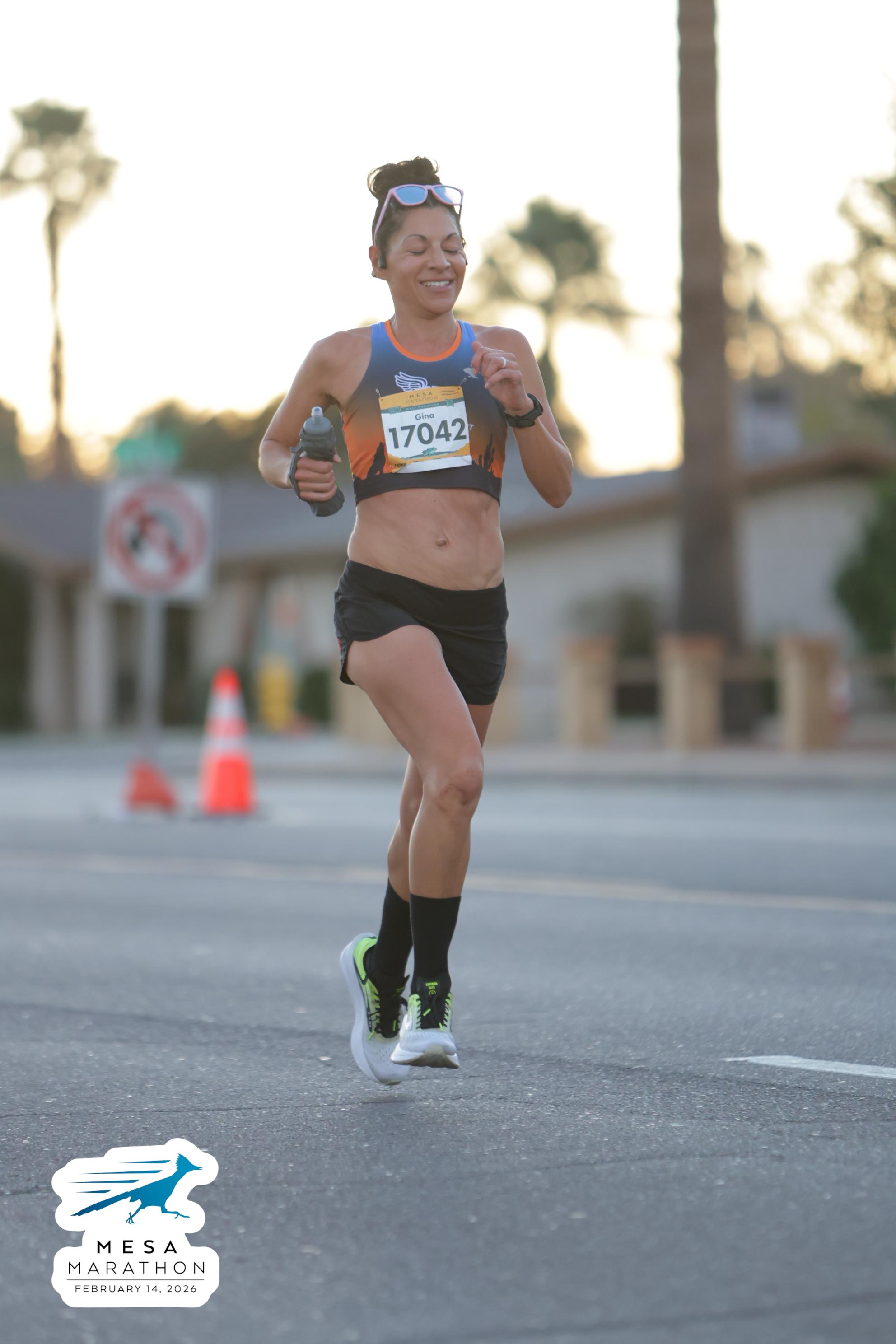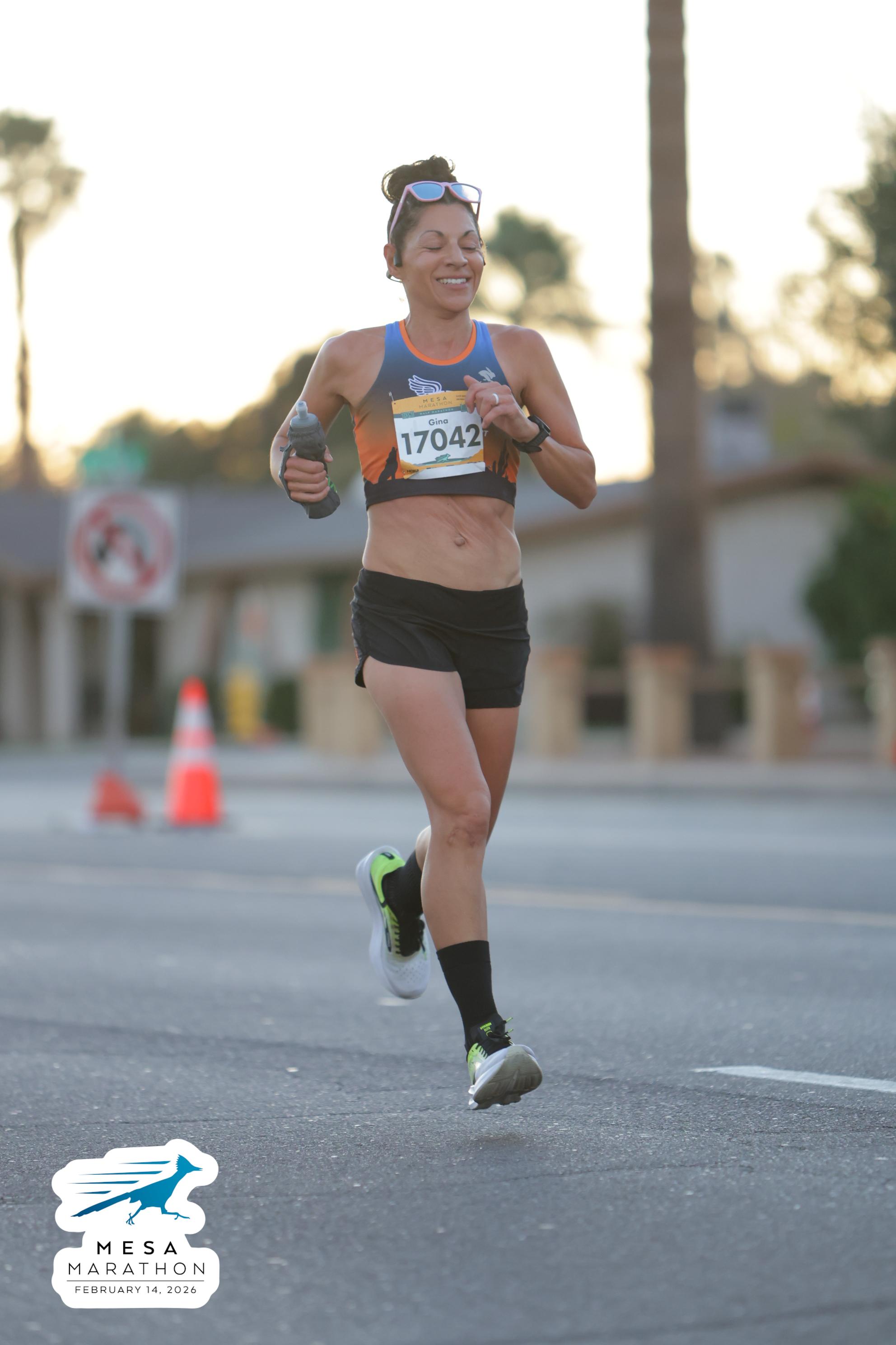 Date: Feb. 14, 2026 Participant: Gina Sando #17042 Race: 2026 Mesa Half Marathon Distance: 13.1 miles