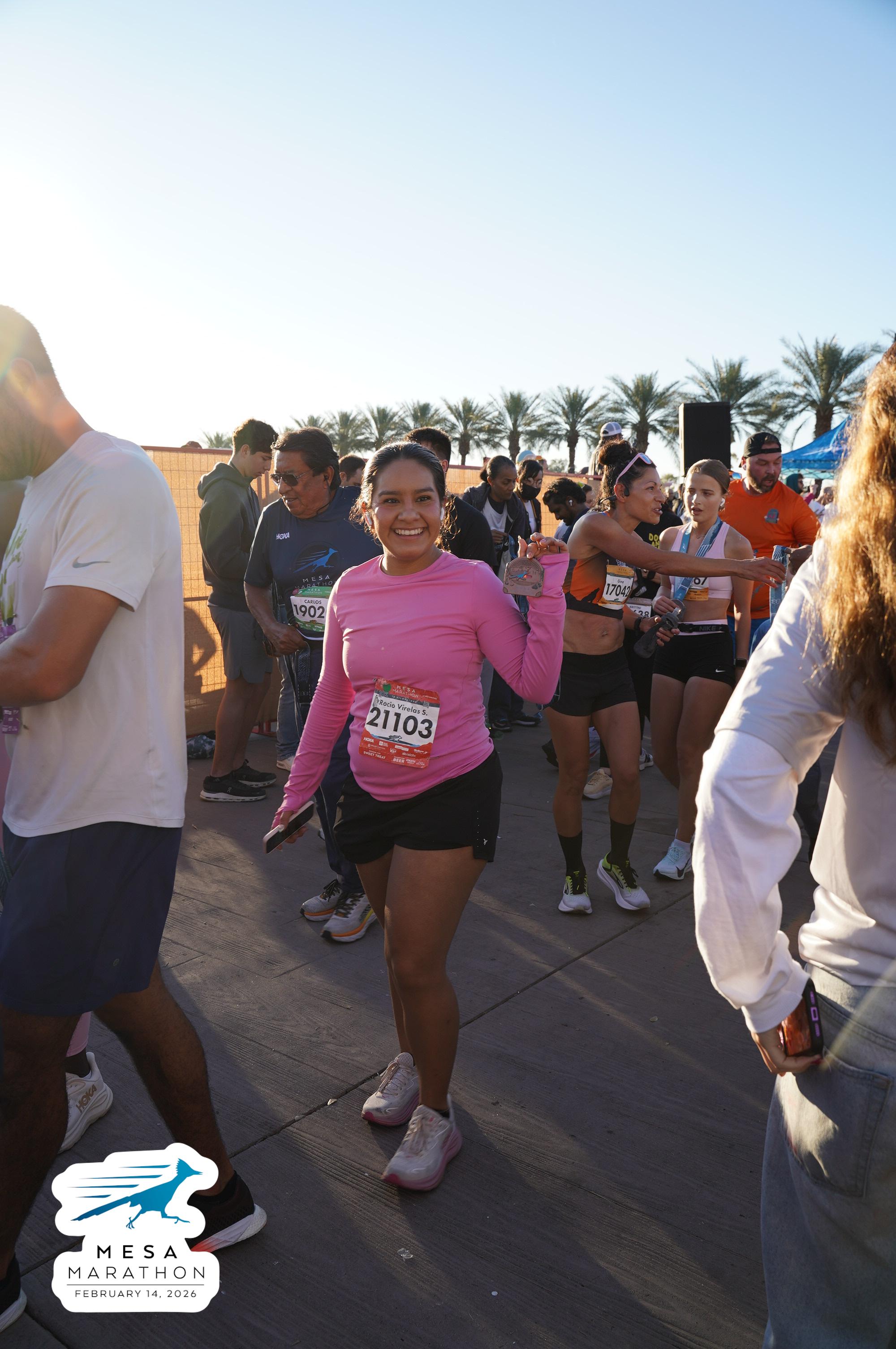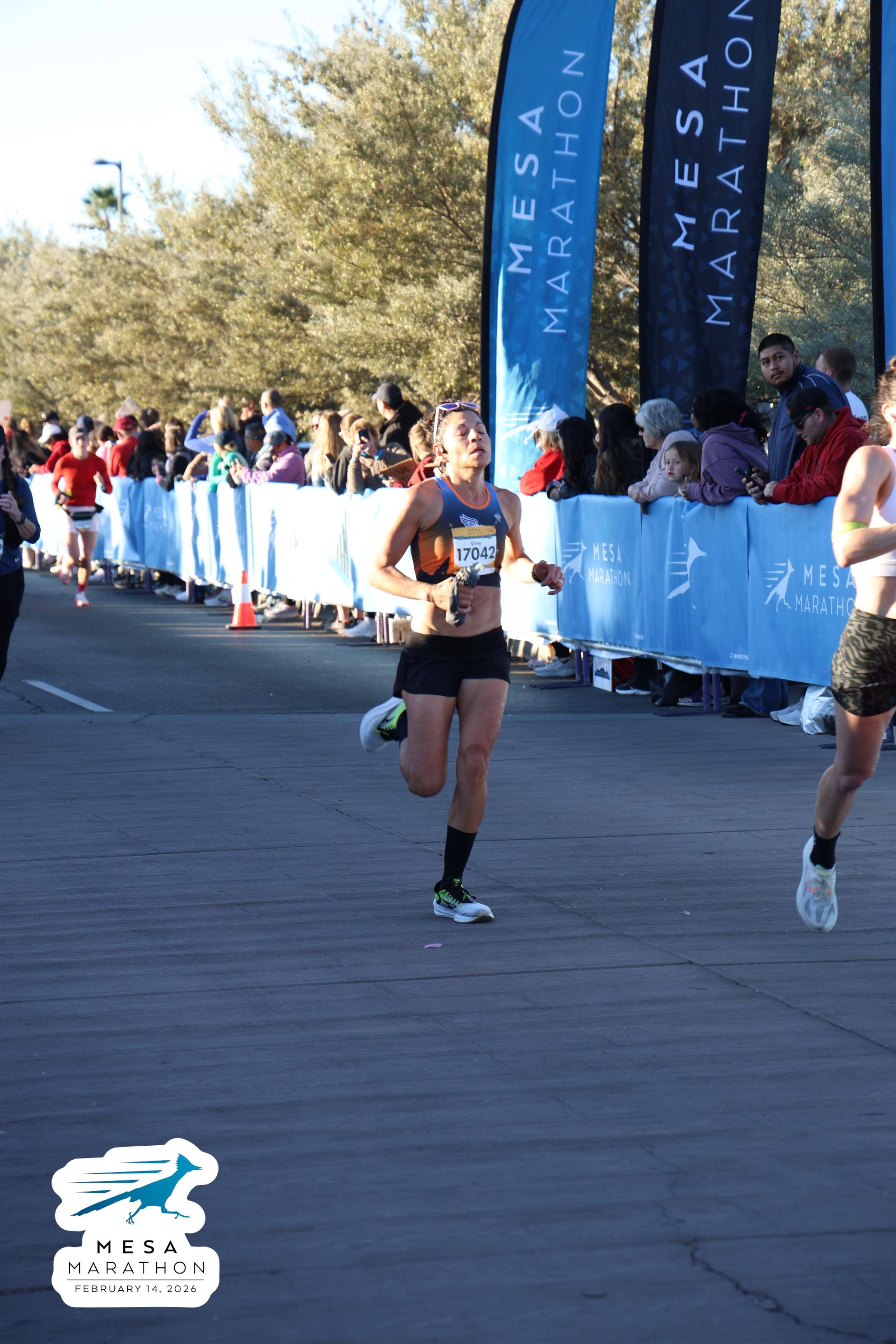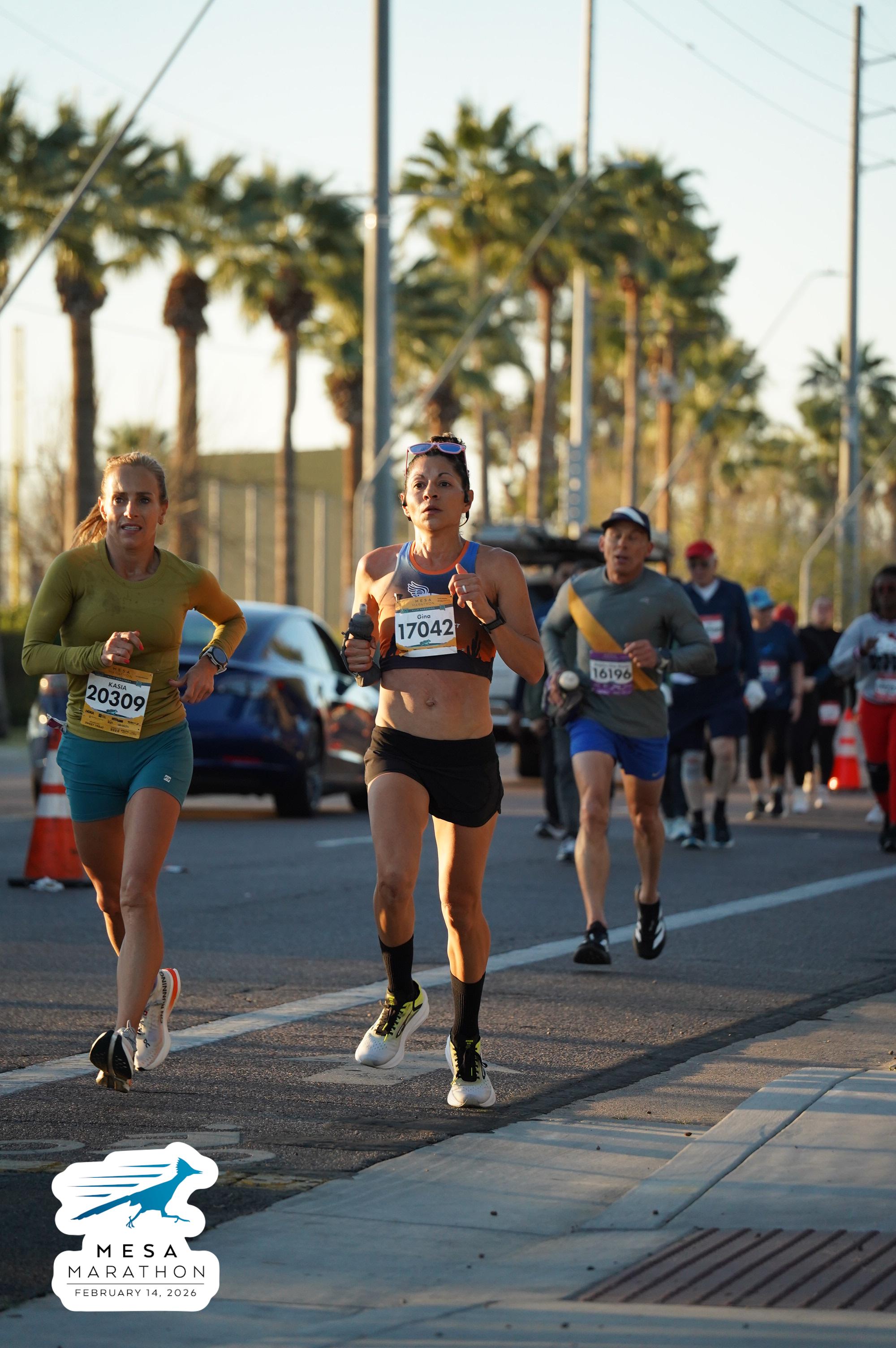 Date: Feb. 14, 2026 Participant: Gina Sando #17042 Race: 2026 Mesa Half Marathon Distance: 13.1 miles