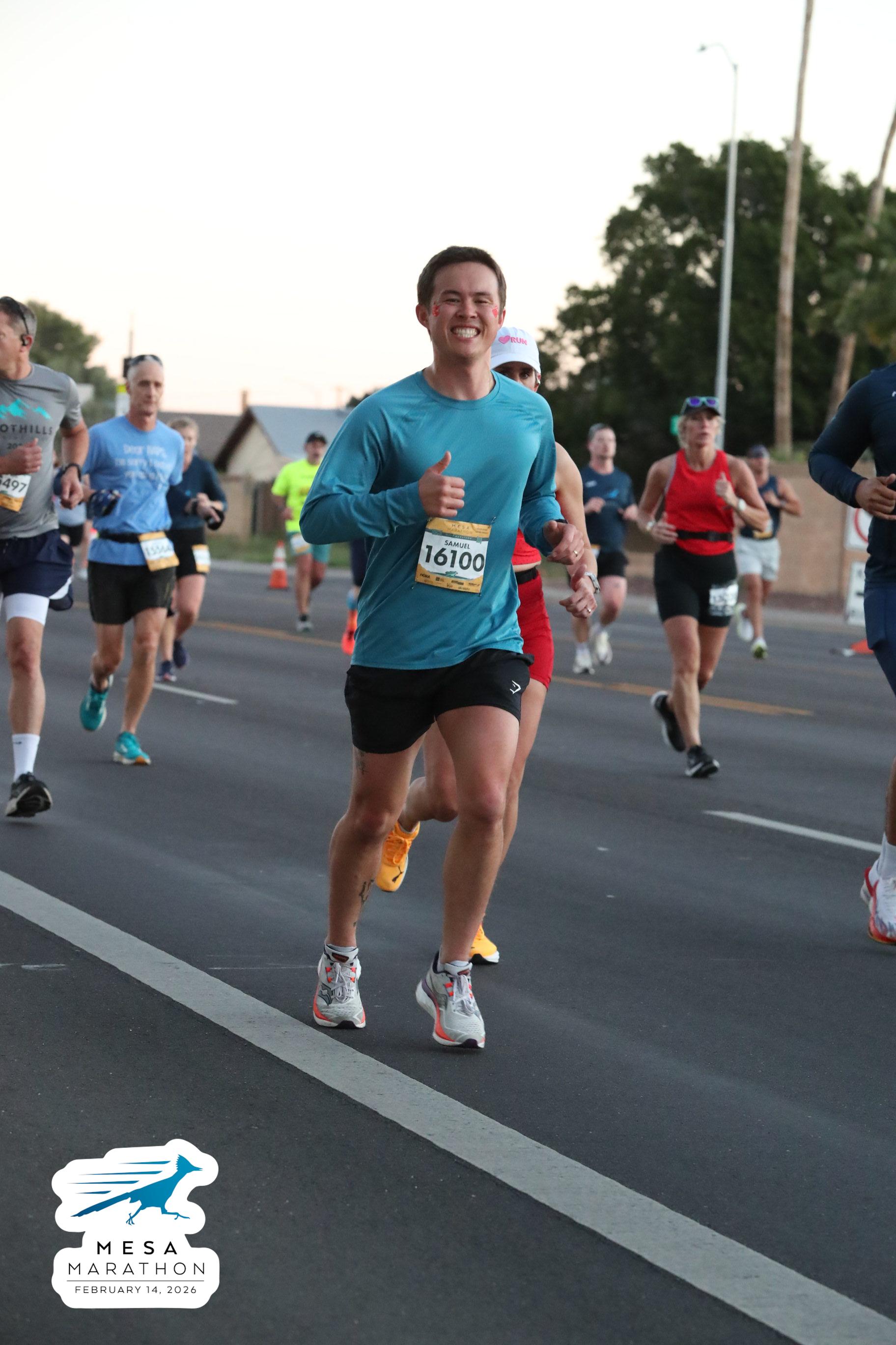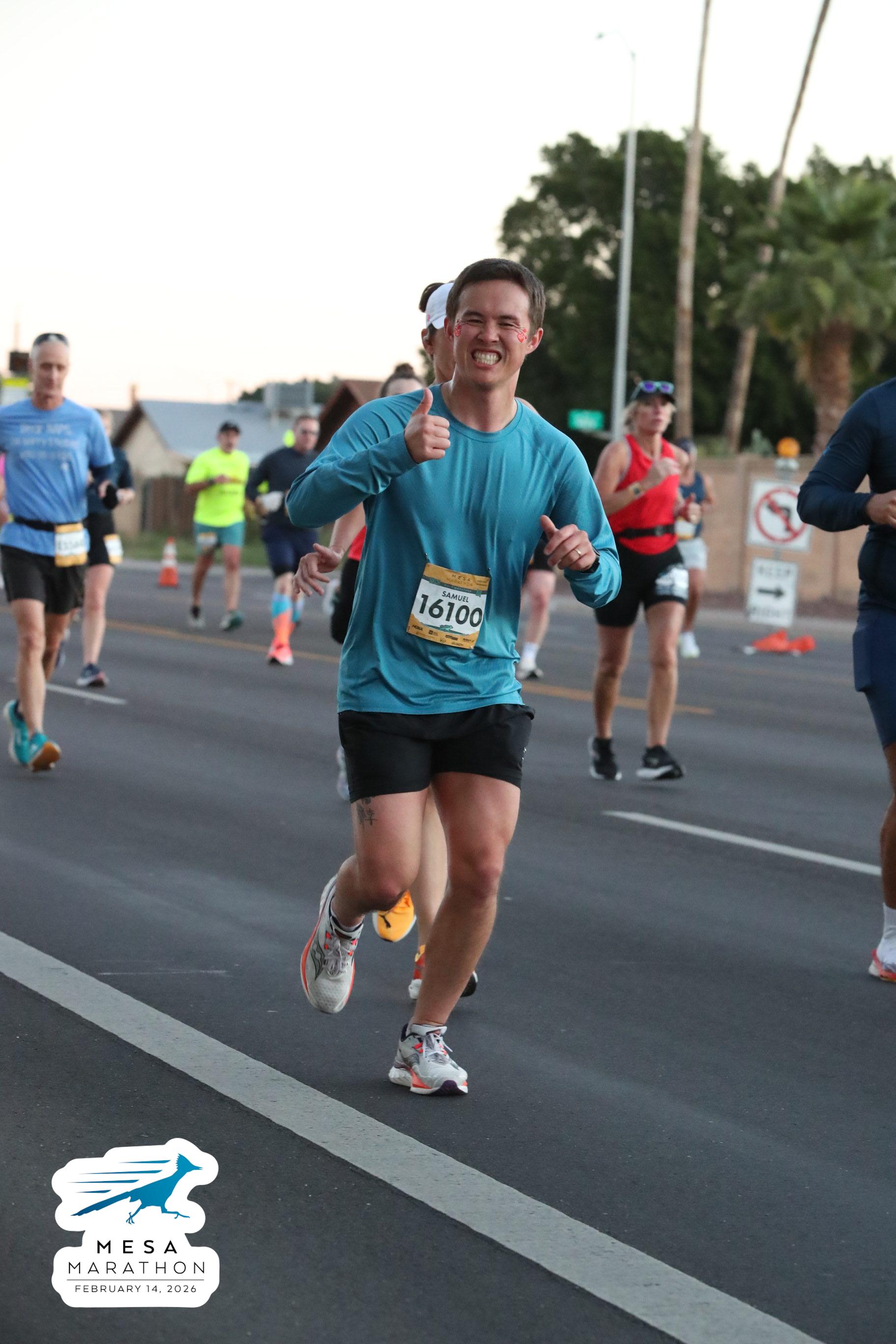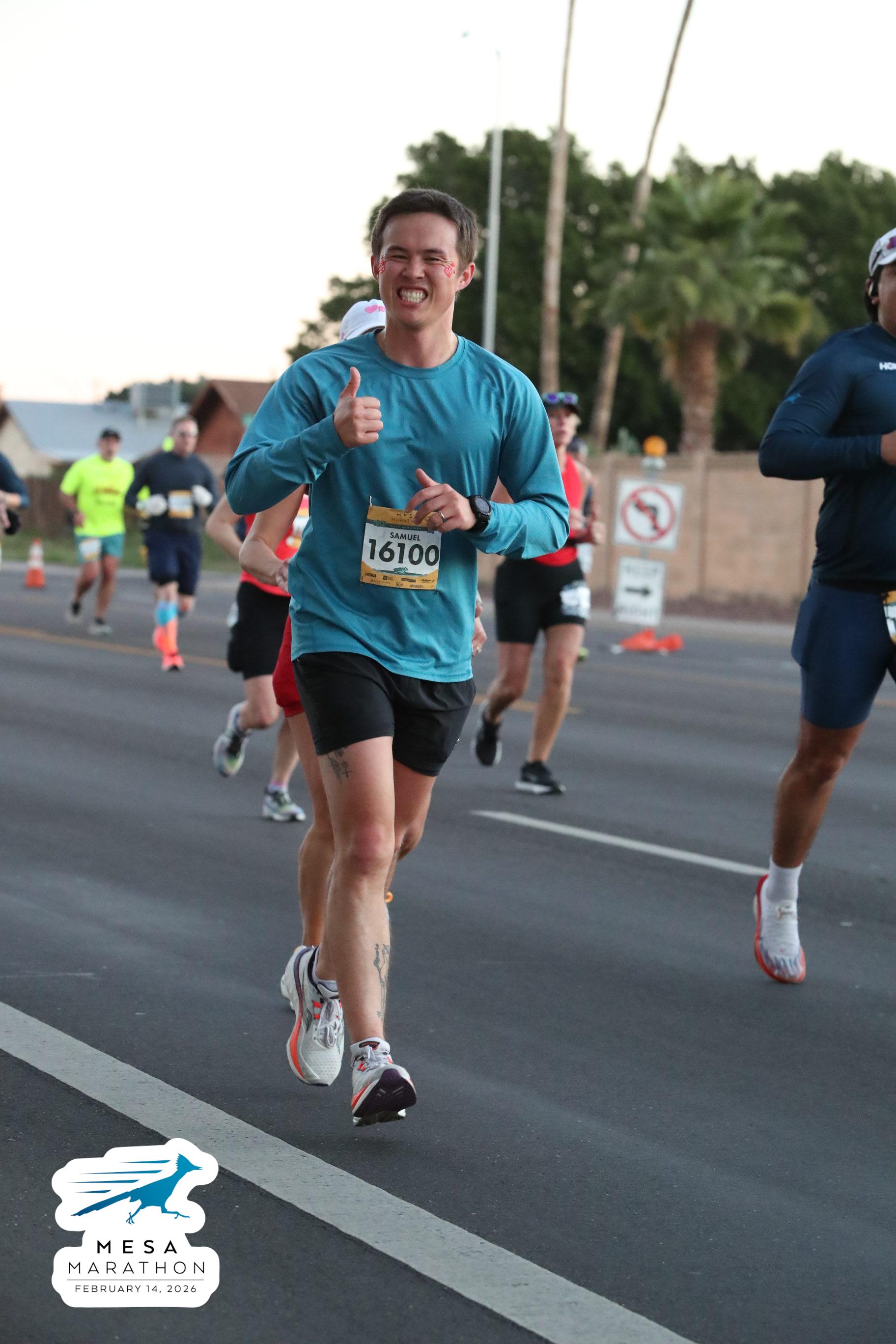 Date: Feb. 14, 2026 Participant: Samuel Lee #16100 Race: 2026 Mesa Half Marathon Distance: 13.1 miles