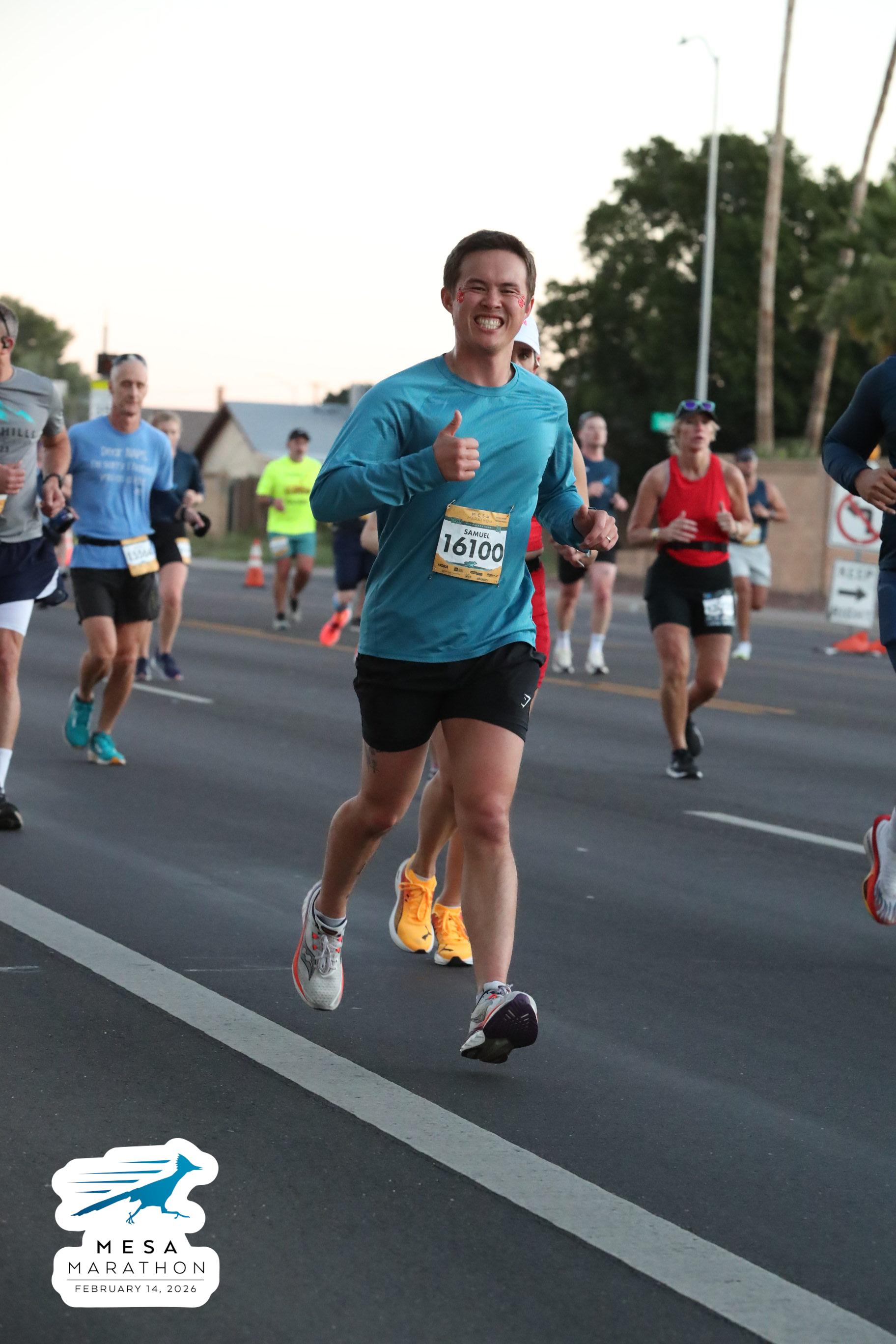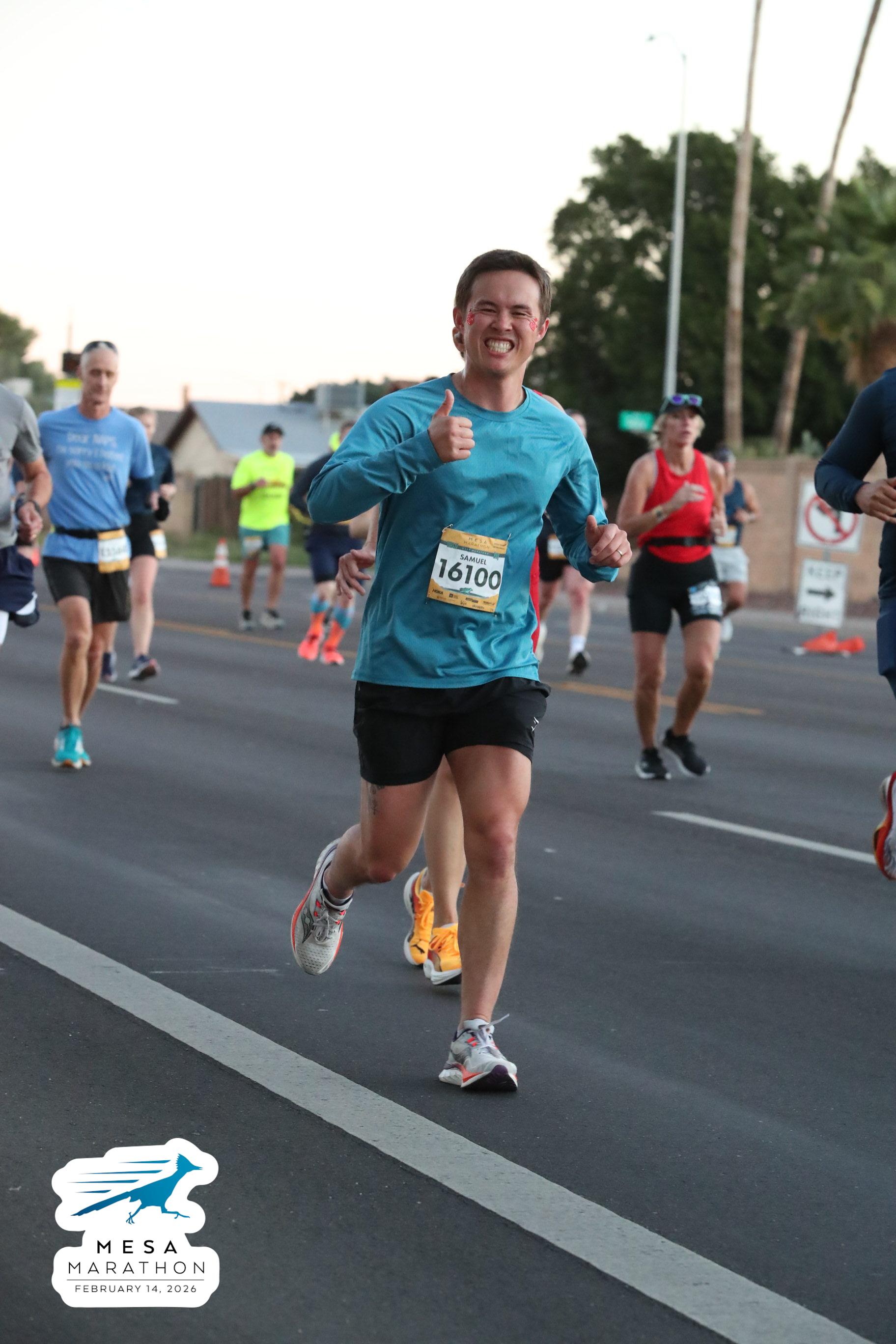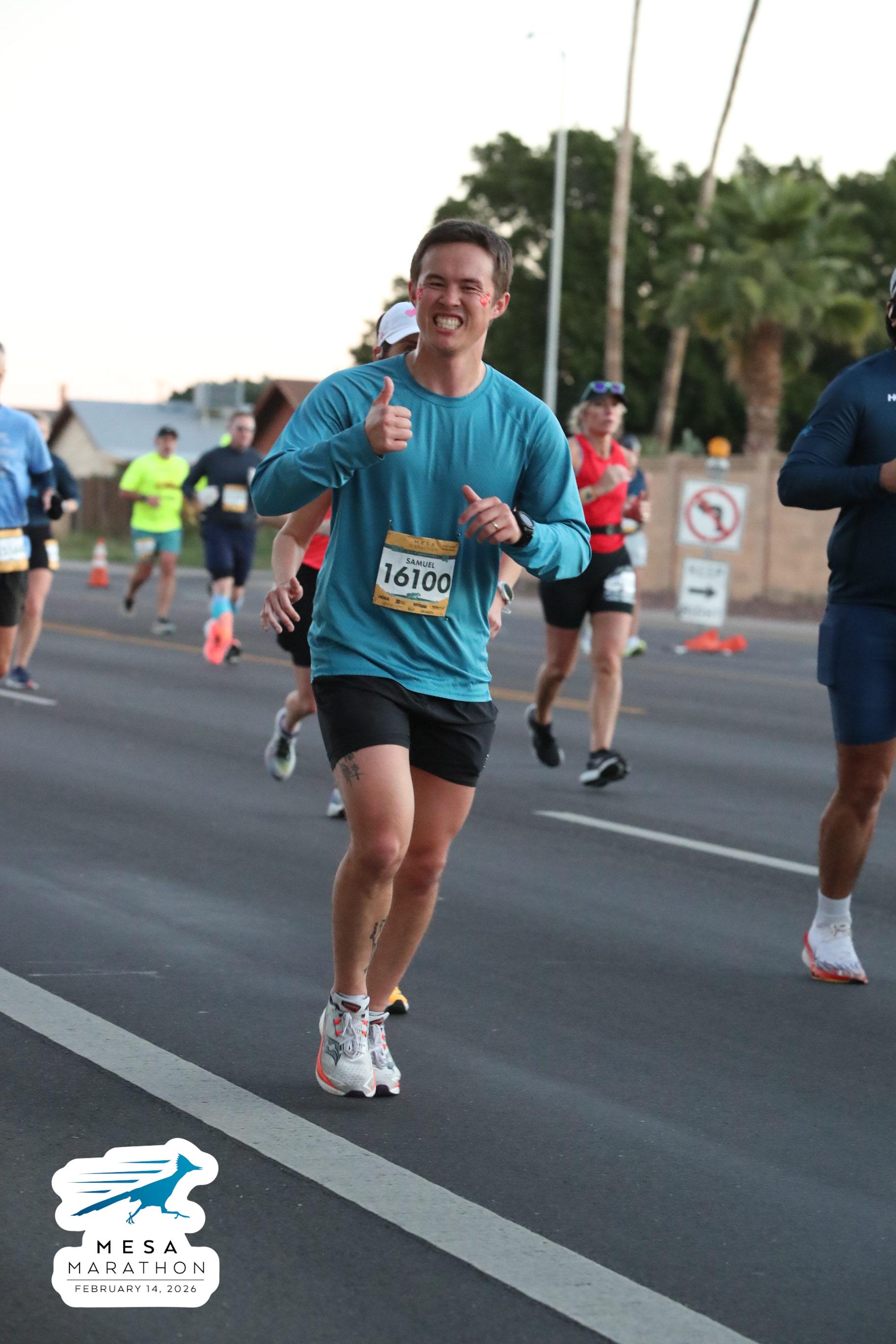 Date: Feb. 14, 2026 Participant: Samuel Lee #16100 Race: 2026 Mesa Half Marathon Distance: 13.1 miles