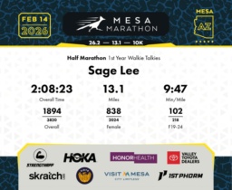 Date: Feb. 14, 2026 Participant: Sage Lee #16099 Race: 2026 Mesa Half Marathon Distance: 13.1 miles