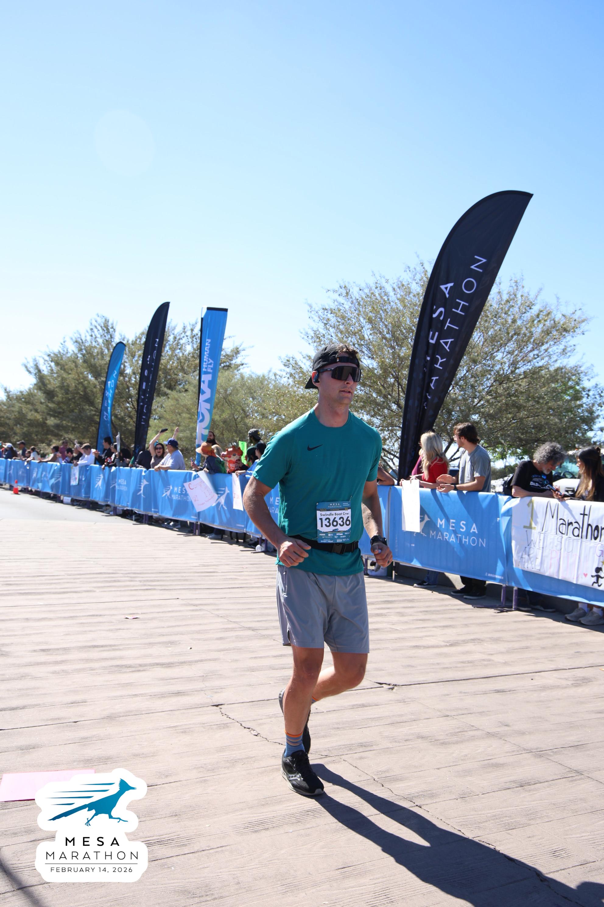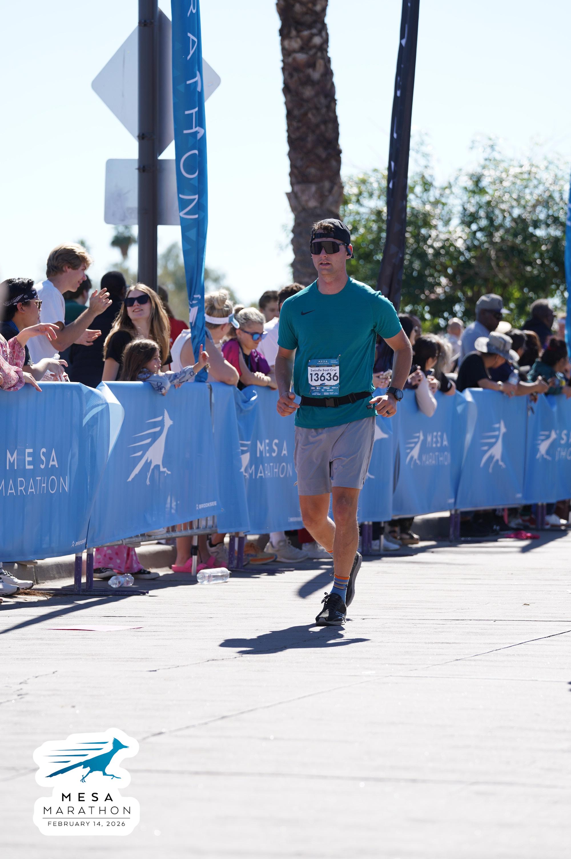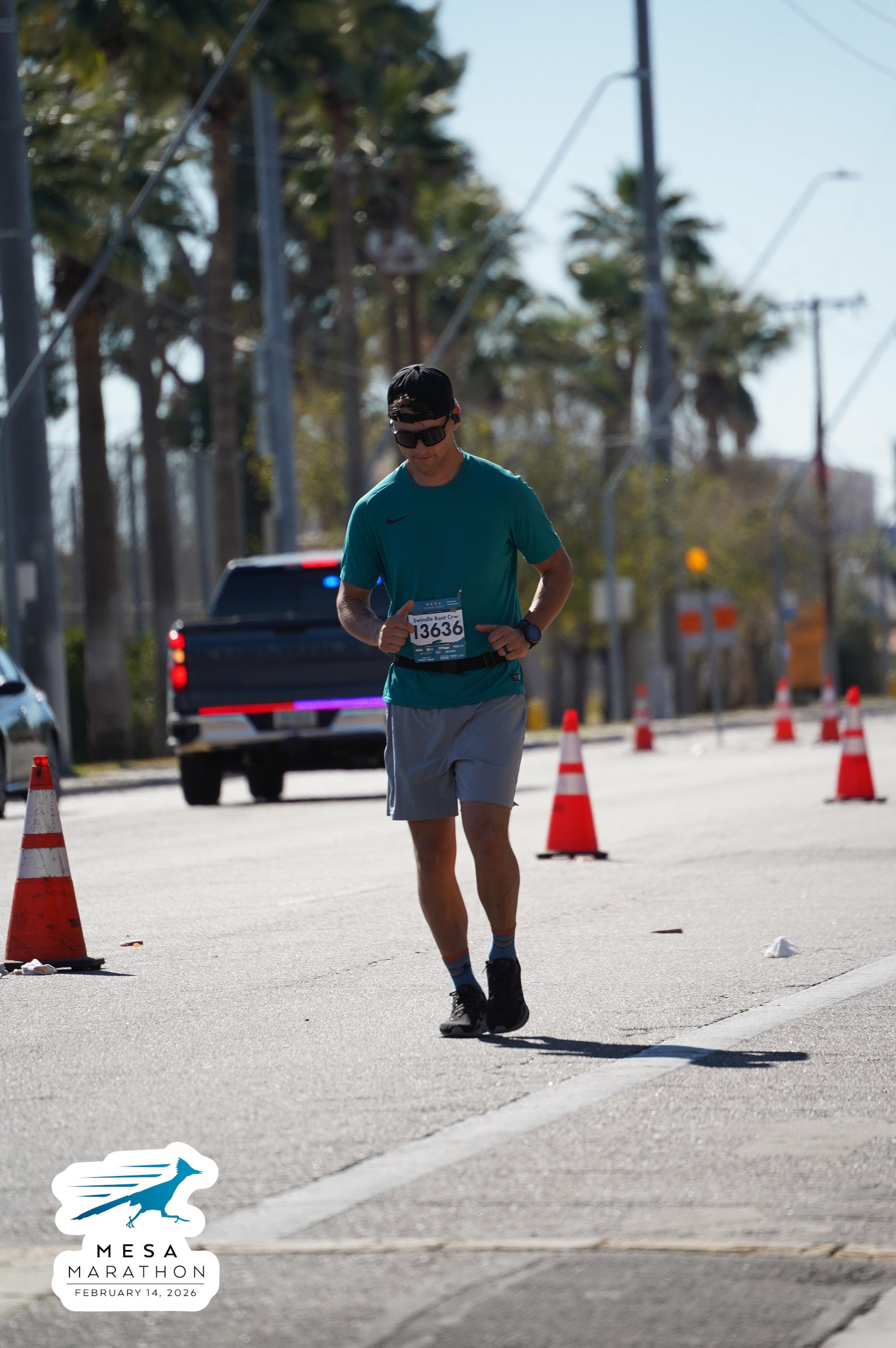 Date: Feb. 14, 2026 Participant: Talmage Swindle #13636 Race: 2026 Mesa Half Marathon Distance: 13.1 miles