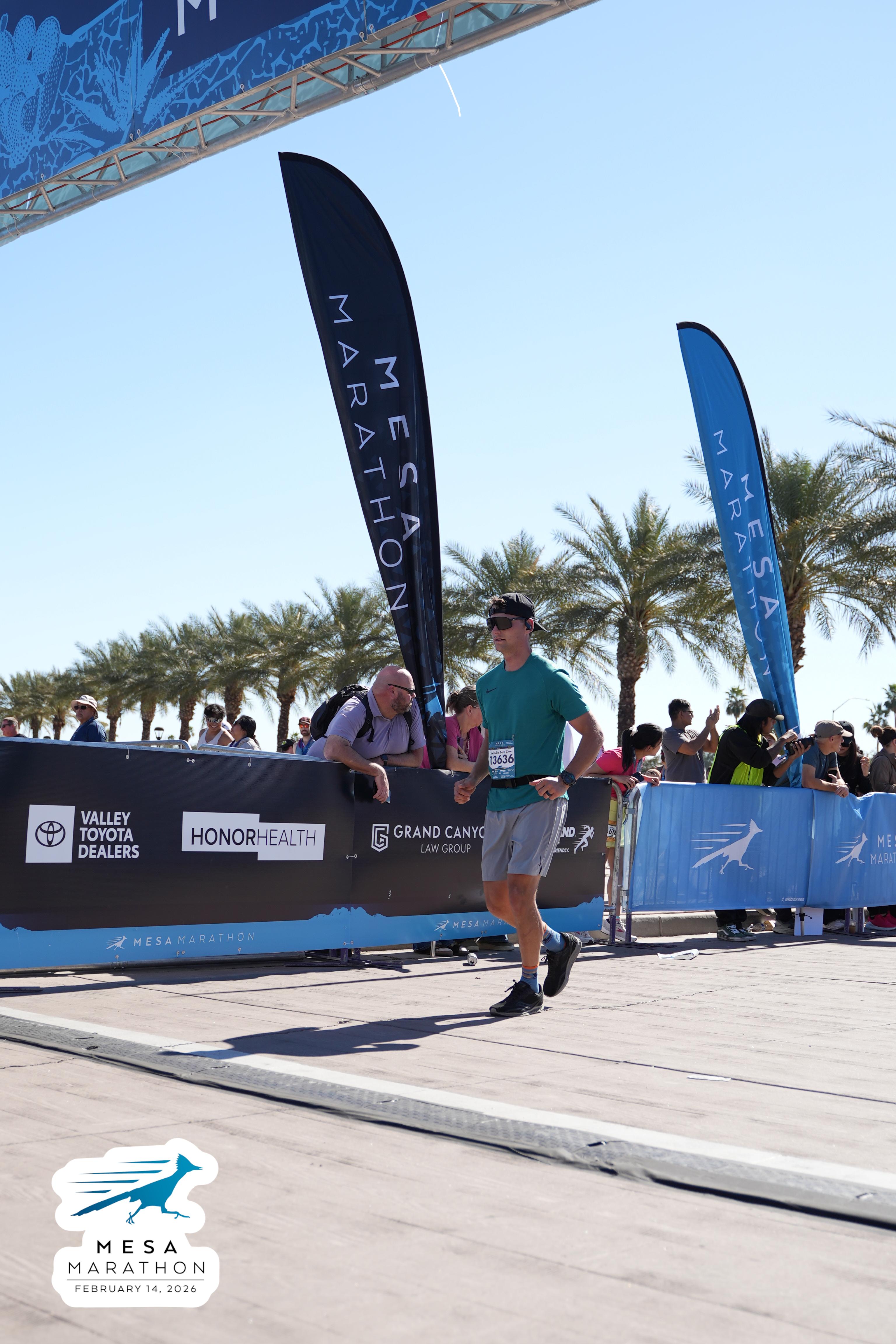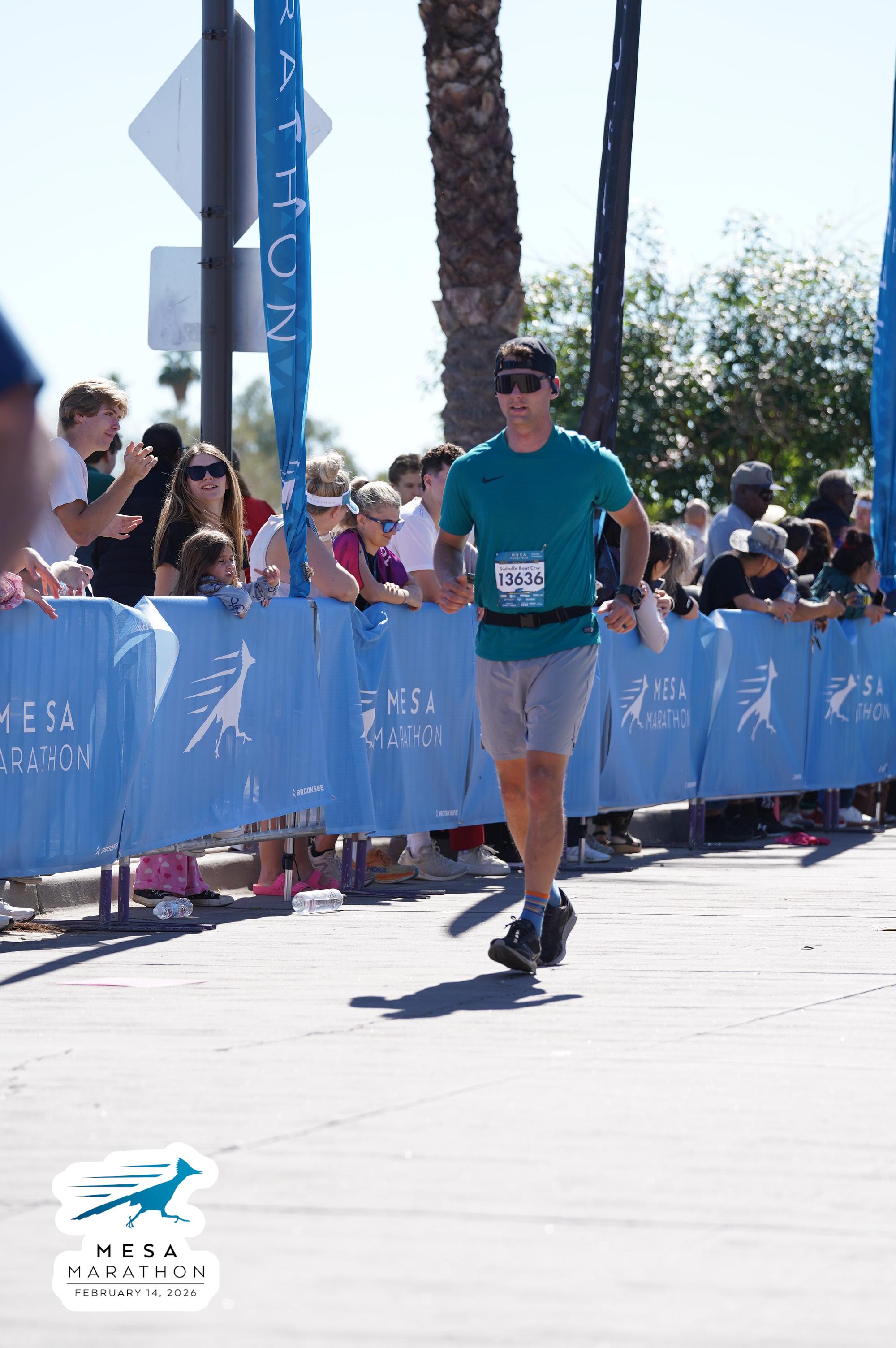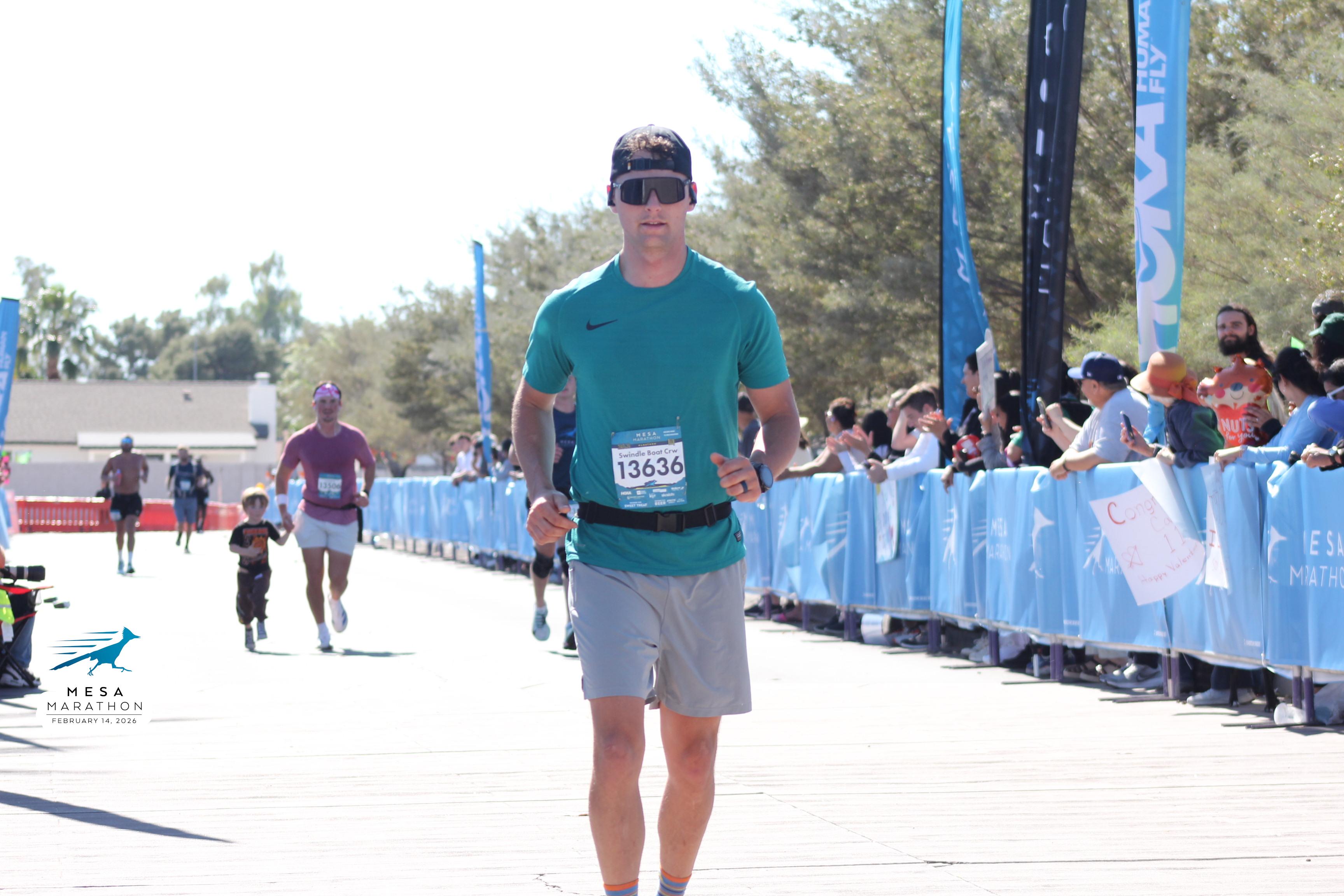 Date: Feb. 14, 2026 Participant: Talmage Swindle #13636 Race: 2026 Mesa Half Marathon Distance: 13.1 miles