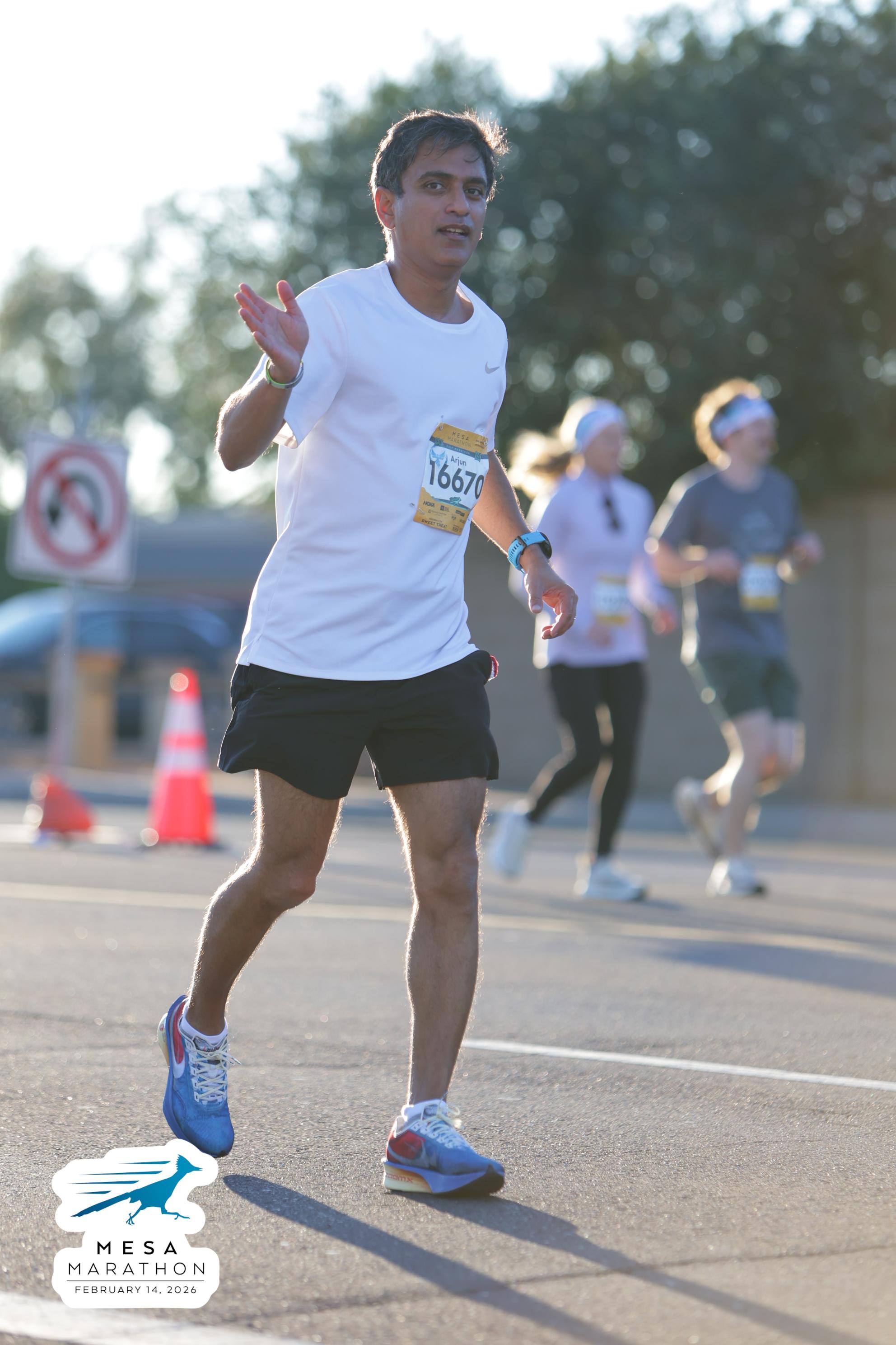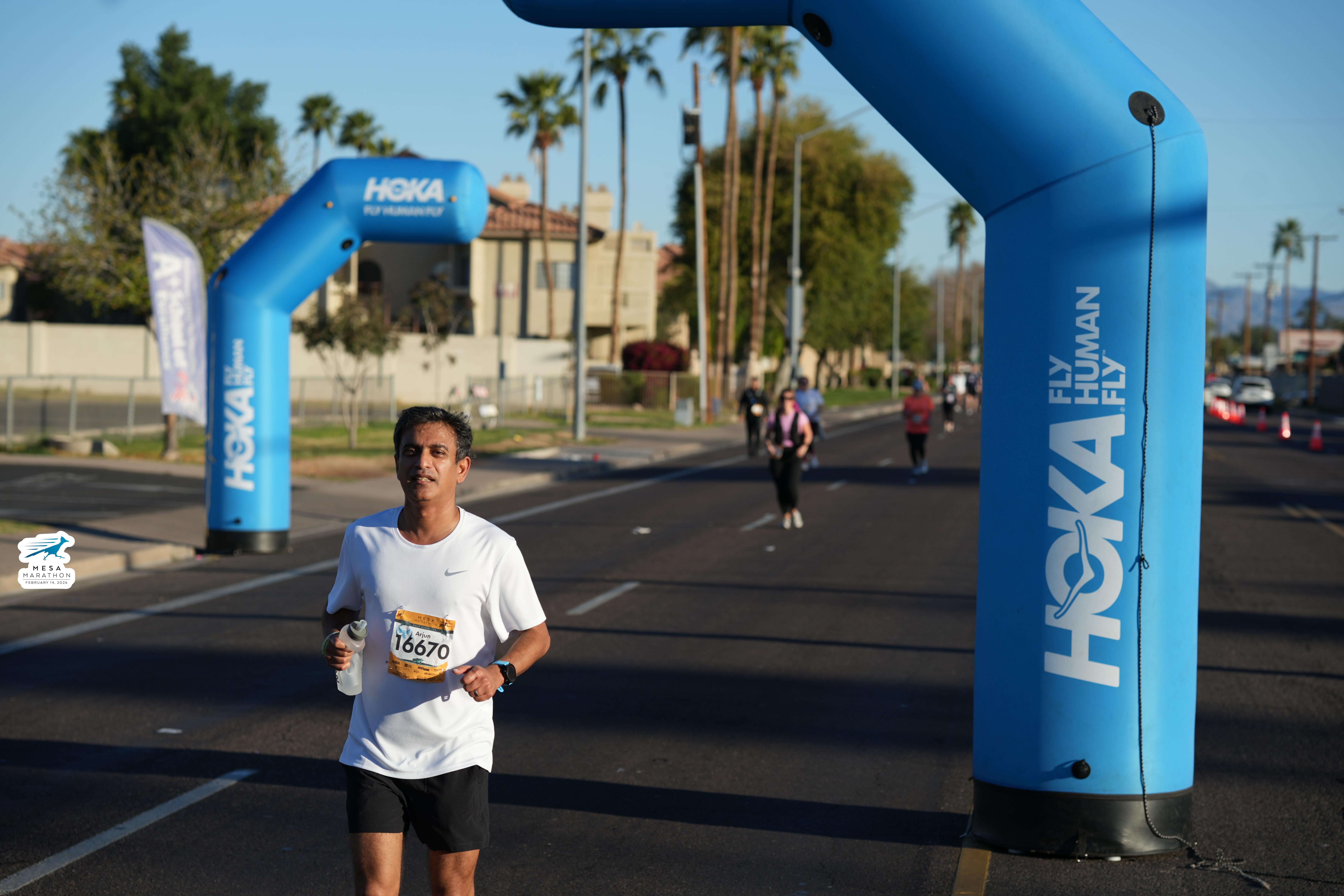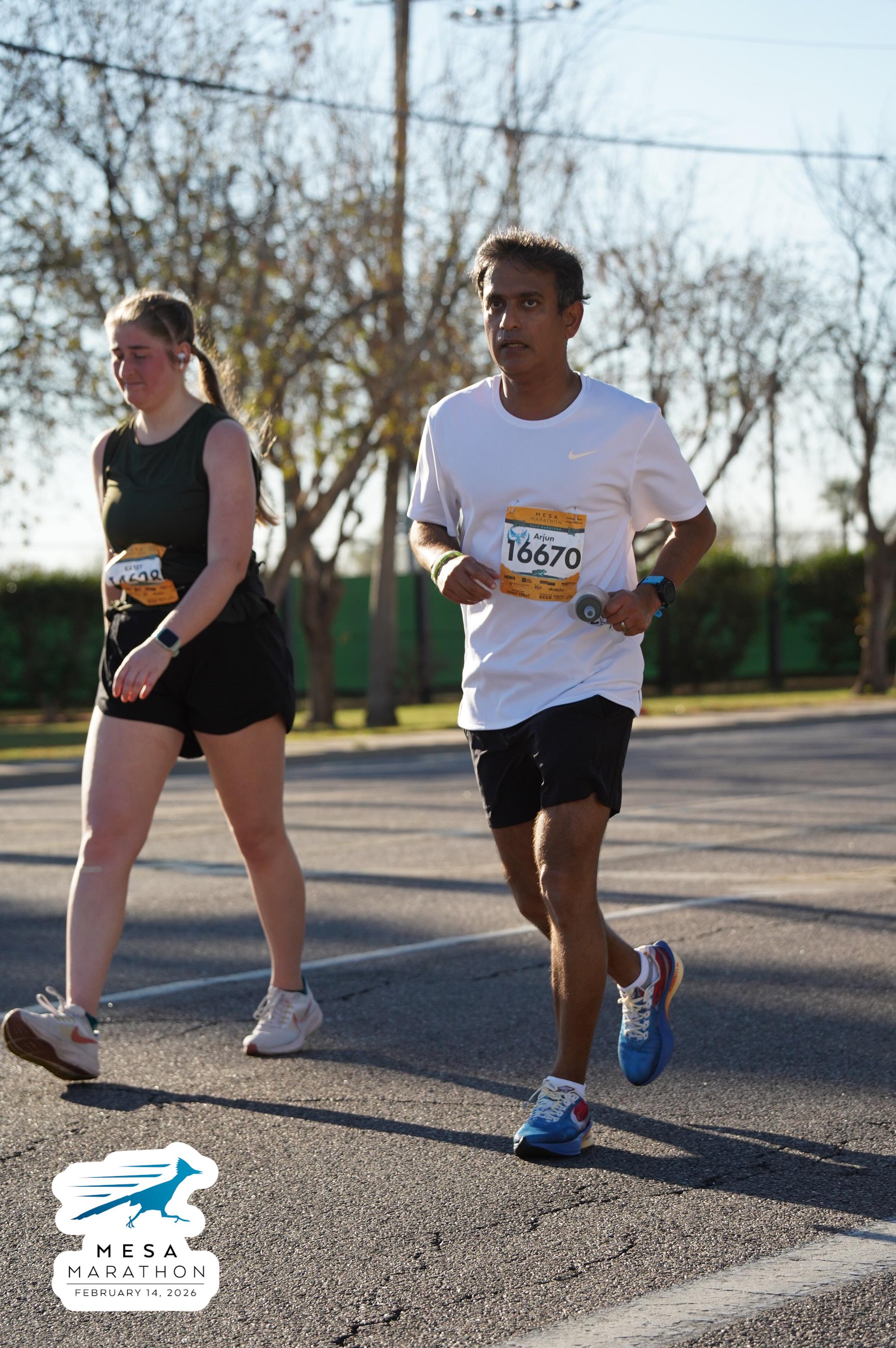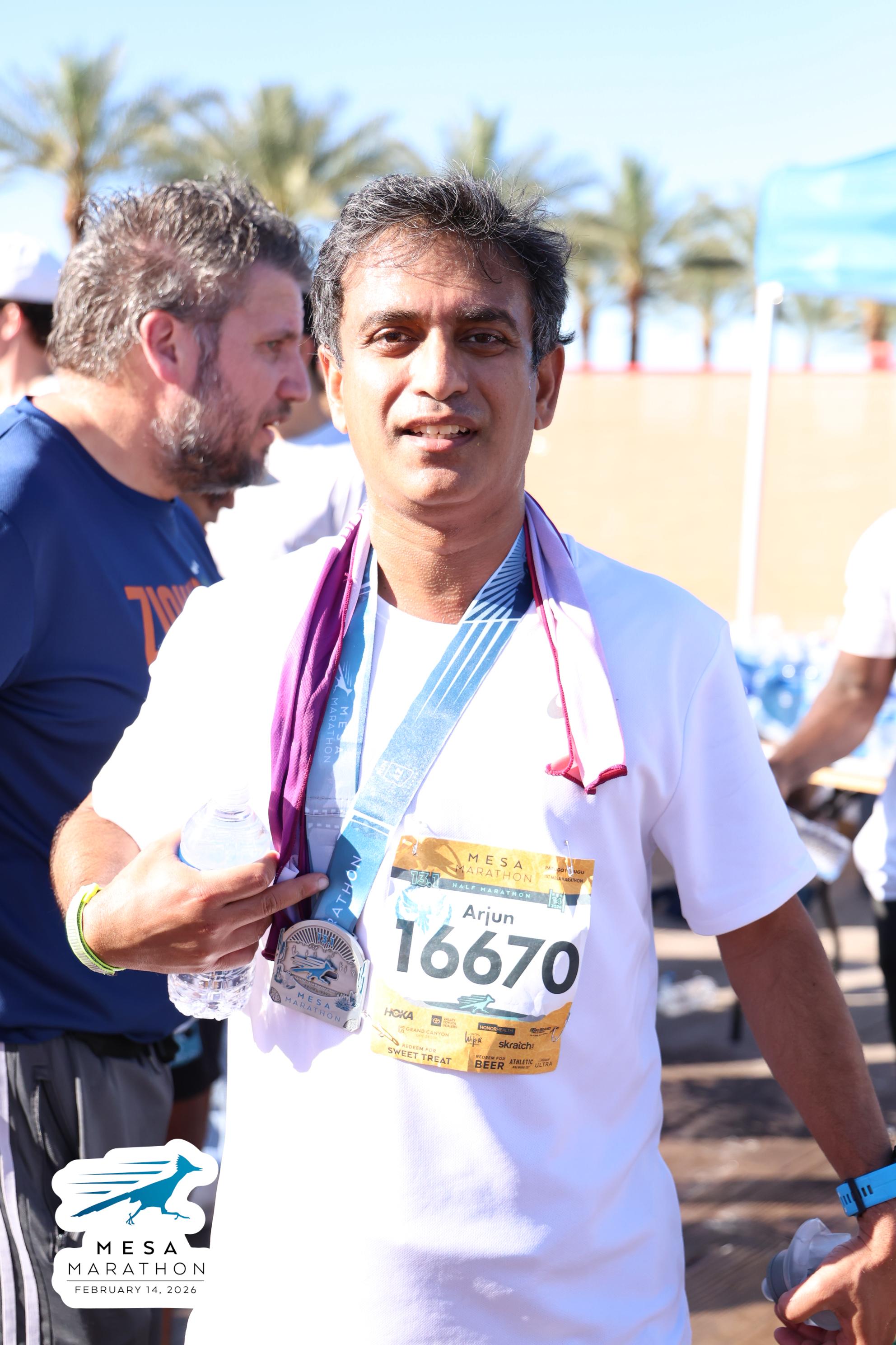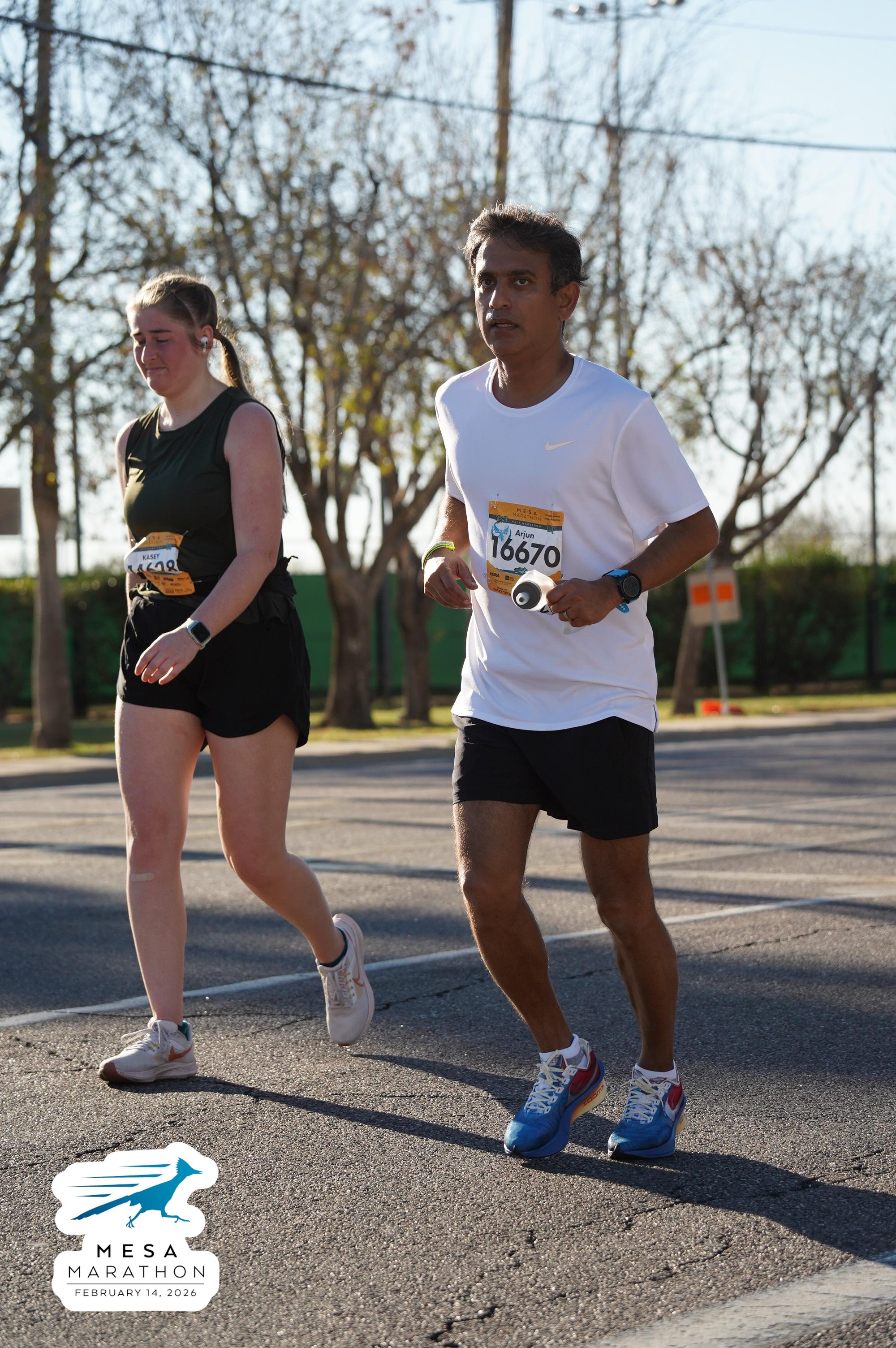 Date: Feb. 14, 2026 Participant: Arjun Parvathaneni #16670 Race: 2026 Mesa Half Marathon Distance: 13.1 miles