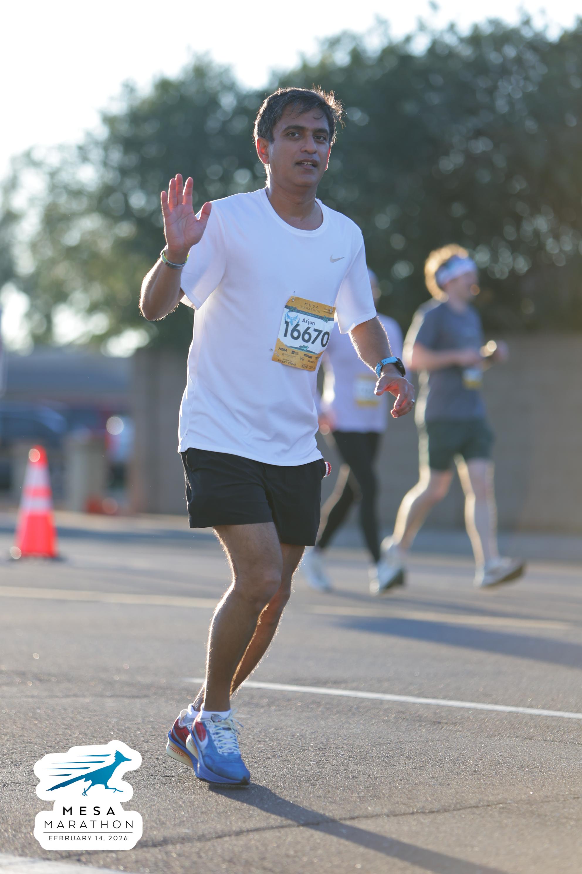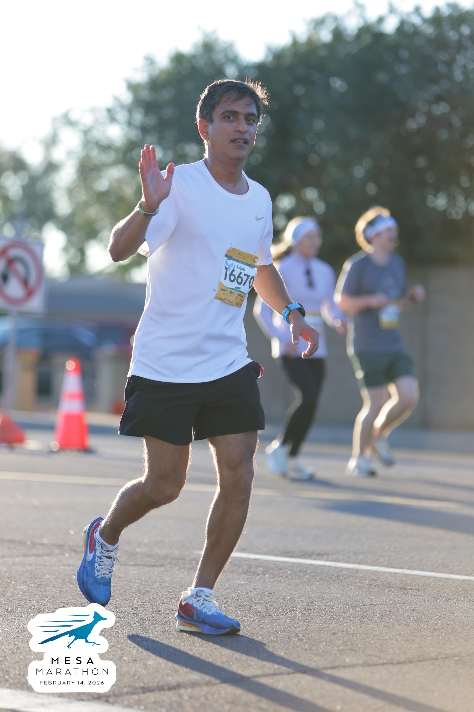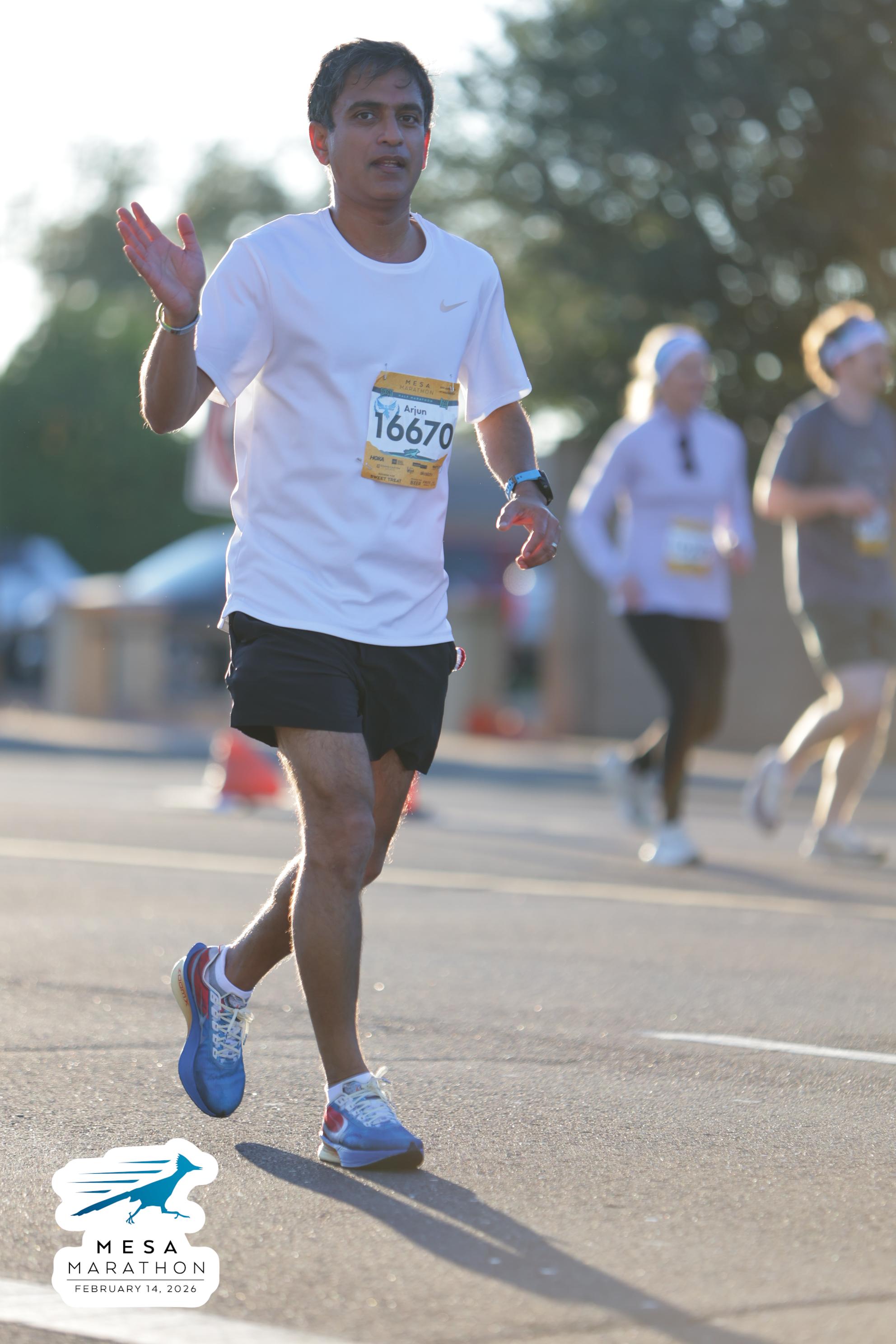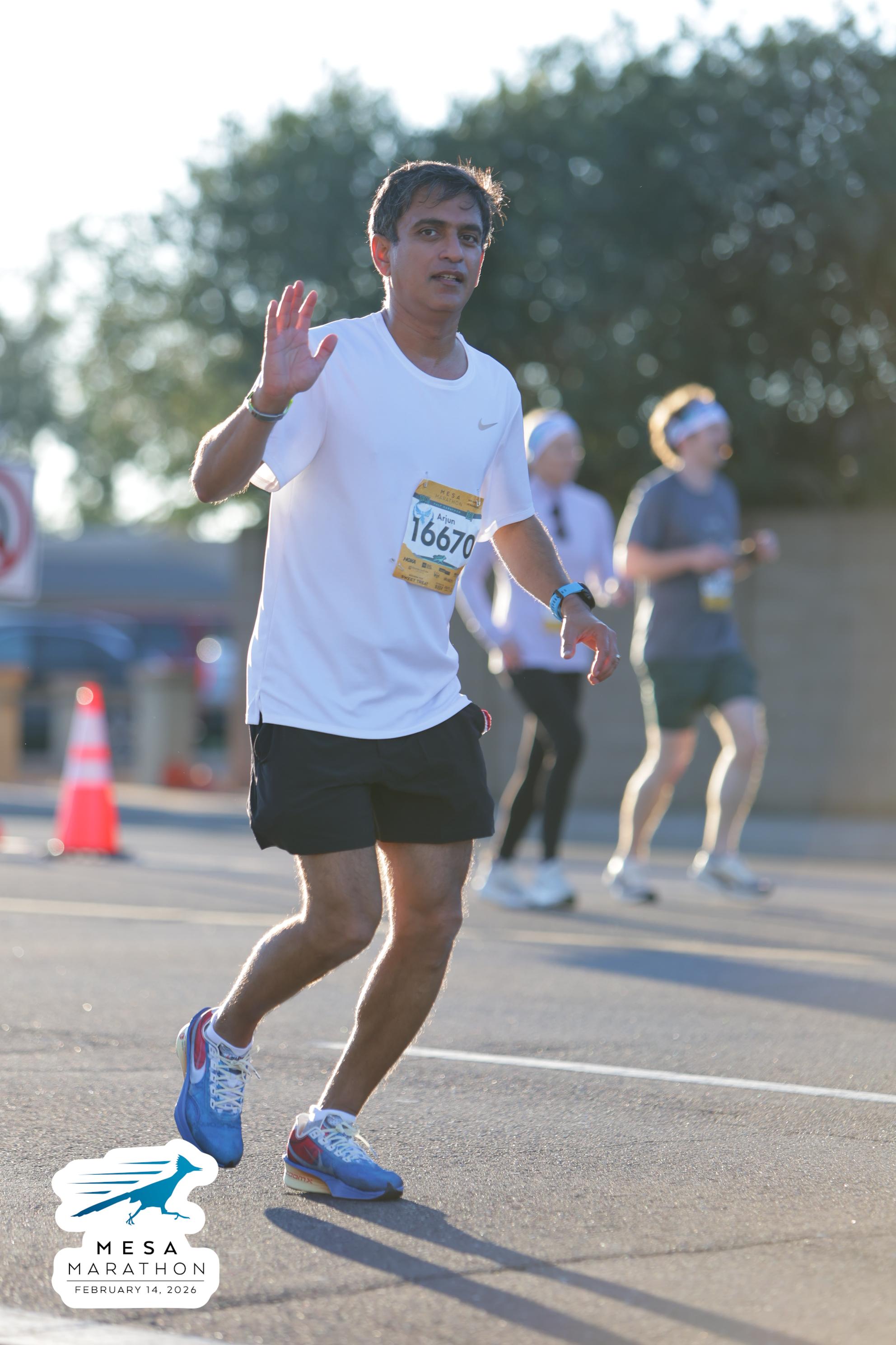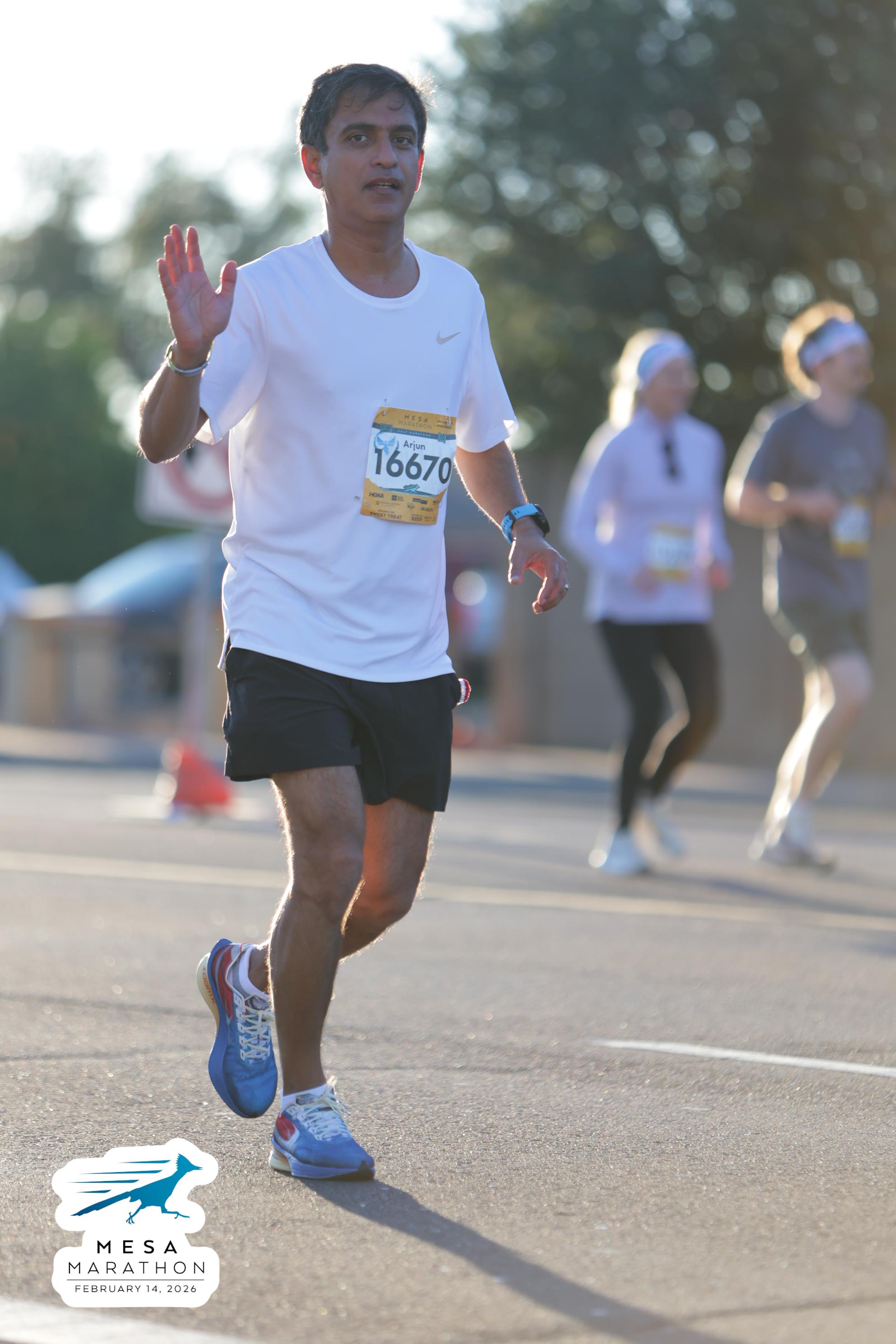 Date: Feb. 14, 2026 Participant: Arjun Parvathaneni #16670 Race: 2026 Mesa Half Marathon Distance: 13.1 miles