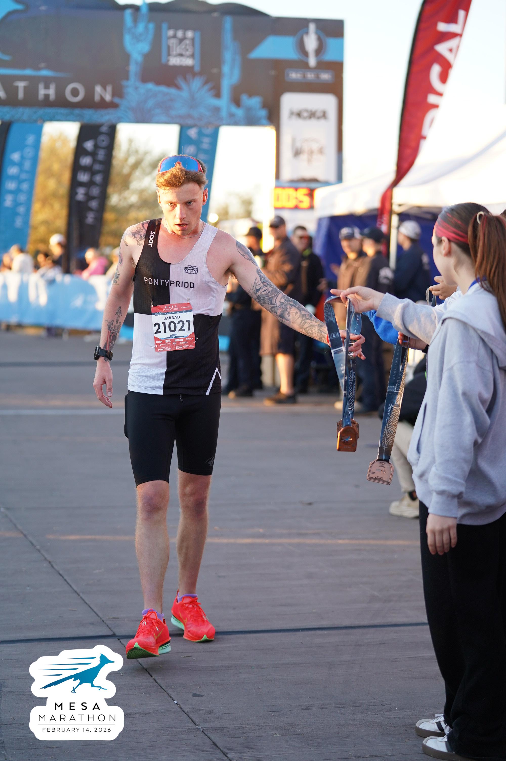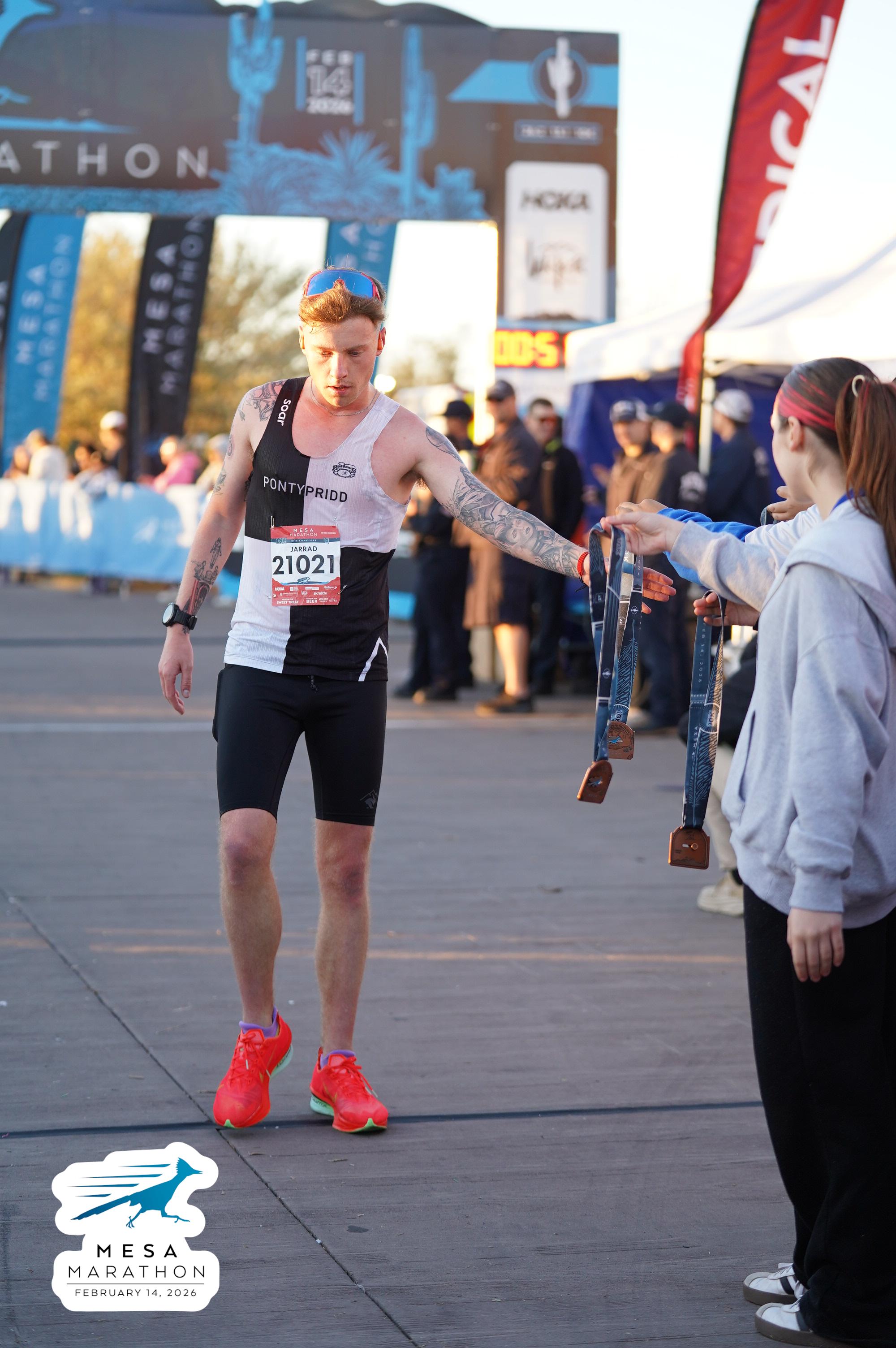 Date: Feb. 14, 2026 Participant: Jarrad Rowlands #21021 Race: 2026 Mesa 10K Distance: 6.2 miles