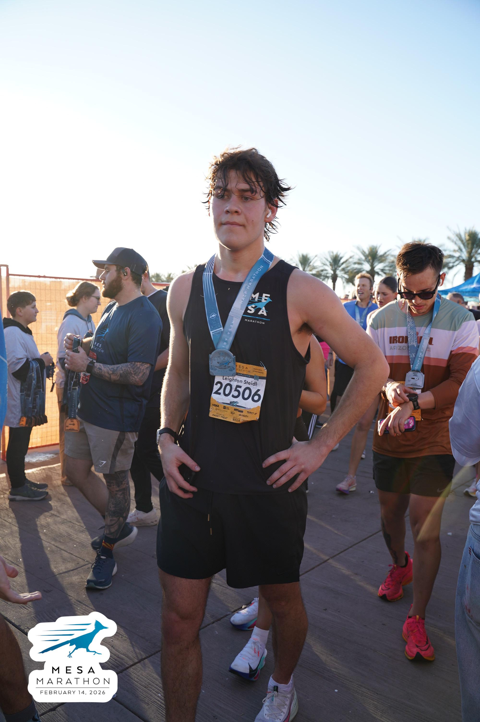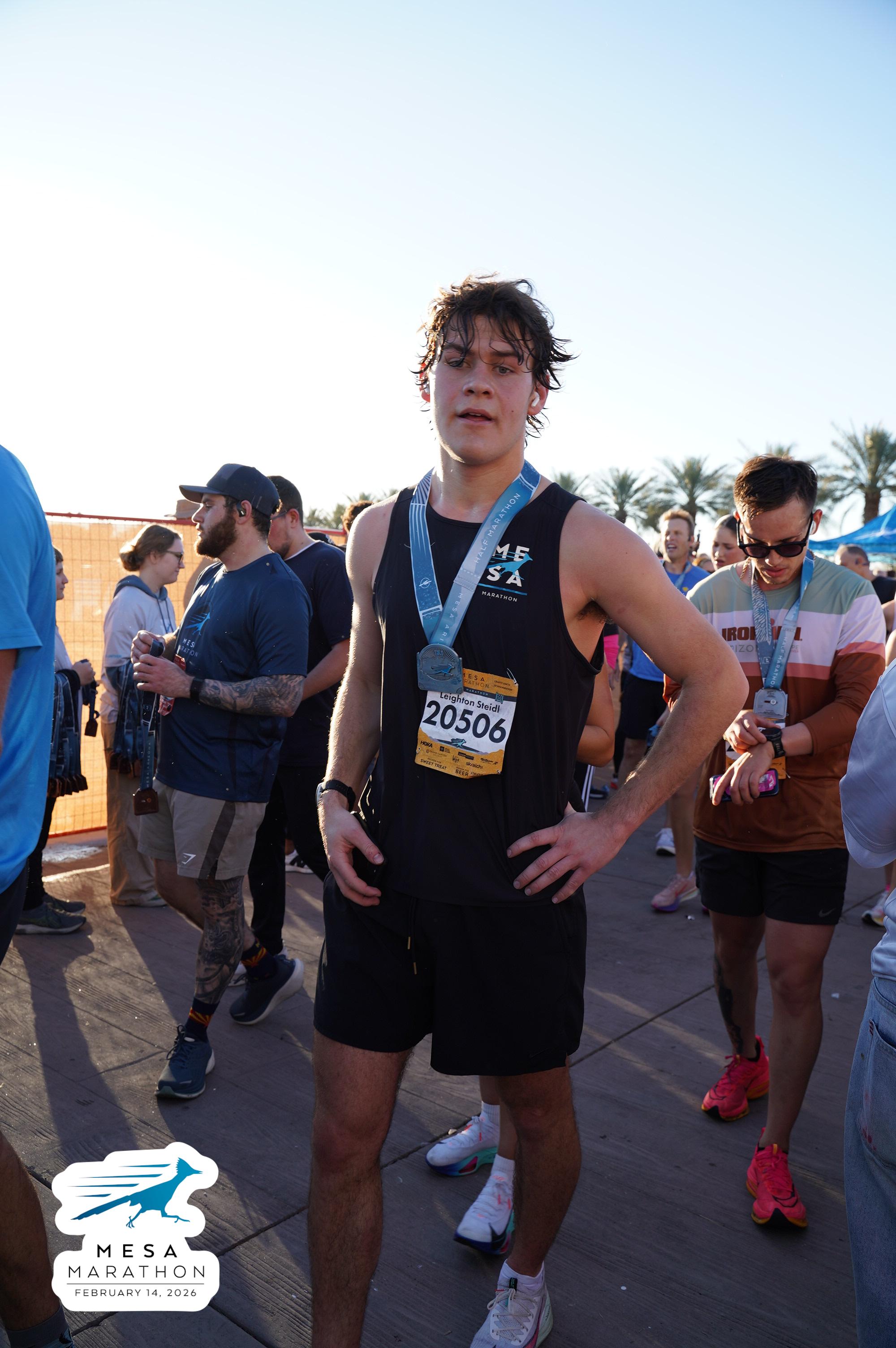 Date: Feb. 14, 2026 Participant: Leighton Steidl #20506 Race: 2026 Mesa Half Marathon Distance: 13.1 miles