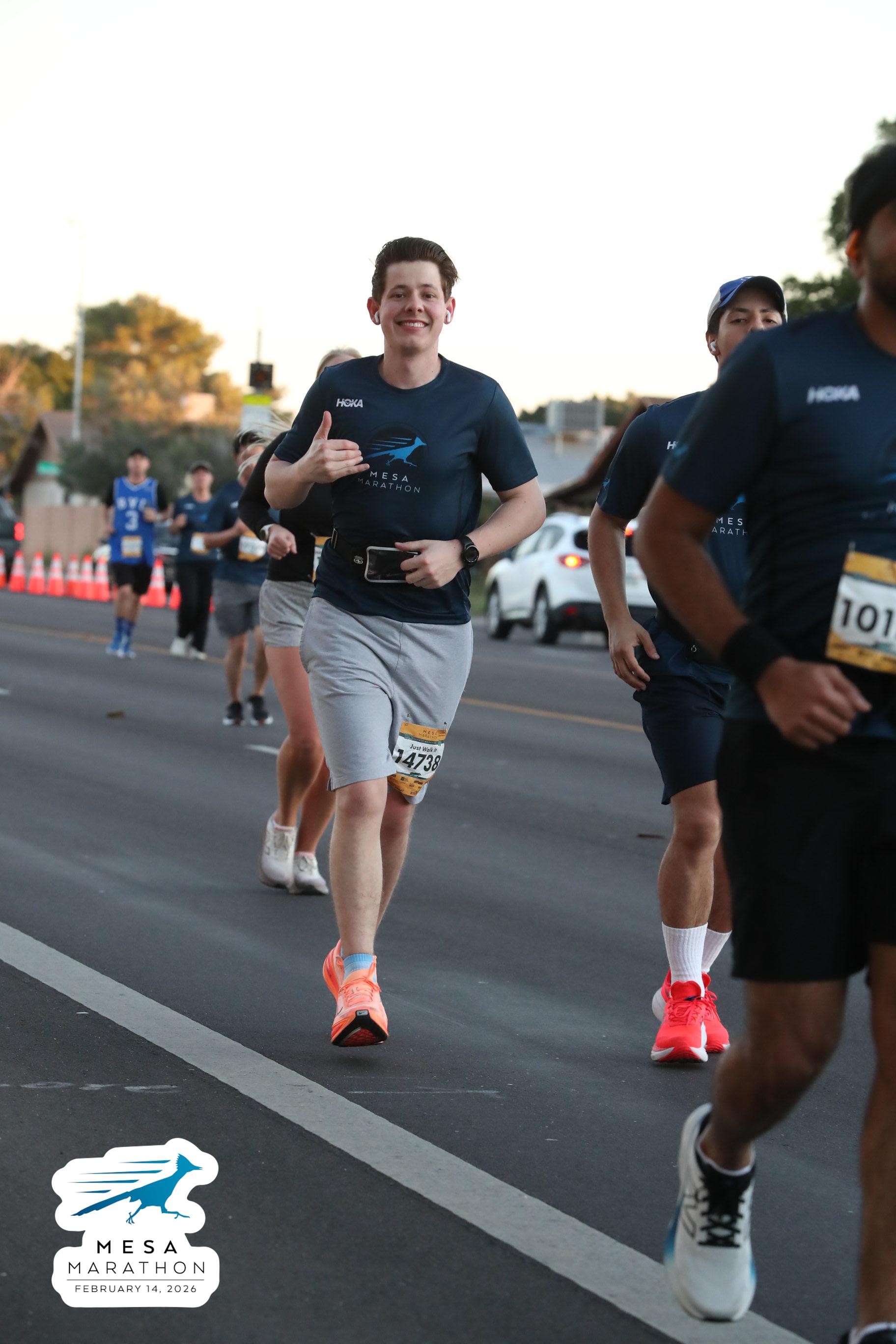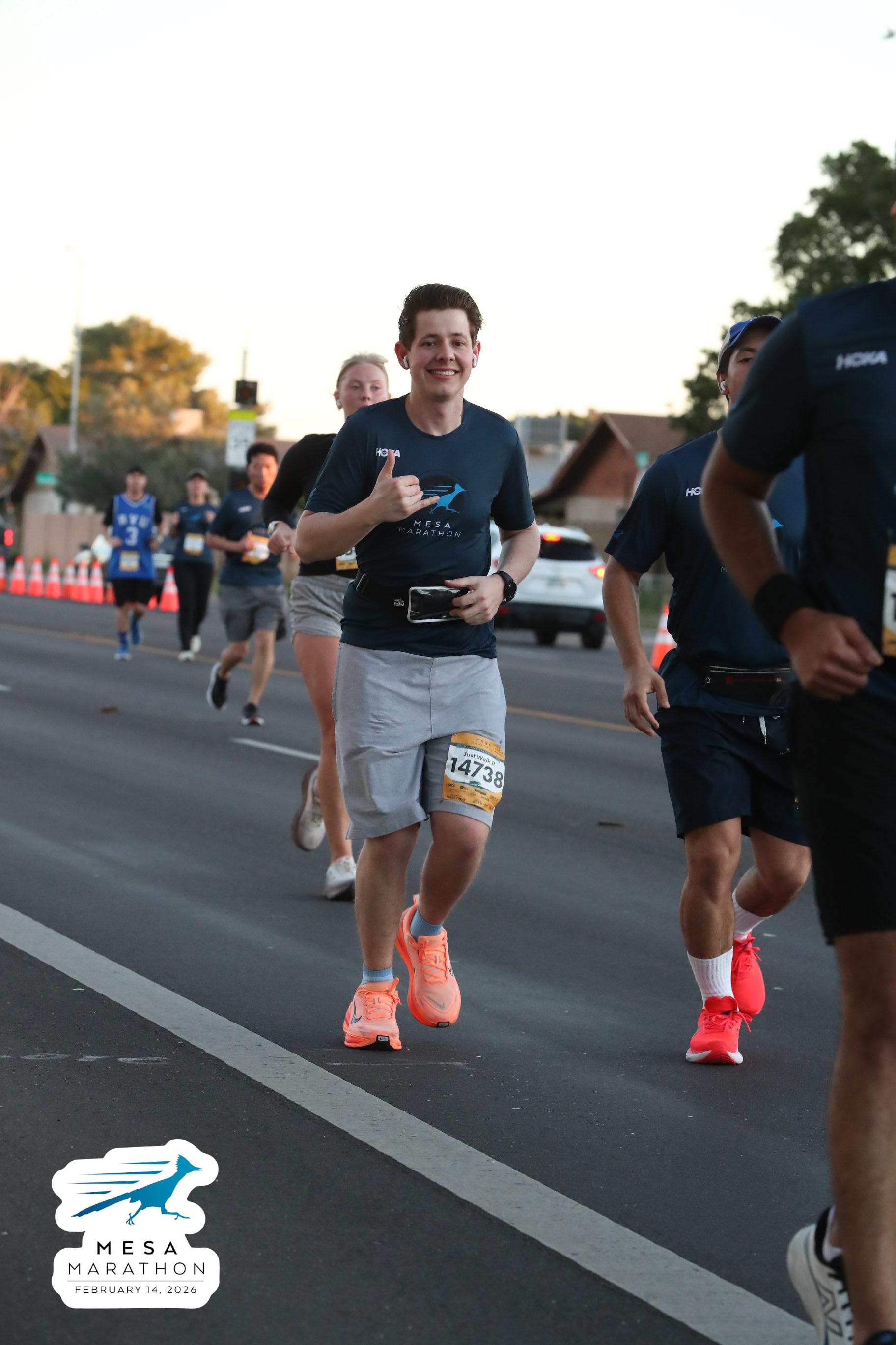 Date: Feb. 14, 2026 Participant: Wilhelm Brautigan #14738 Race: 2026 Mesa Half Marathon Distance: 13.1 miles