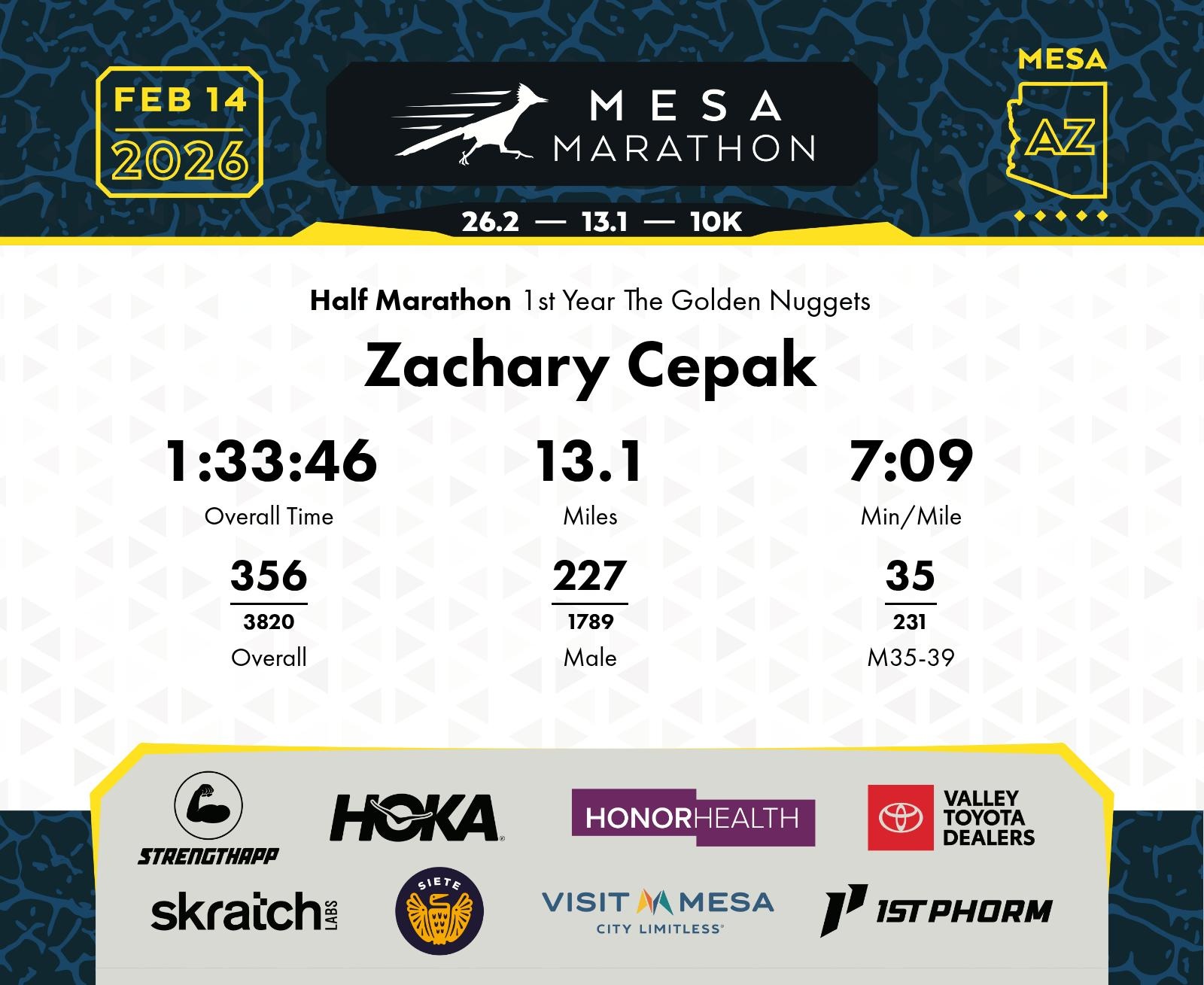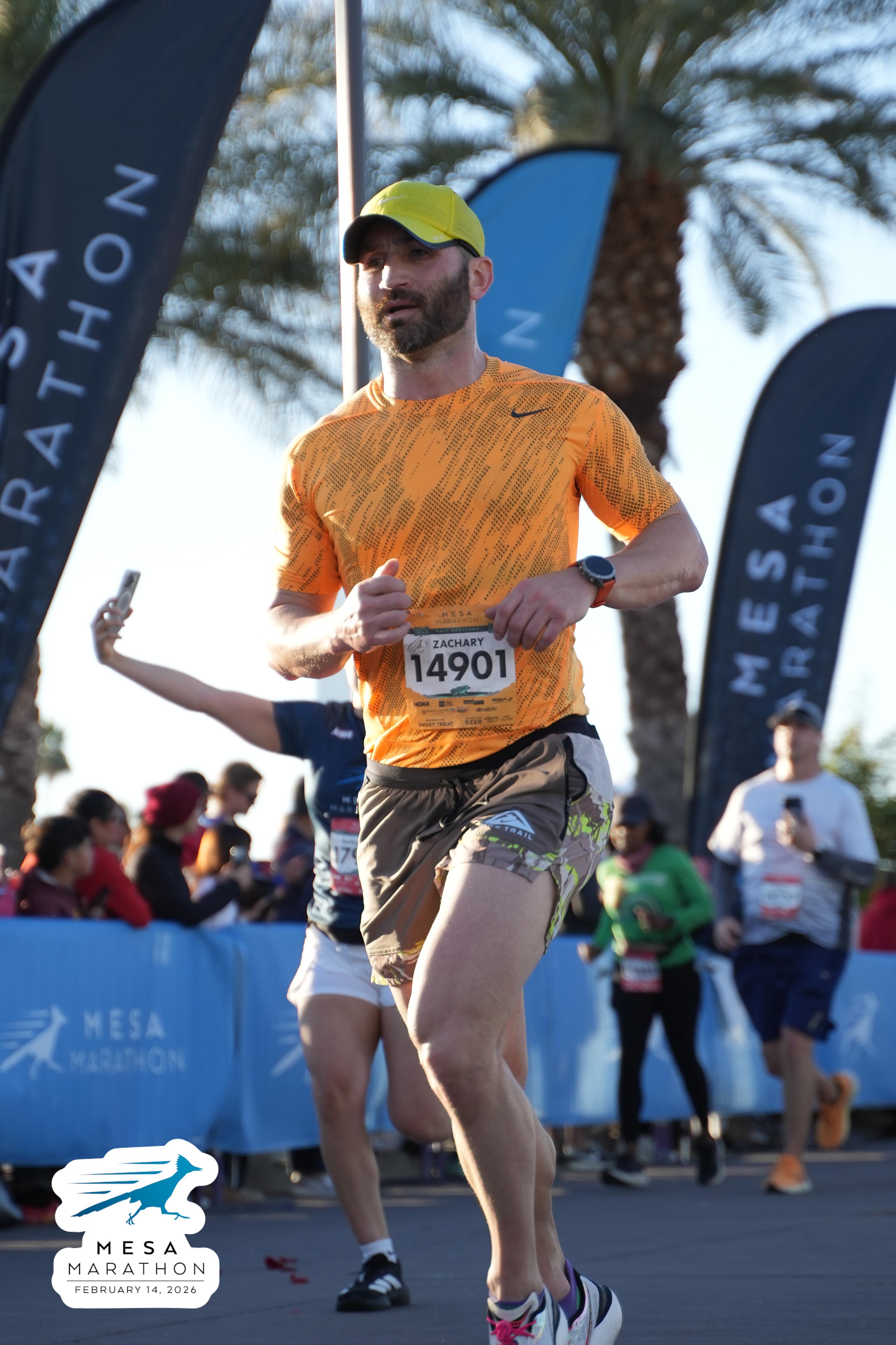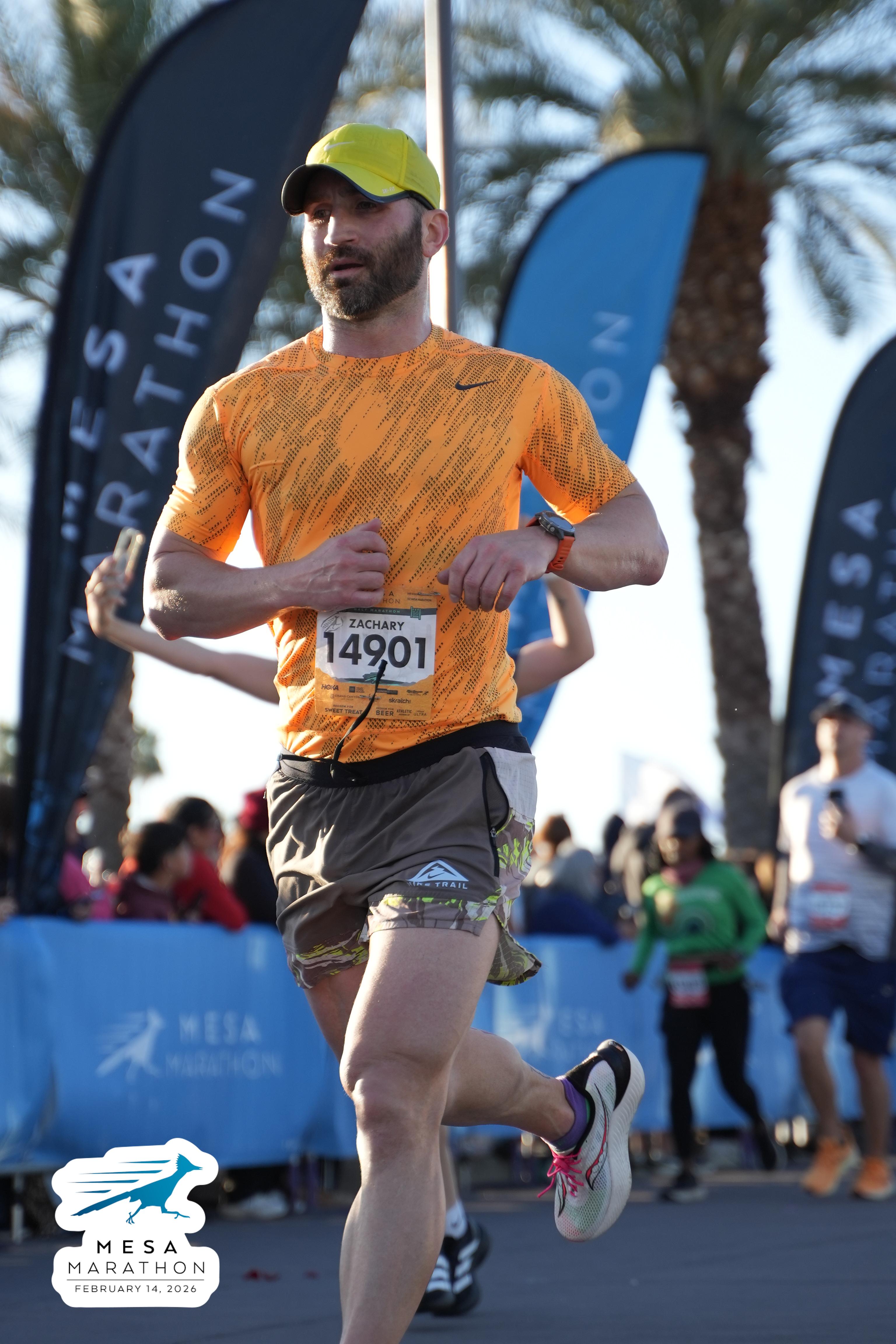 Date: Feb. 14, 2026 Participant: Zachary Cepak #14901 Race: 2026 Mesa Half Marathon Distance: 13.1 miles