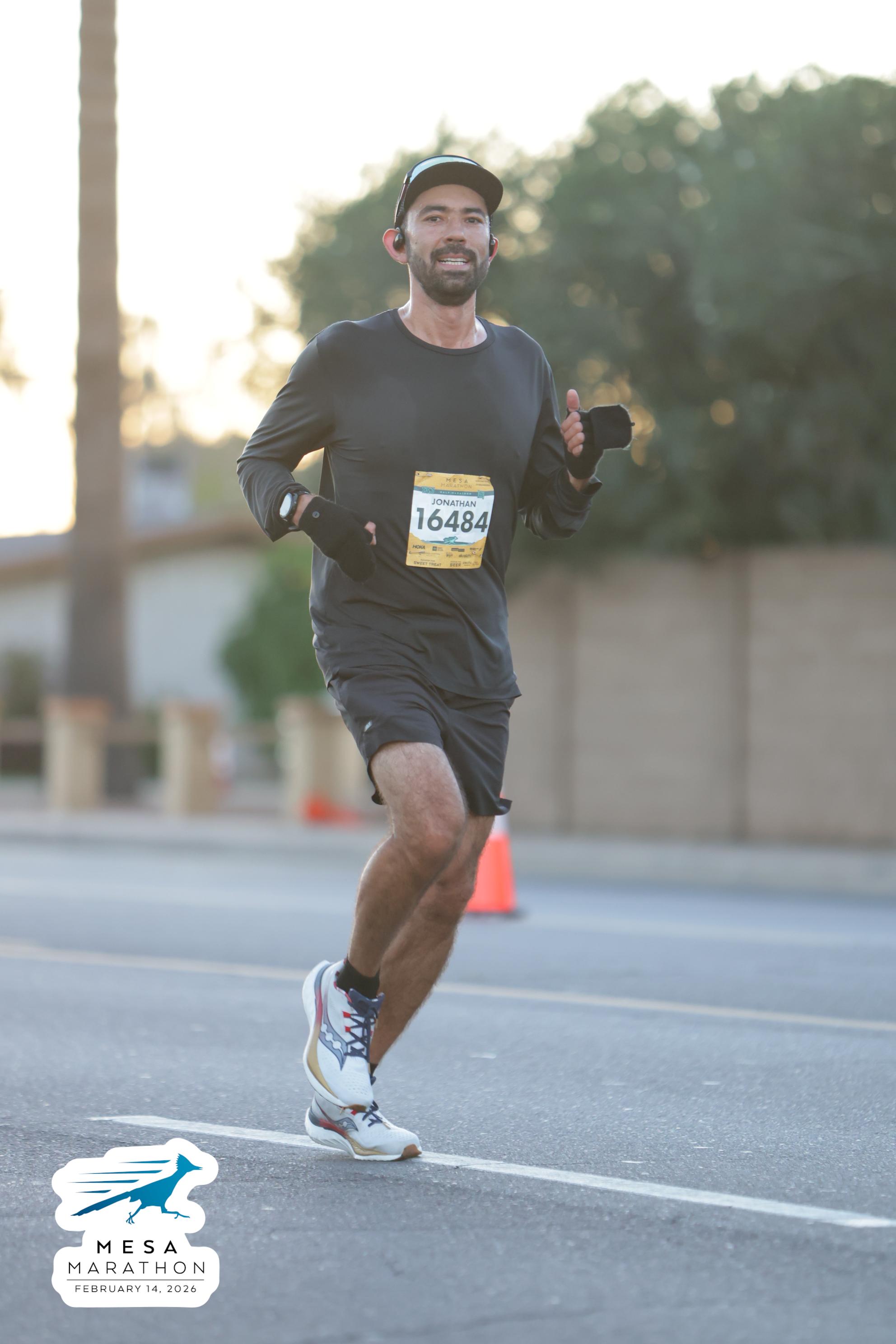 Date: Feb. 14, 2026 Participant: Jonathan Munera #16484 Race: 2026 Mesa Half Marathon Distance: 13.1 miles