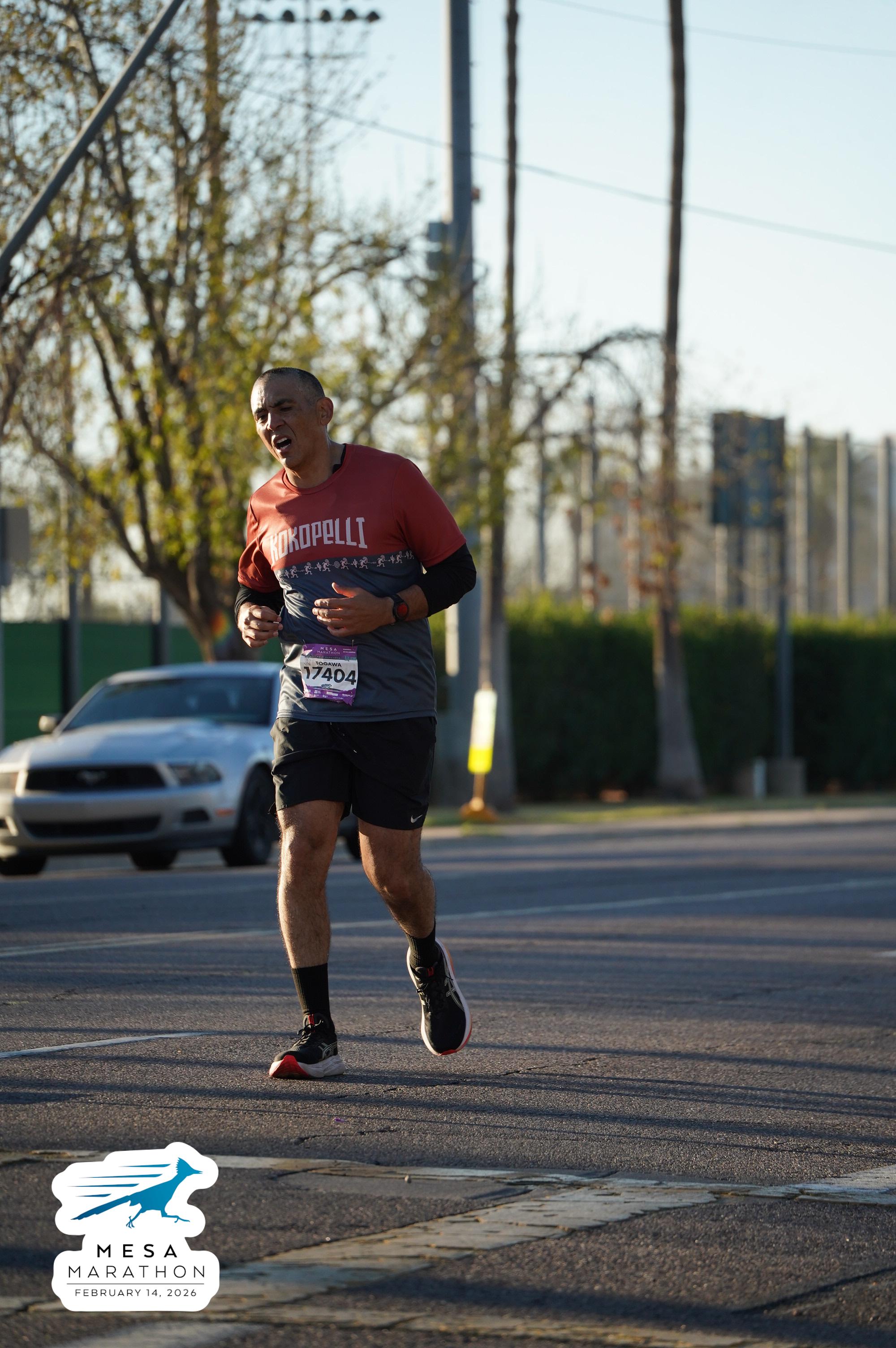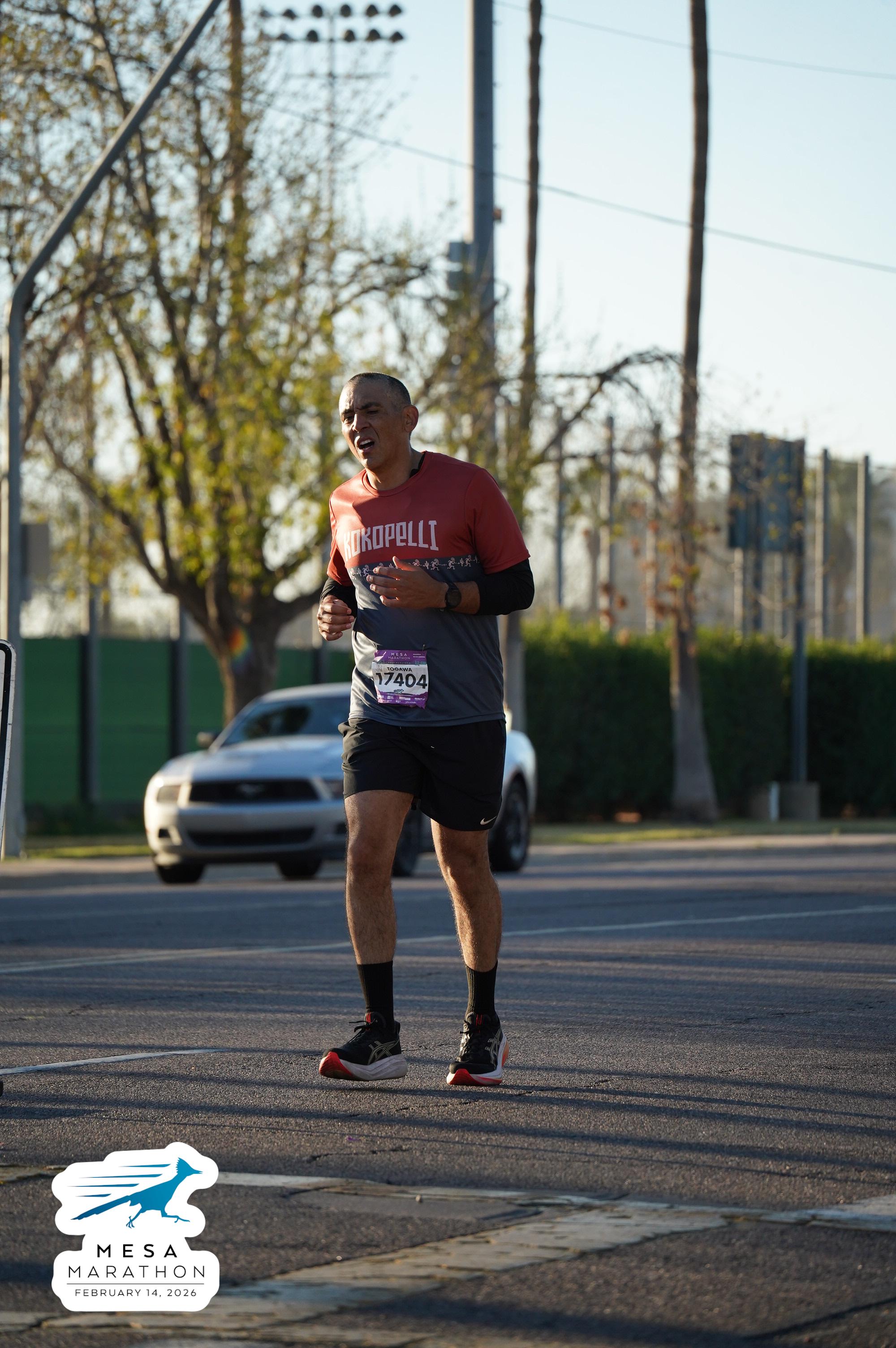 Date: Feb. 14, 2026 Participant: Gerardo Togawa #17404 Race: 2026 Mesa Half Marathon Distance: 13.1 miles