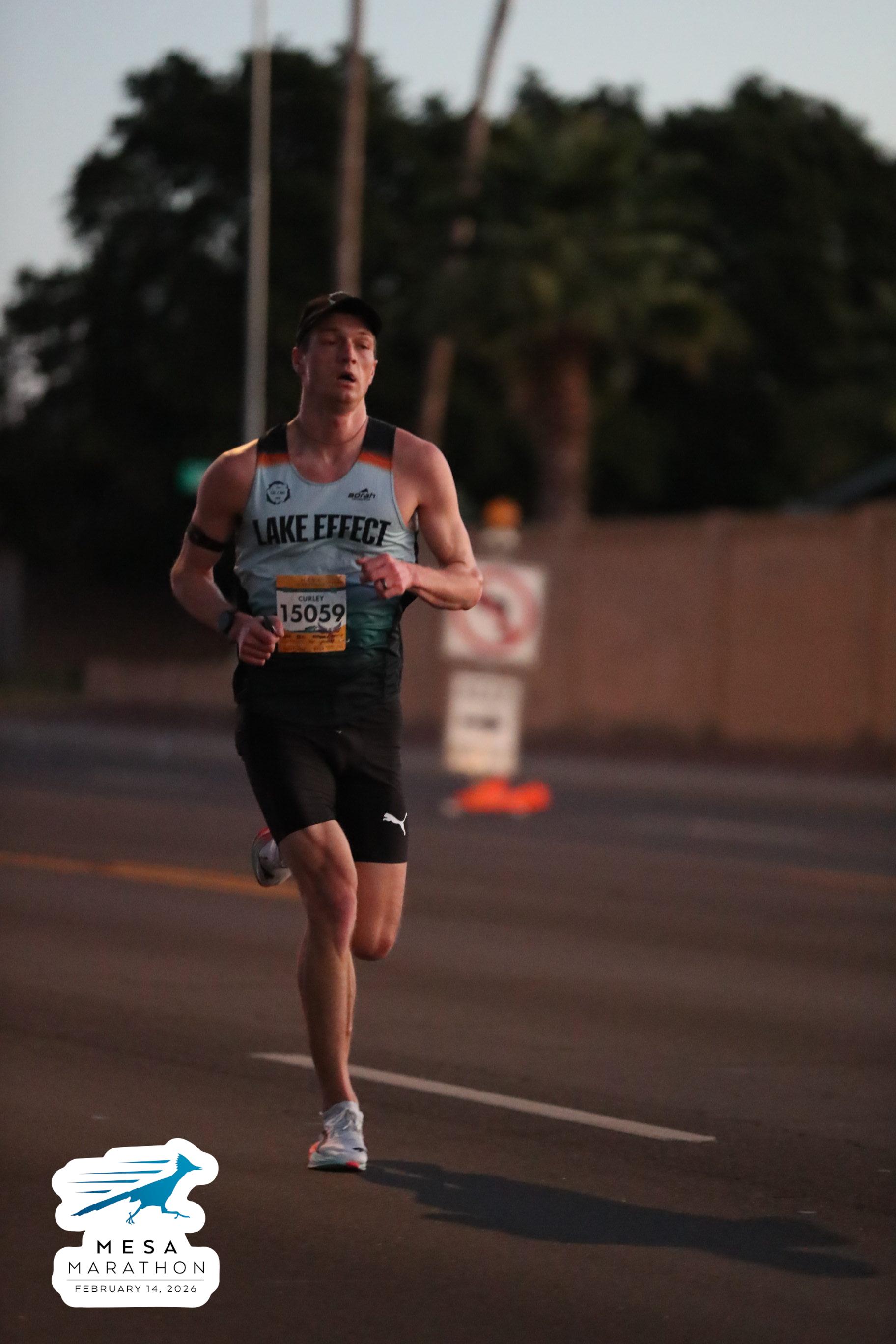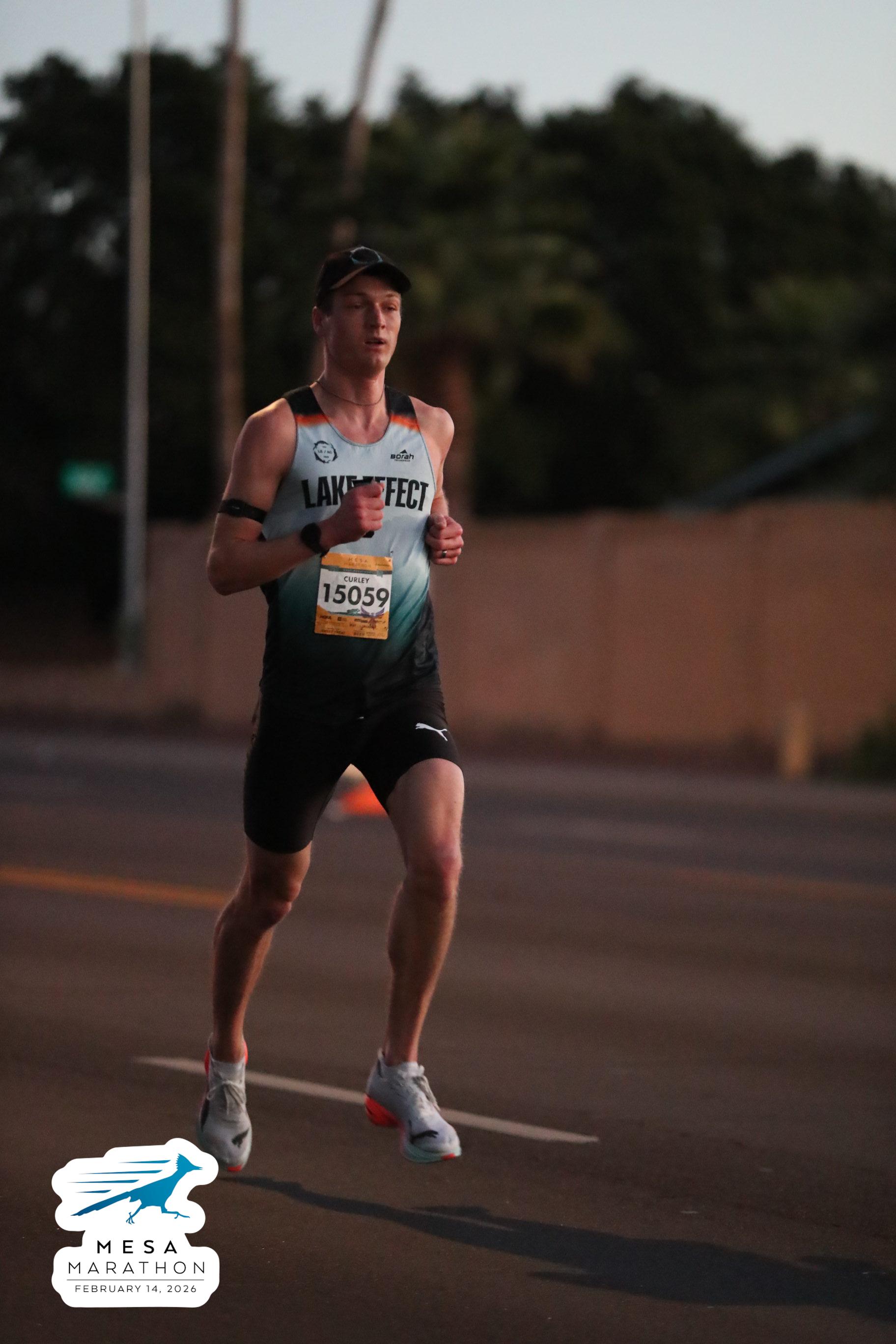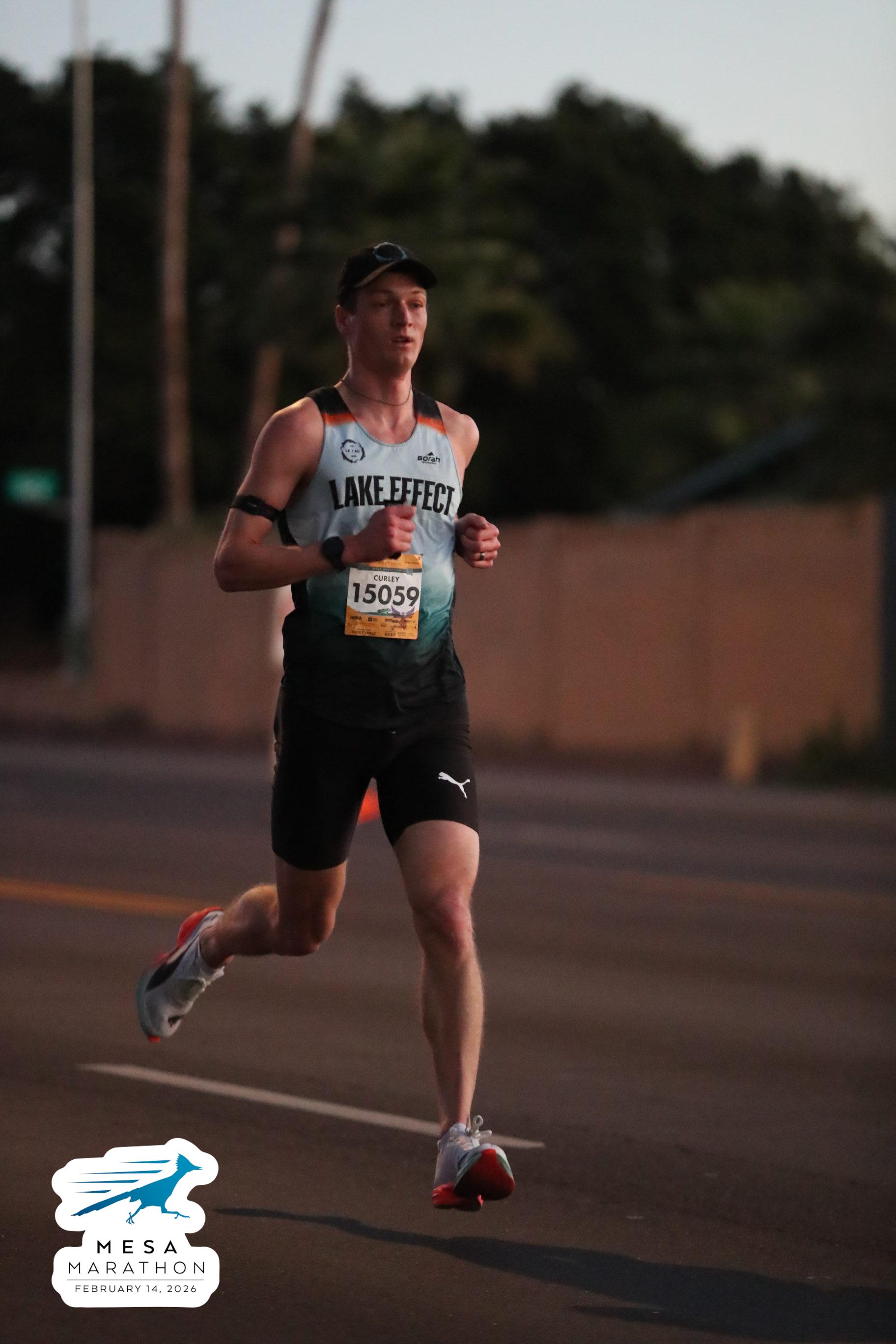 Date: Feb. 14, 2026 Participant: John Curley #15059 Race: 2026 Mesa Half Marathon Distance: 13.1 miles