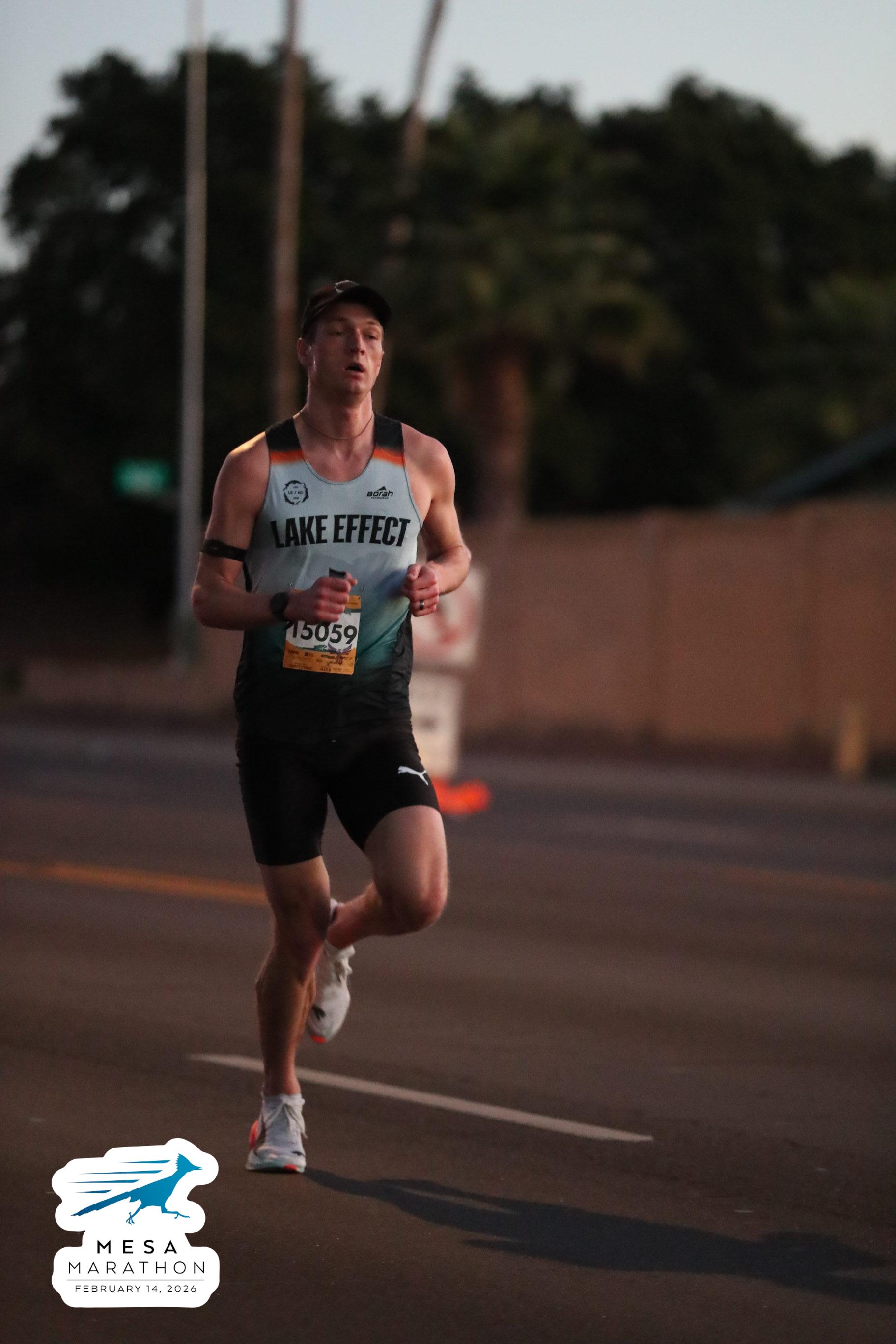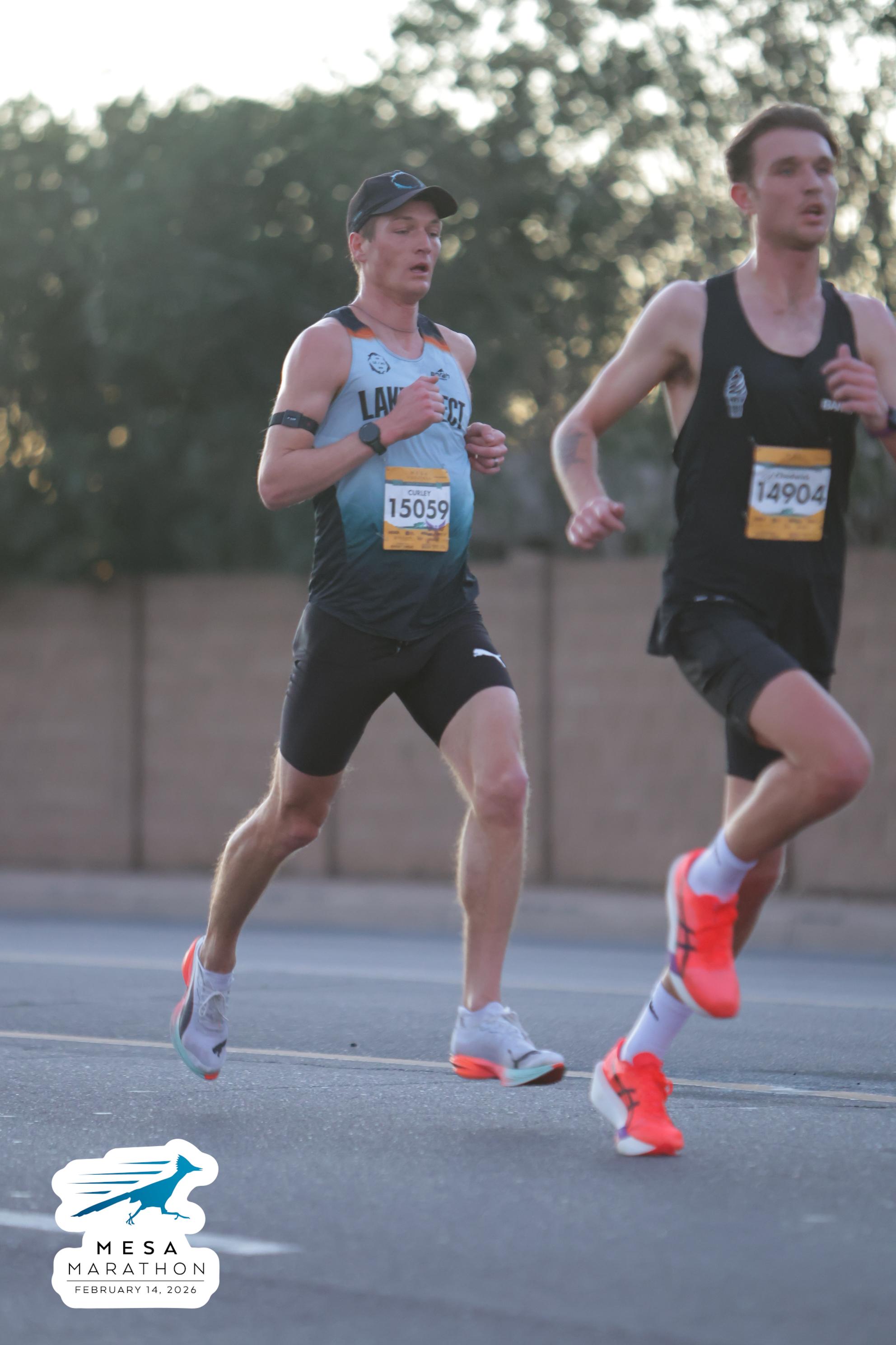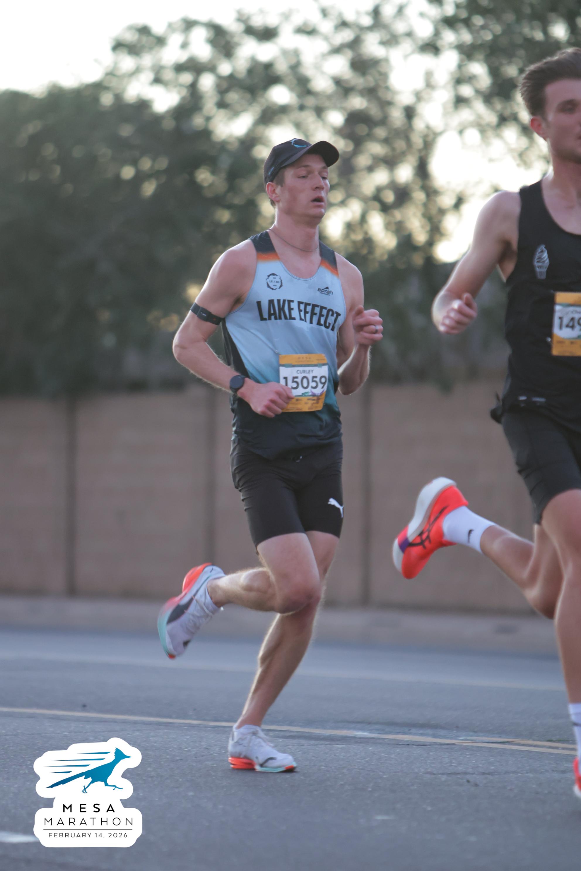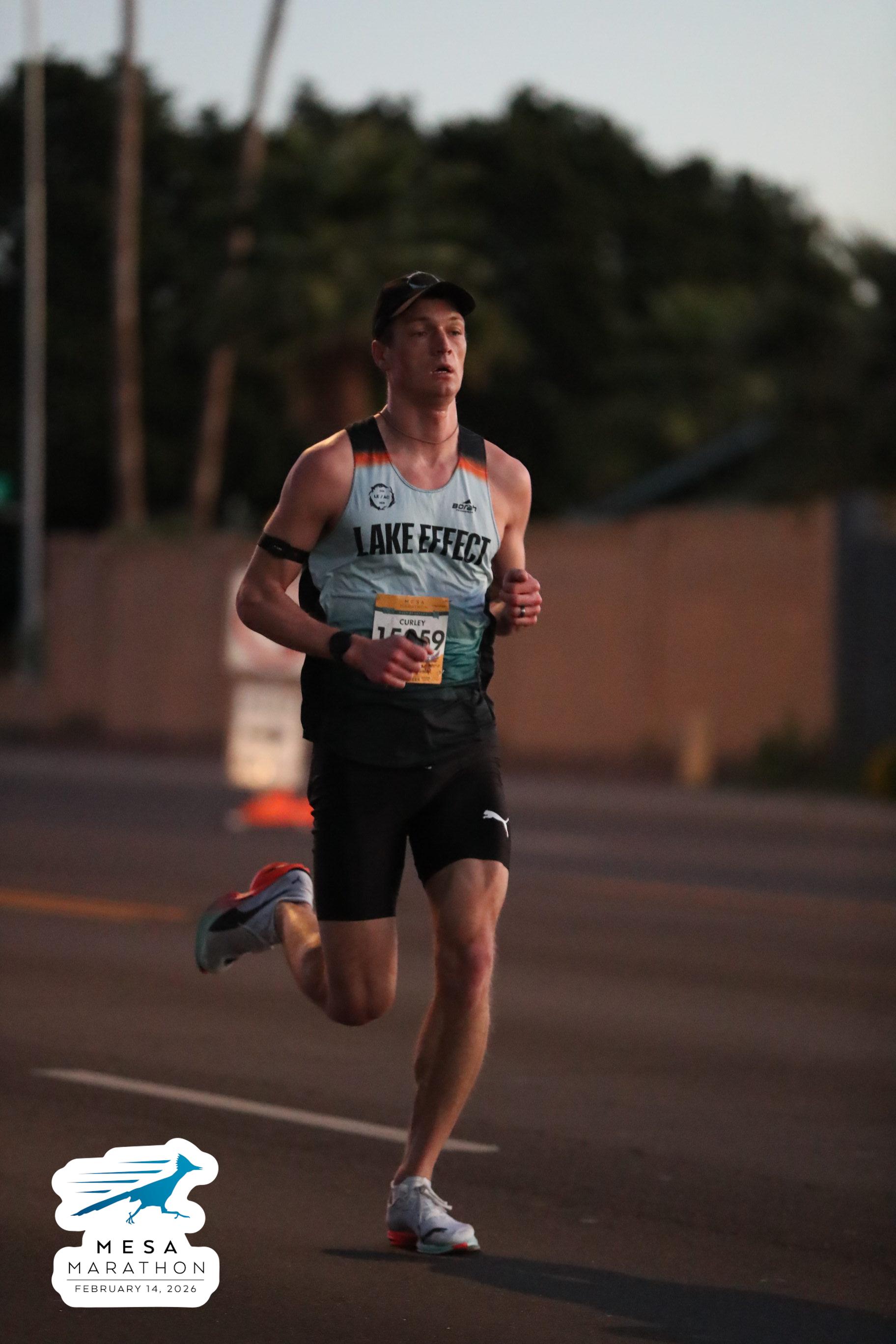 Date: Feb. 14, 2026 Participant: John Curley #15059 Race: 2026 Mesa Half Marathon Distance: 13.1 miles