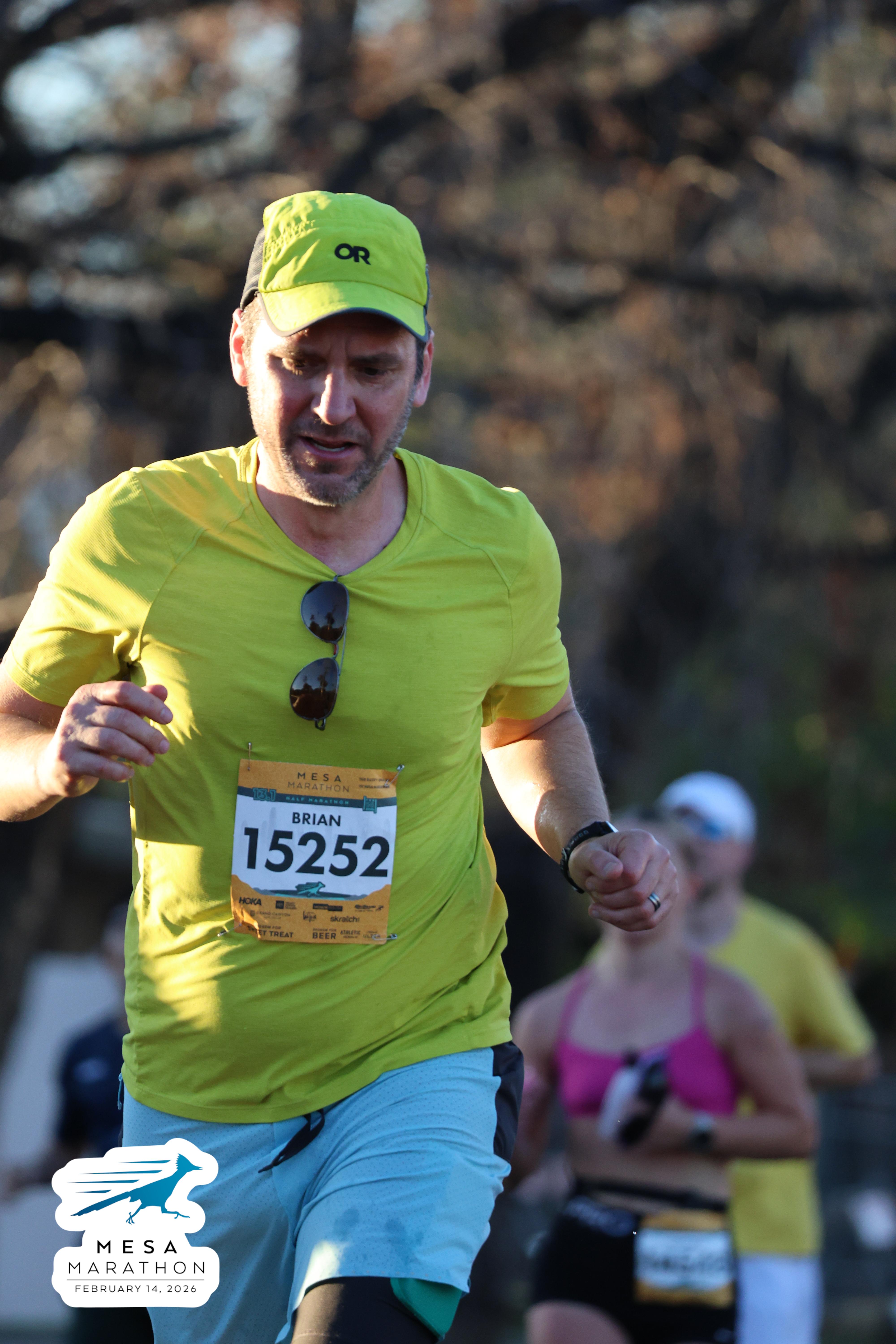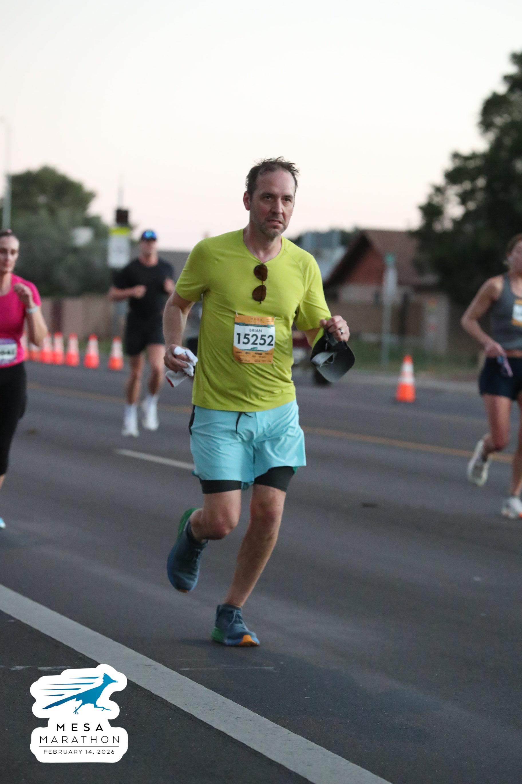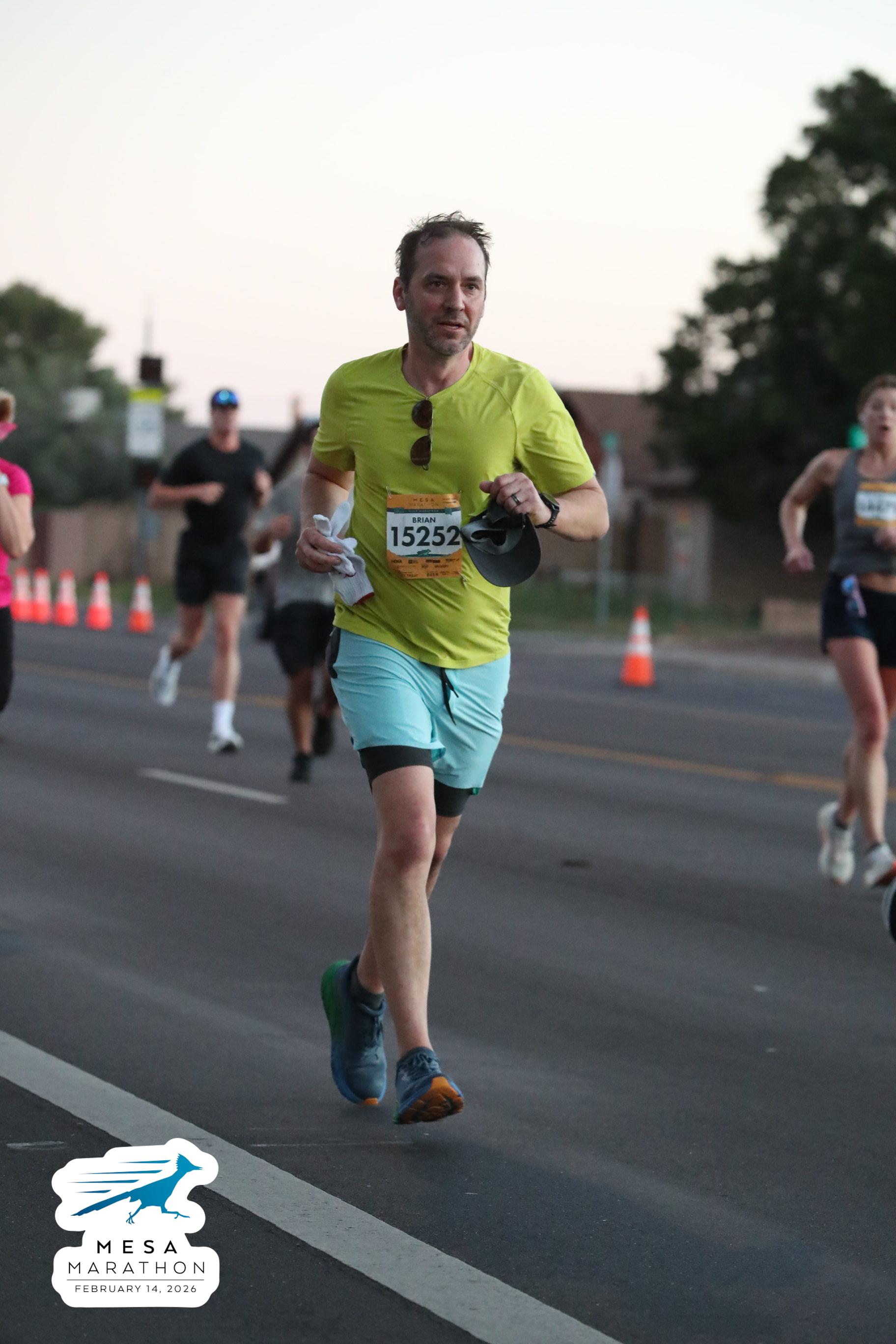 Date: Feb. 14, 2026 Participant: Brian Engelmann #15252 Race: 2026 Mesa Half Marathon Distance: 13.1 miles