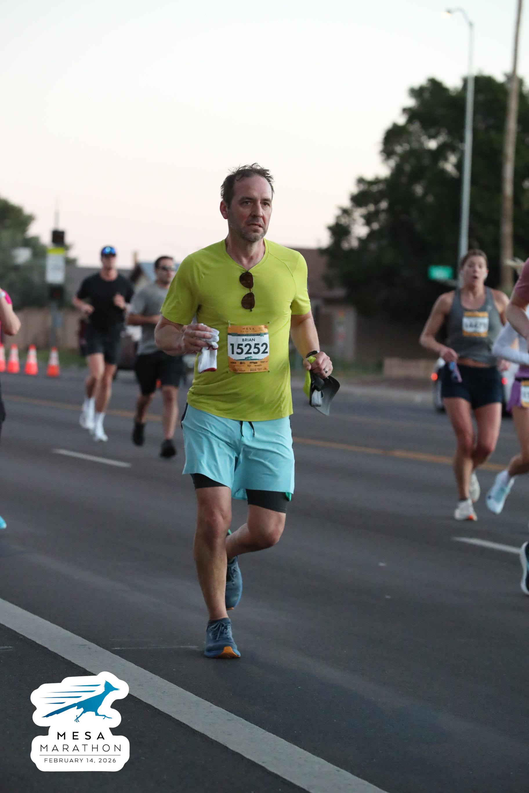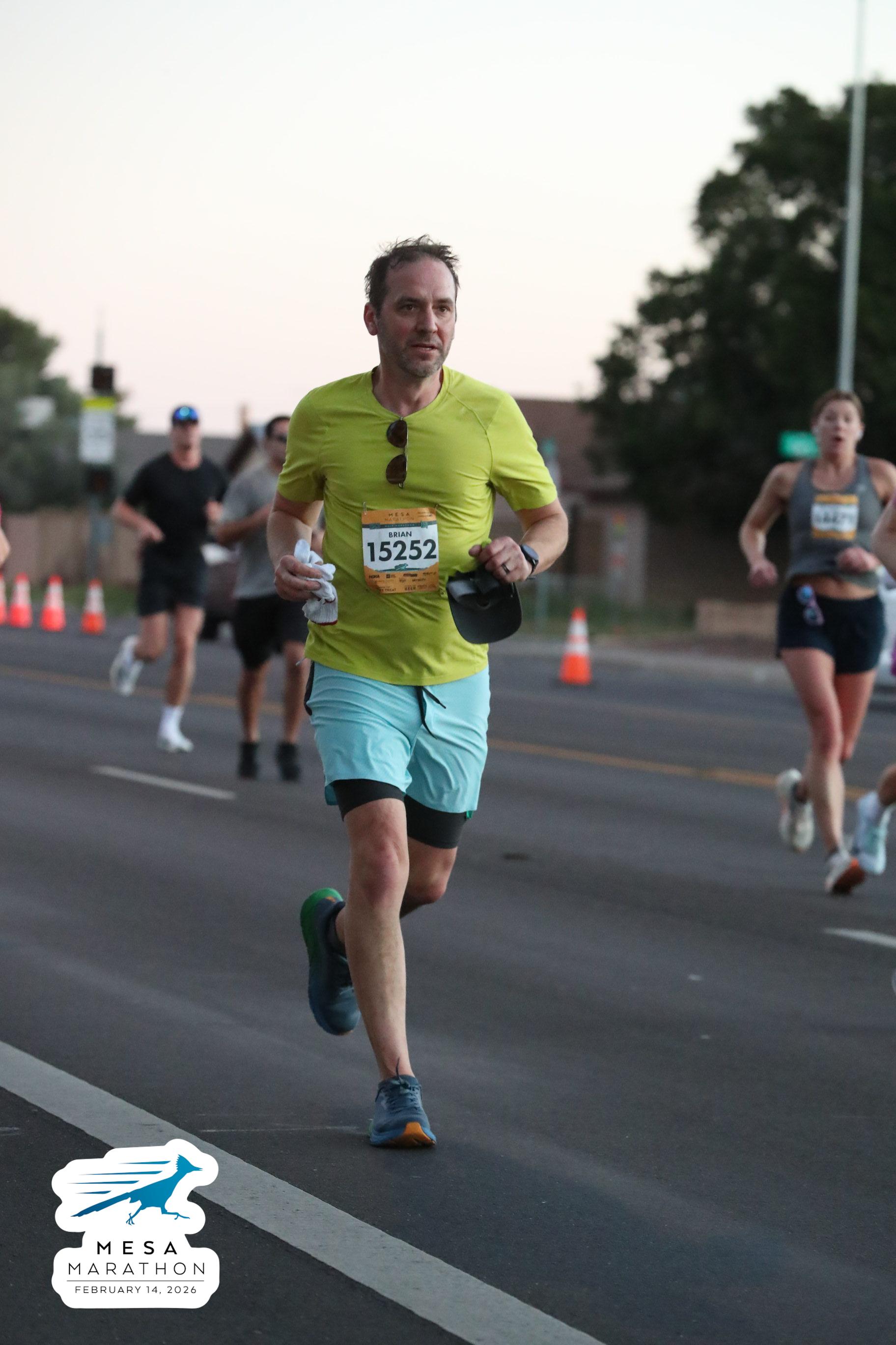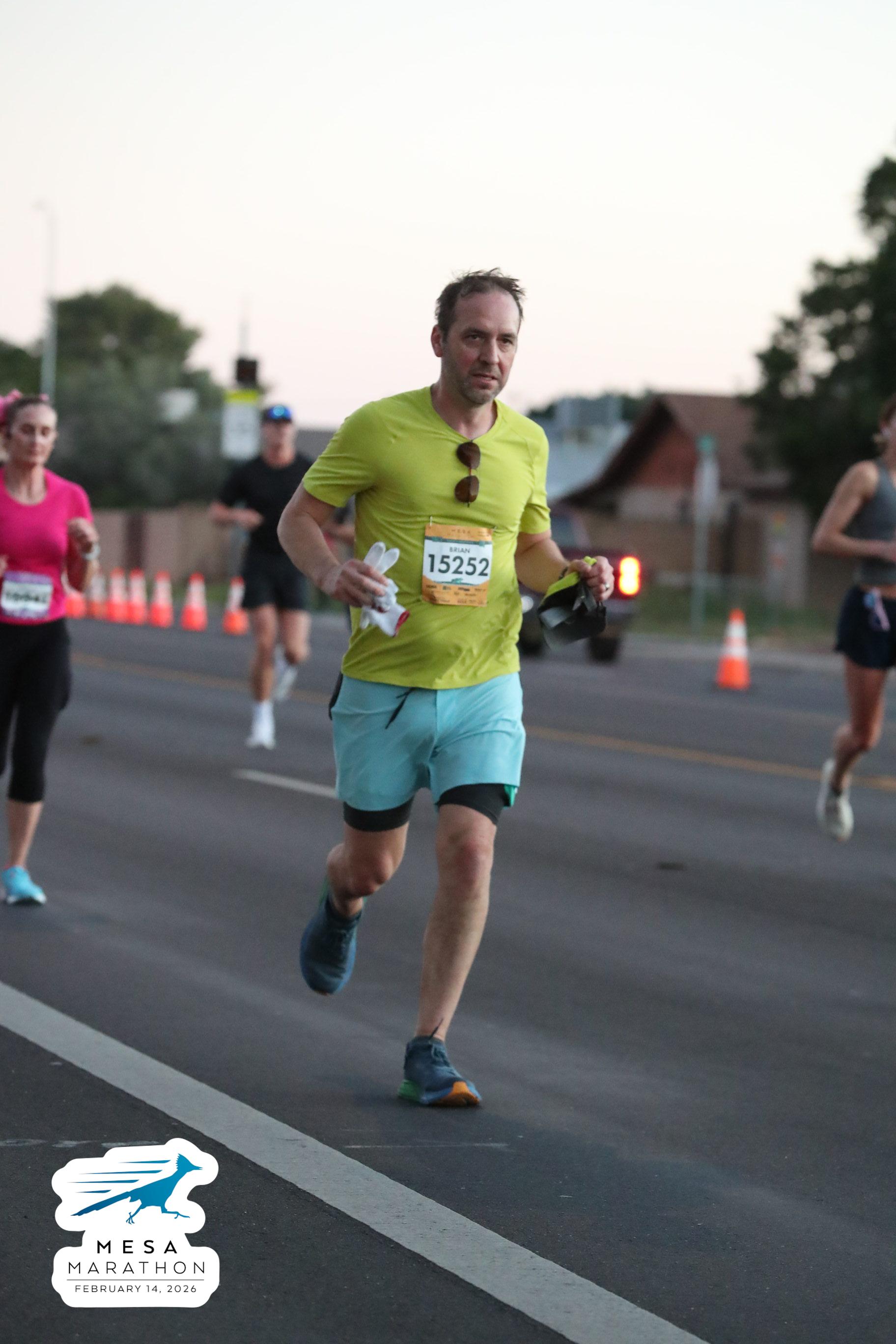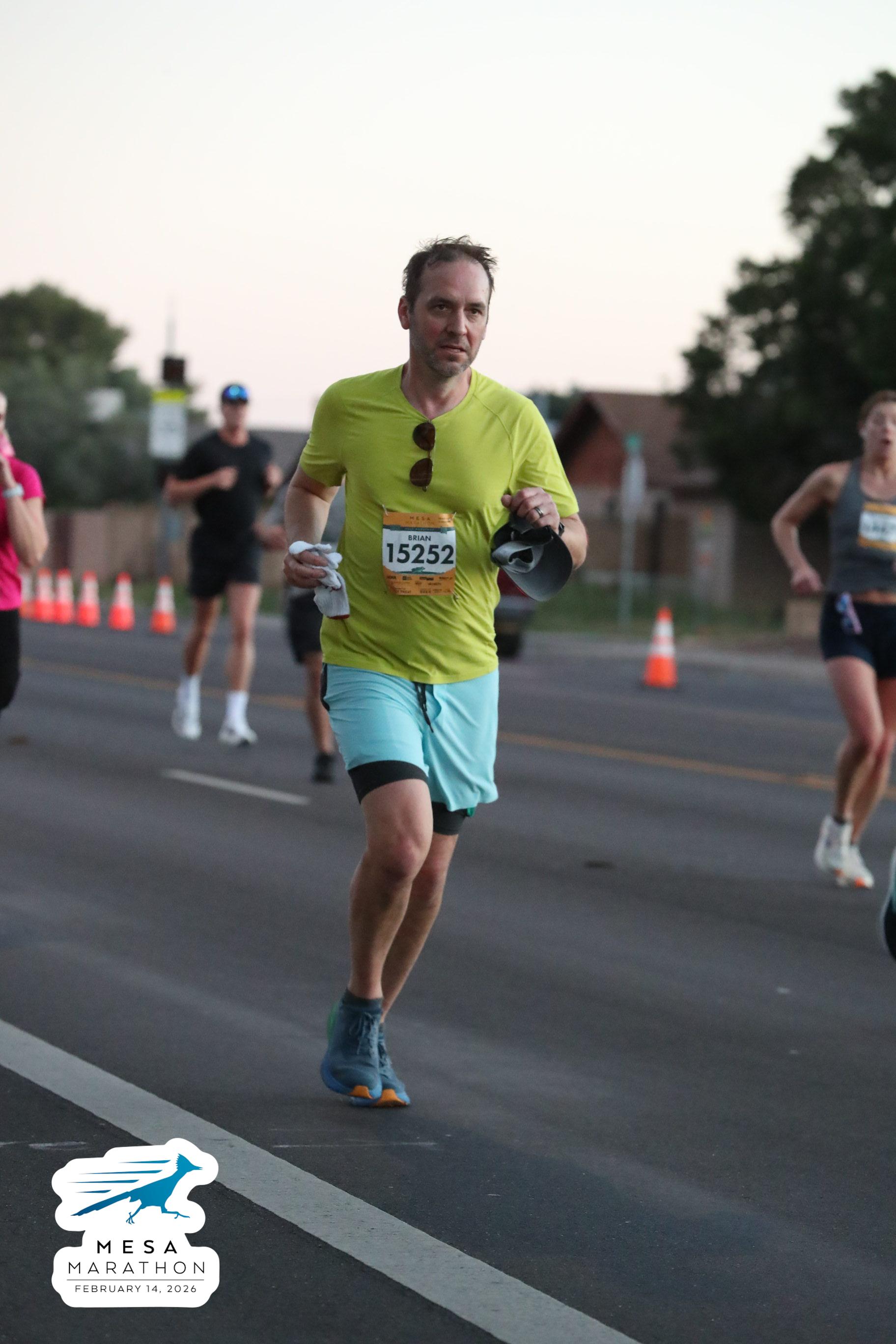 Date: Feb. 14, 2026 Participant: Brian Engelmann #15252 Race: 2026 Mesa Half Marathon Distance: 13.1 miles