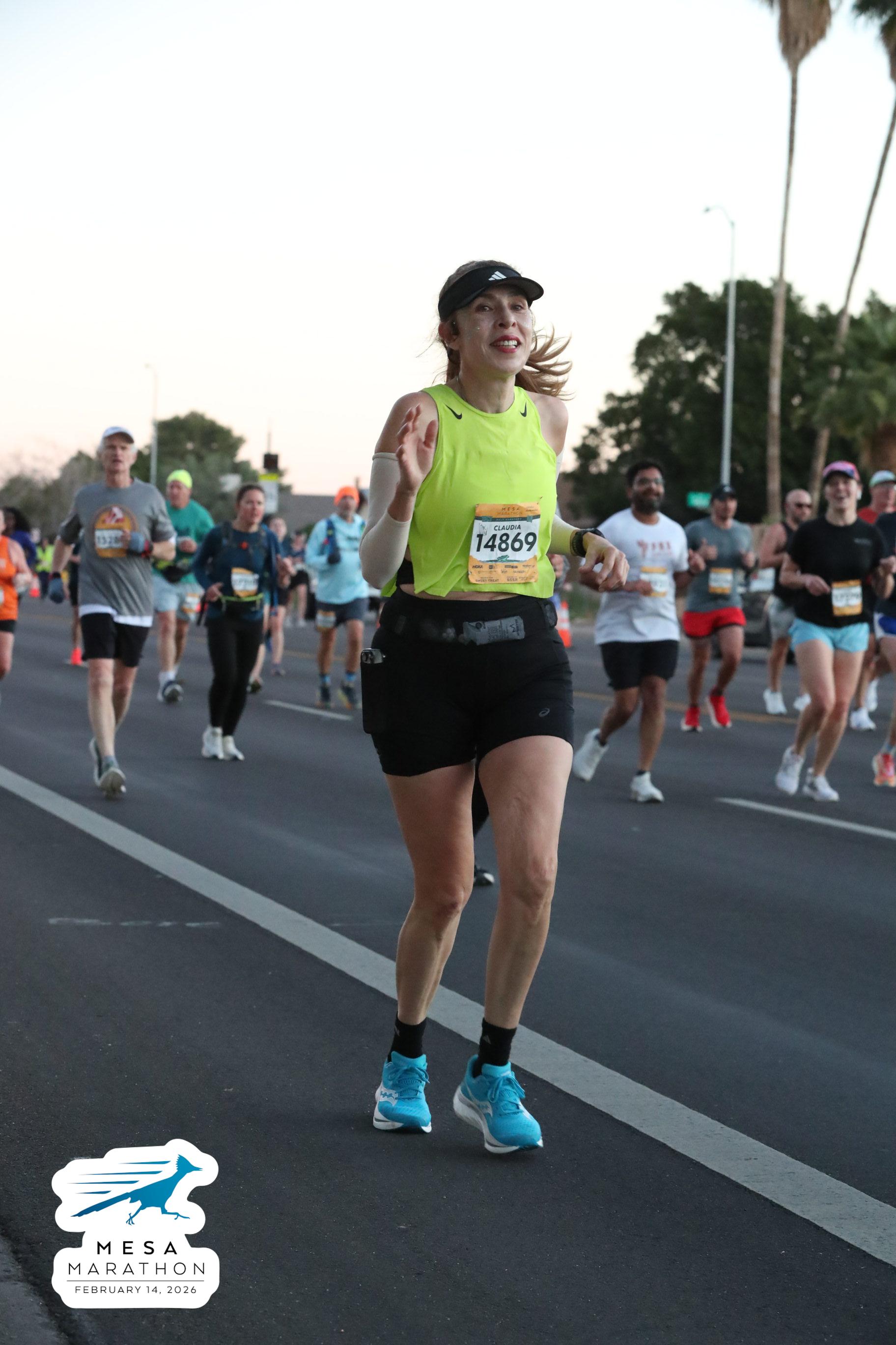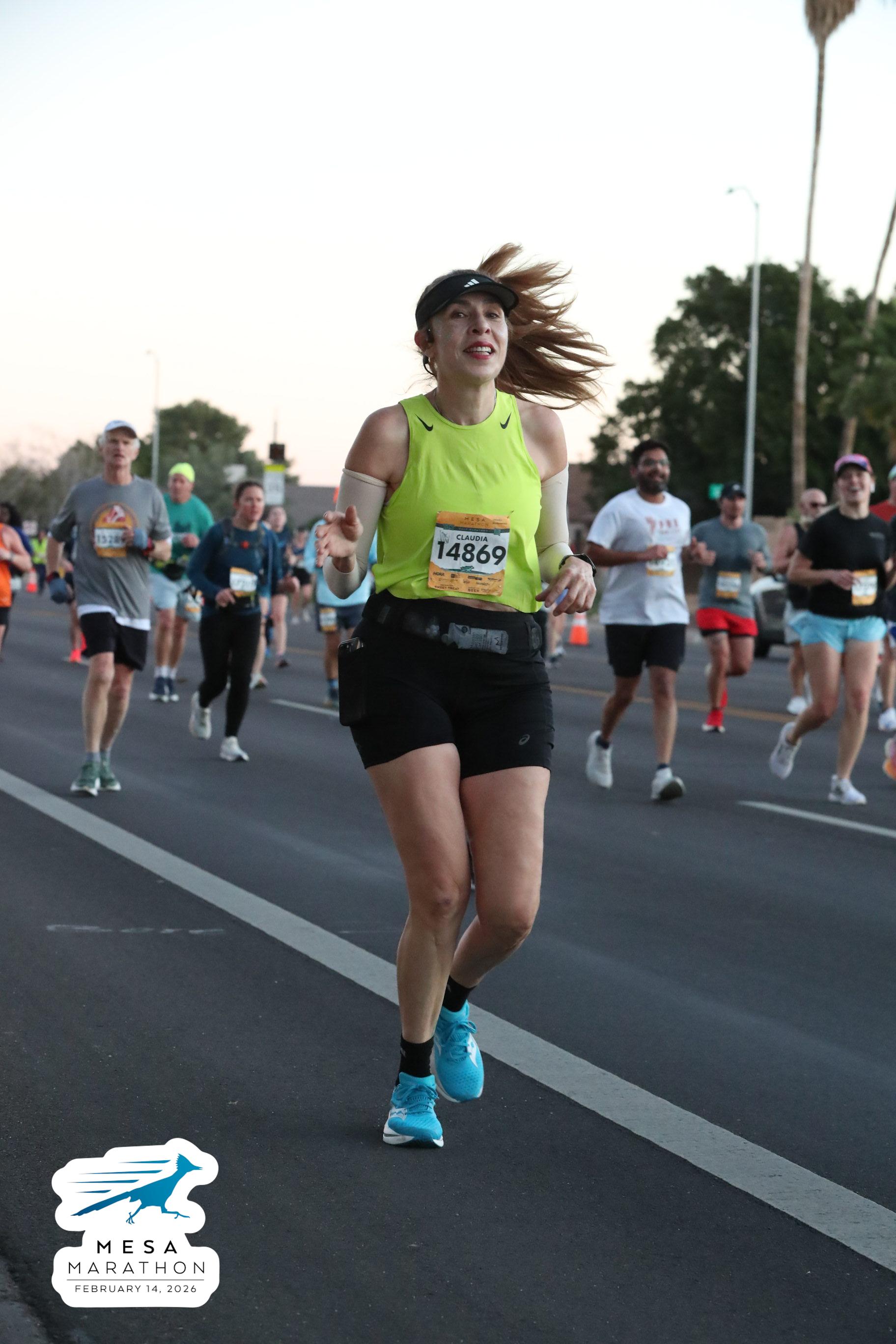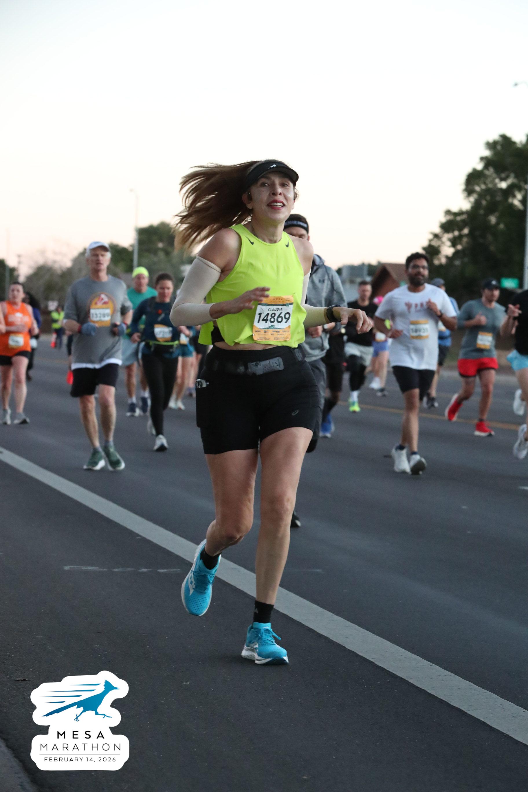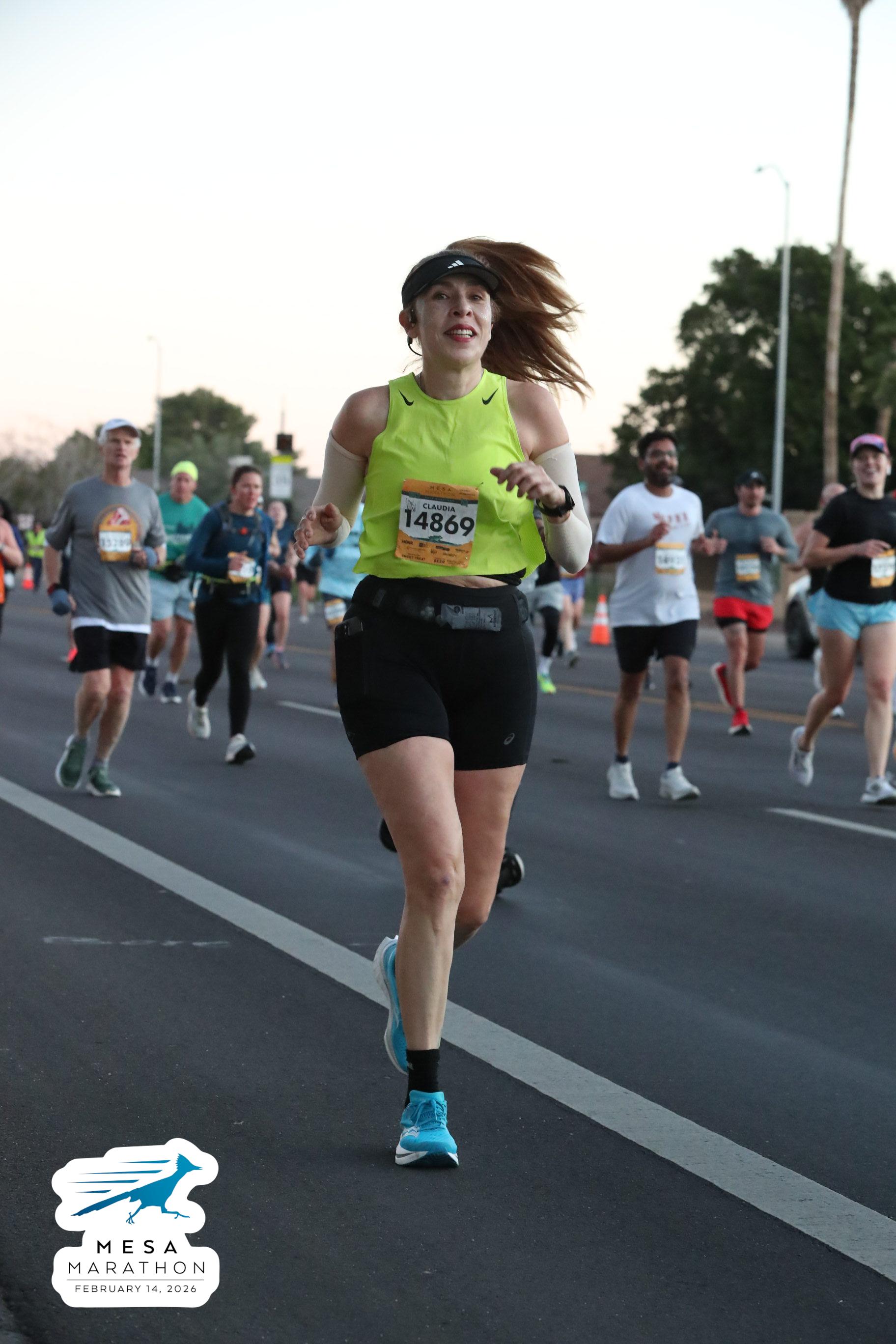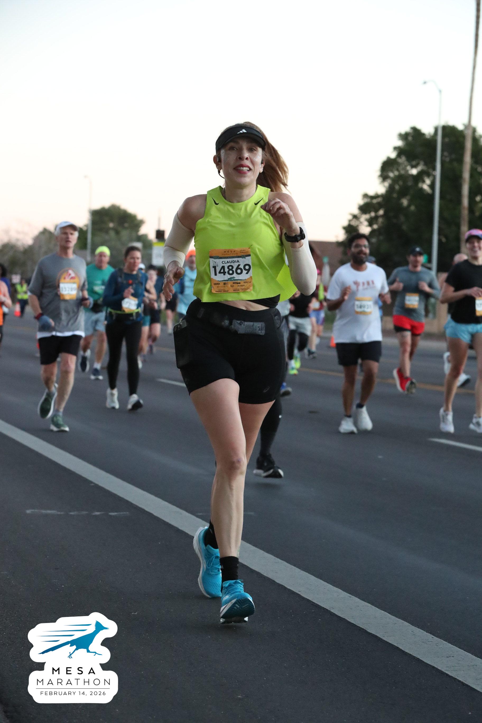 Date: Feb. 14, 2026 Participant: Claudia Carrizosa #14869 Race: 2026 Mesa Half Marathon Distance: 13.1 miles