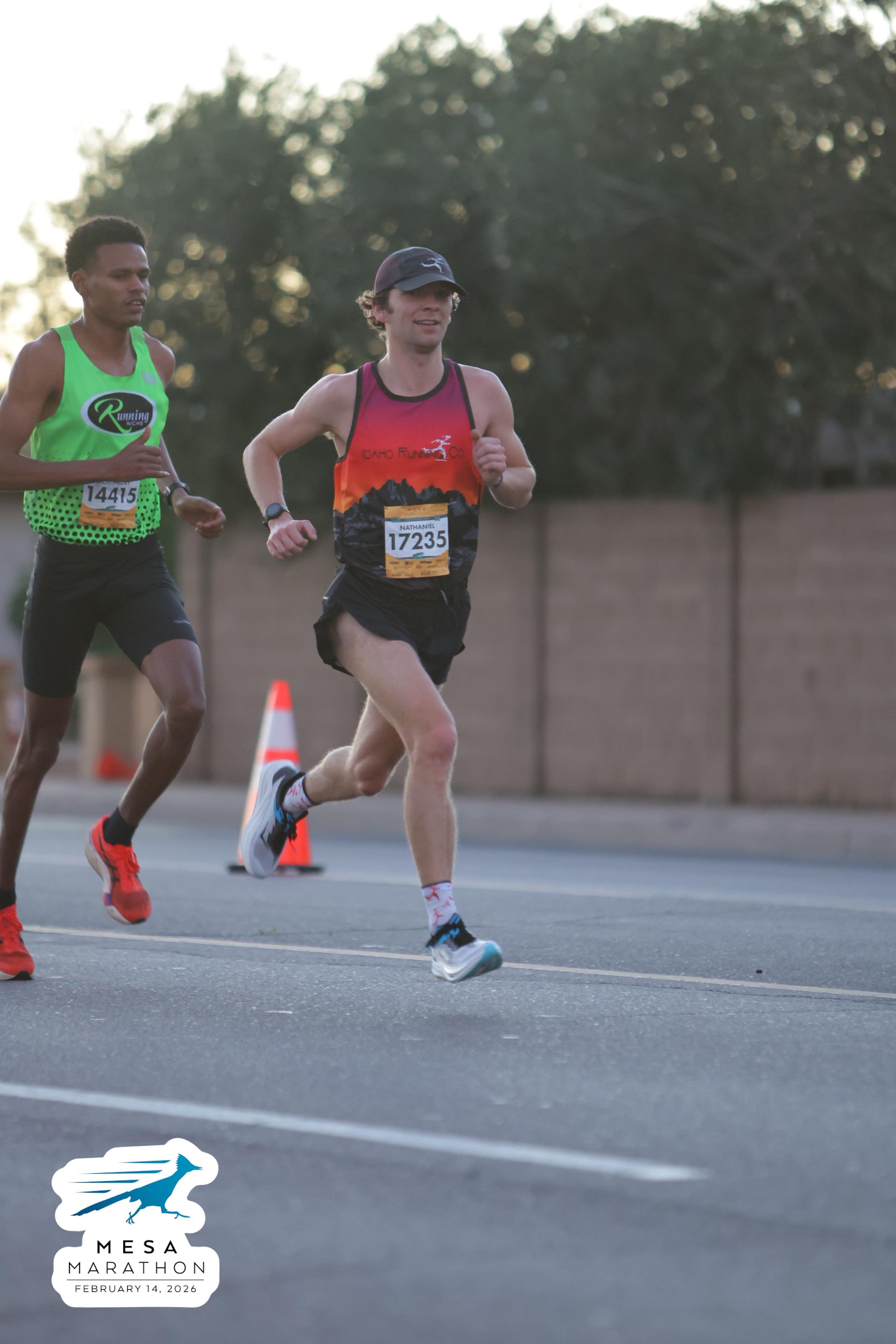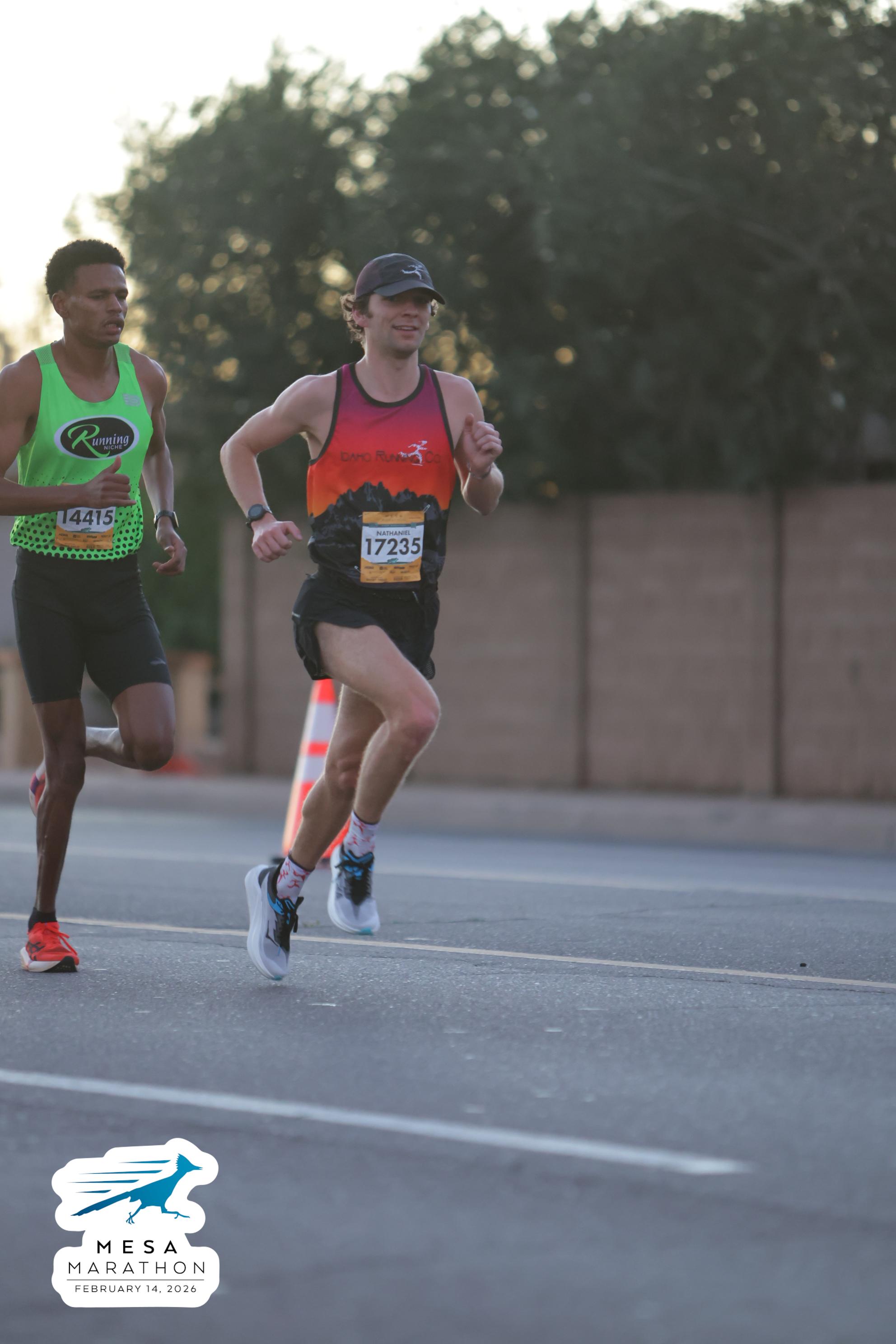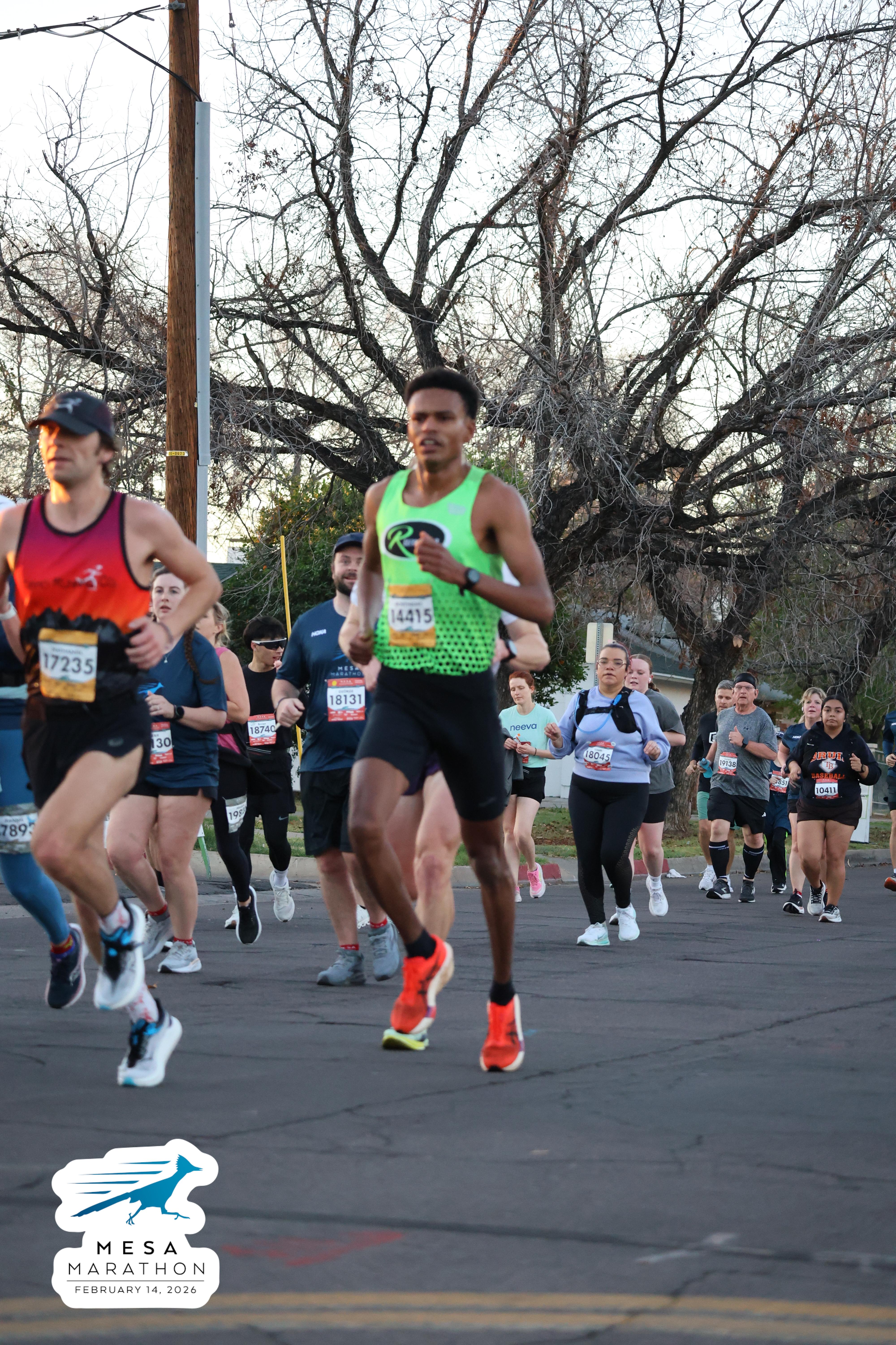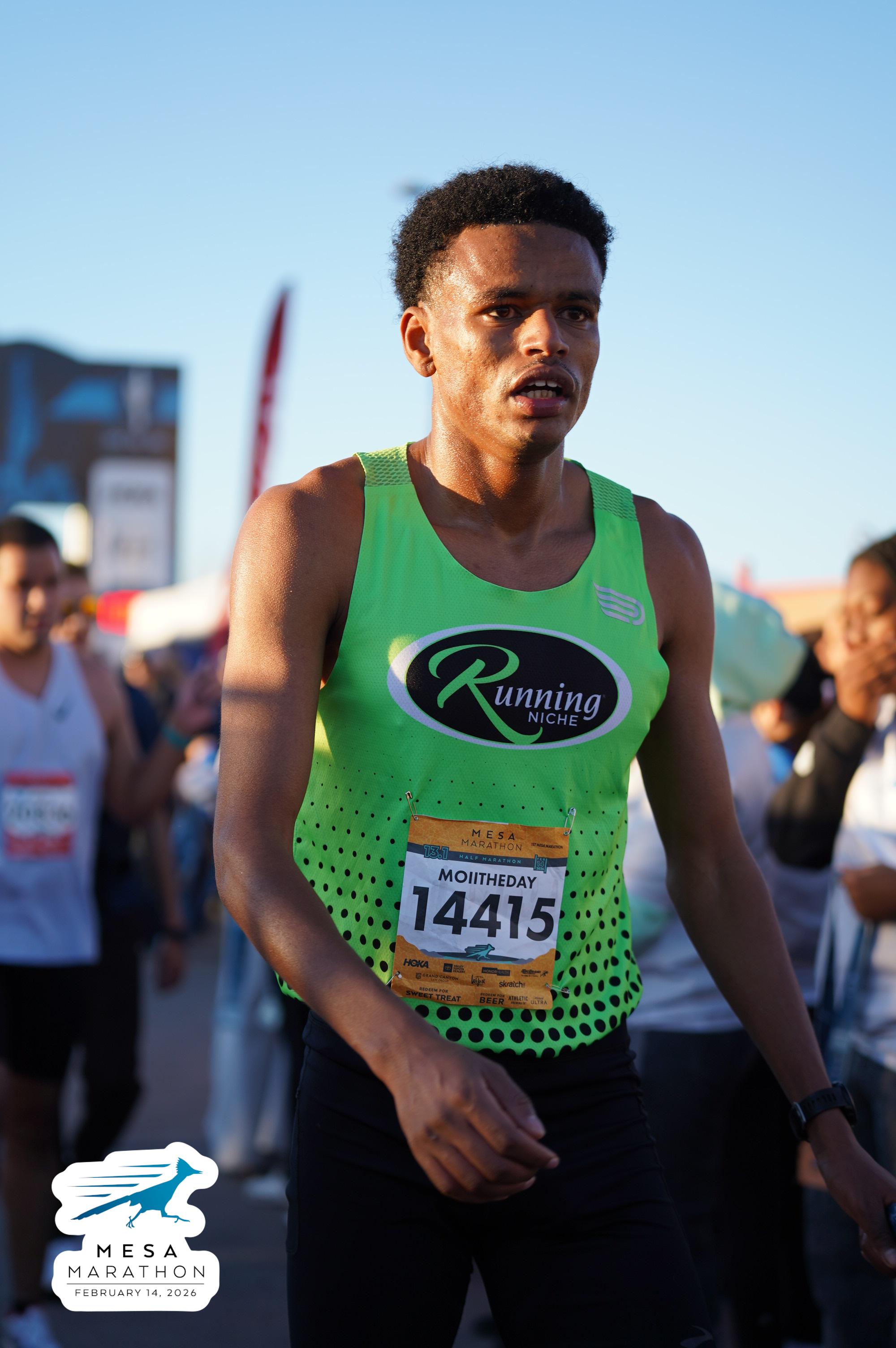 Date: Feb. 14, 2026 Participant: Firaol Ahmed #14415 Race: 2026 Mesa Half Marathon Distance: 13.1 miles
