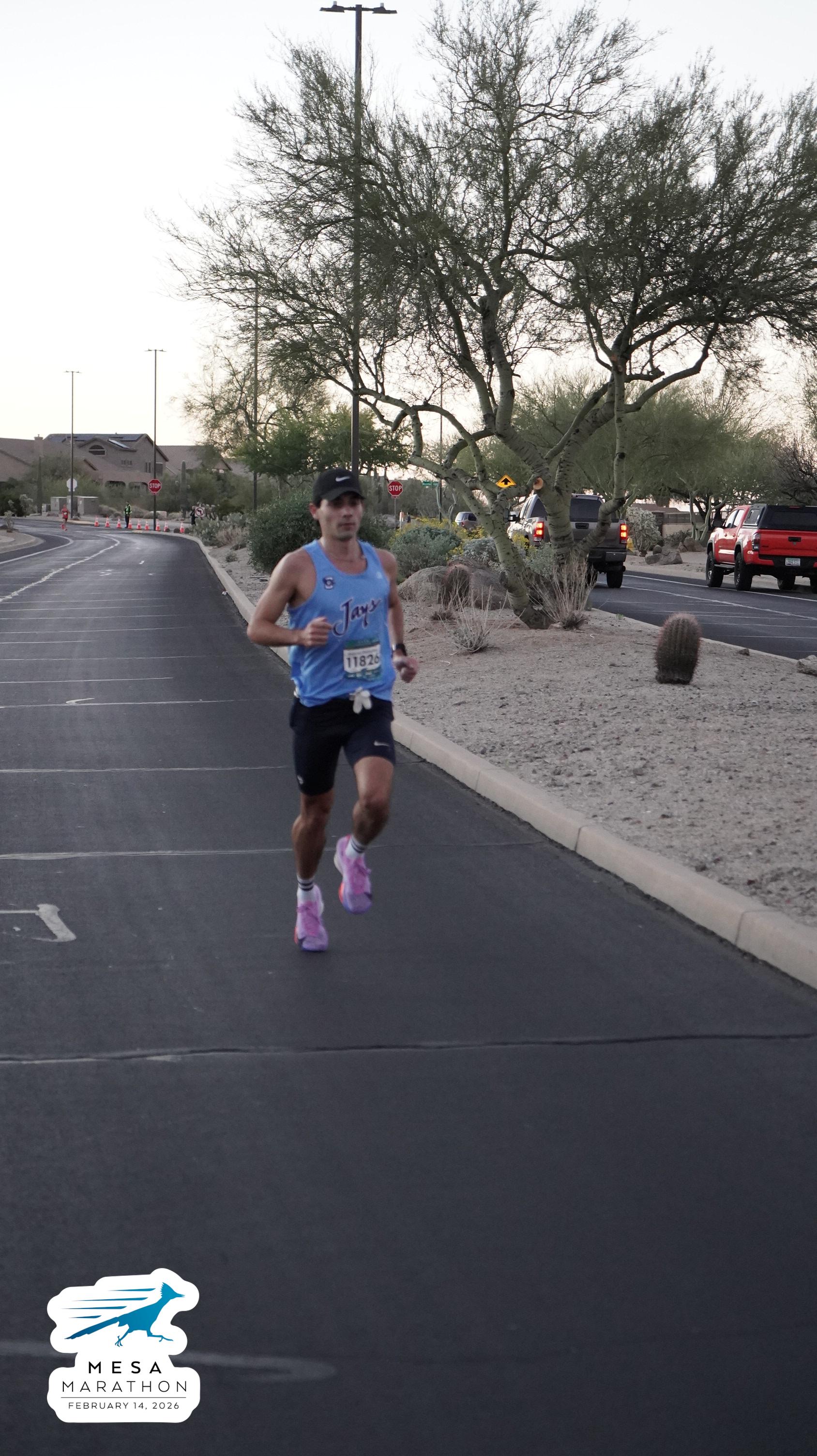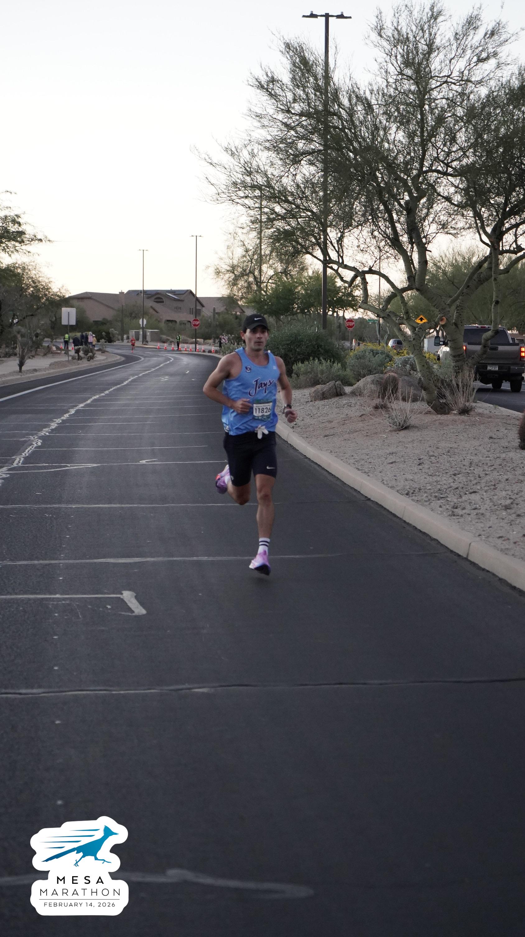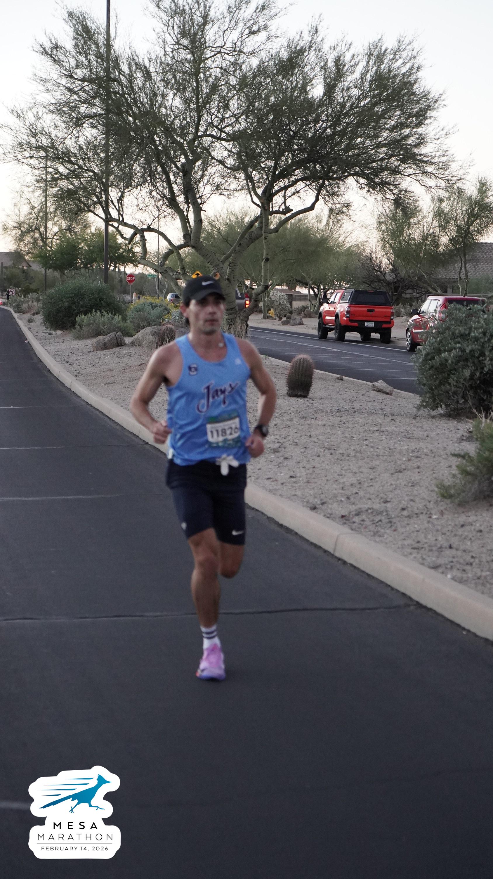 Date: Feb. 14, 2026 Participant: Marcos Gonzalez #11826 Race: 2026 Mesa Marathon Distance: 26.2 miles