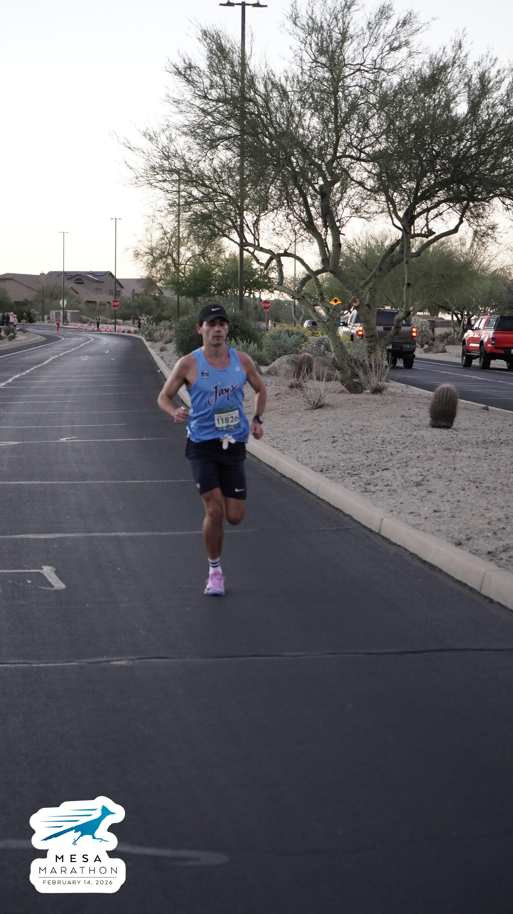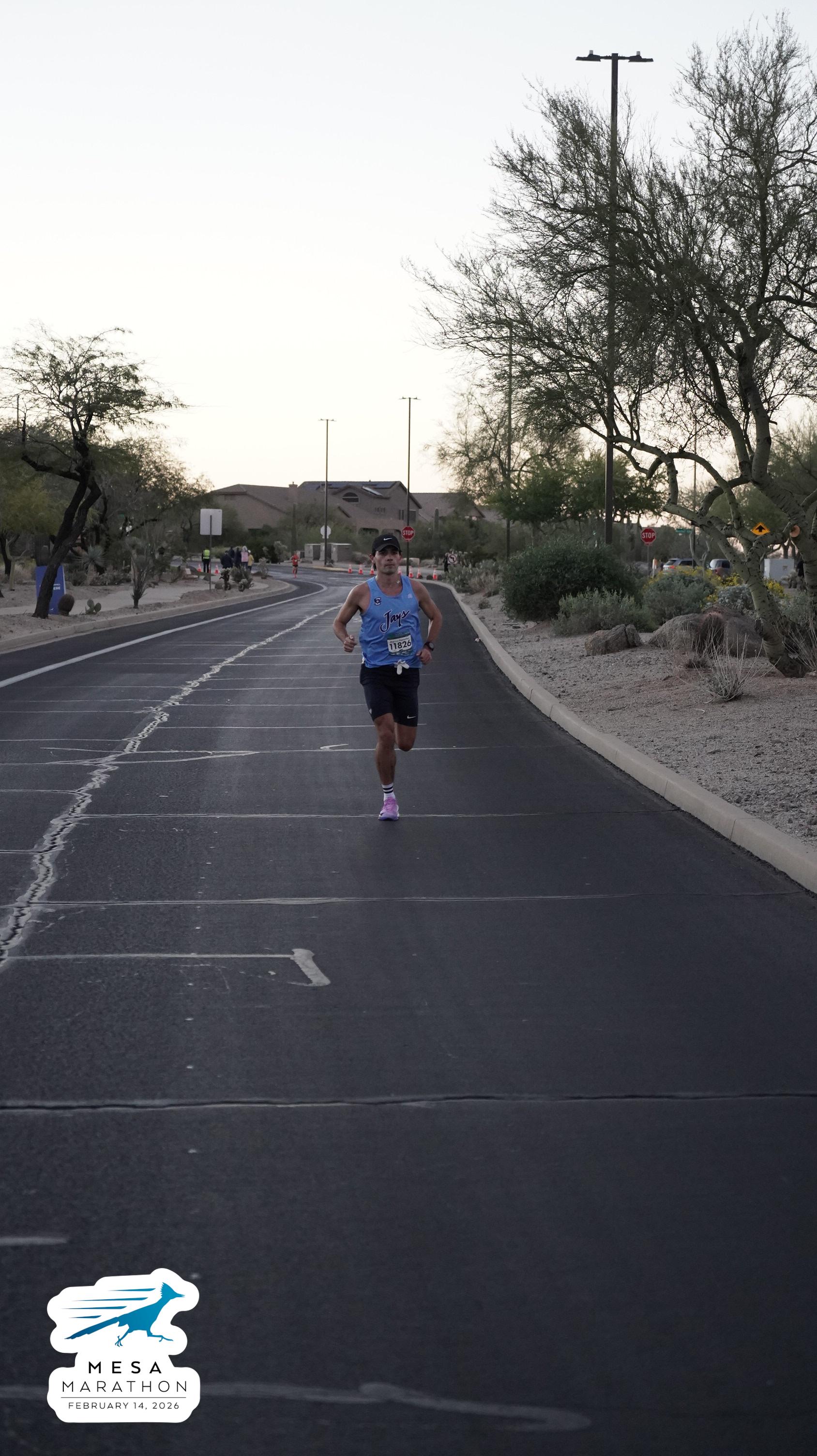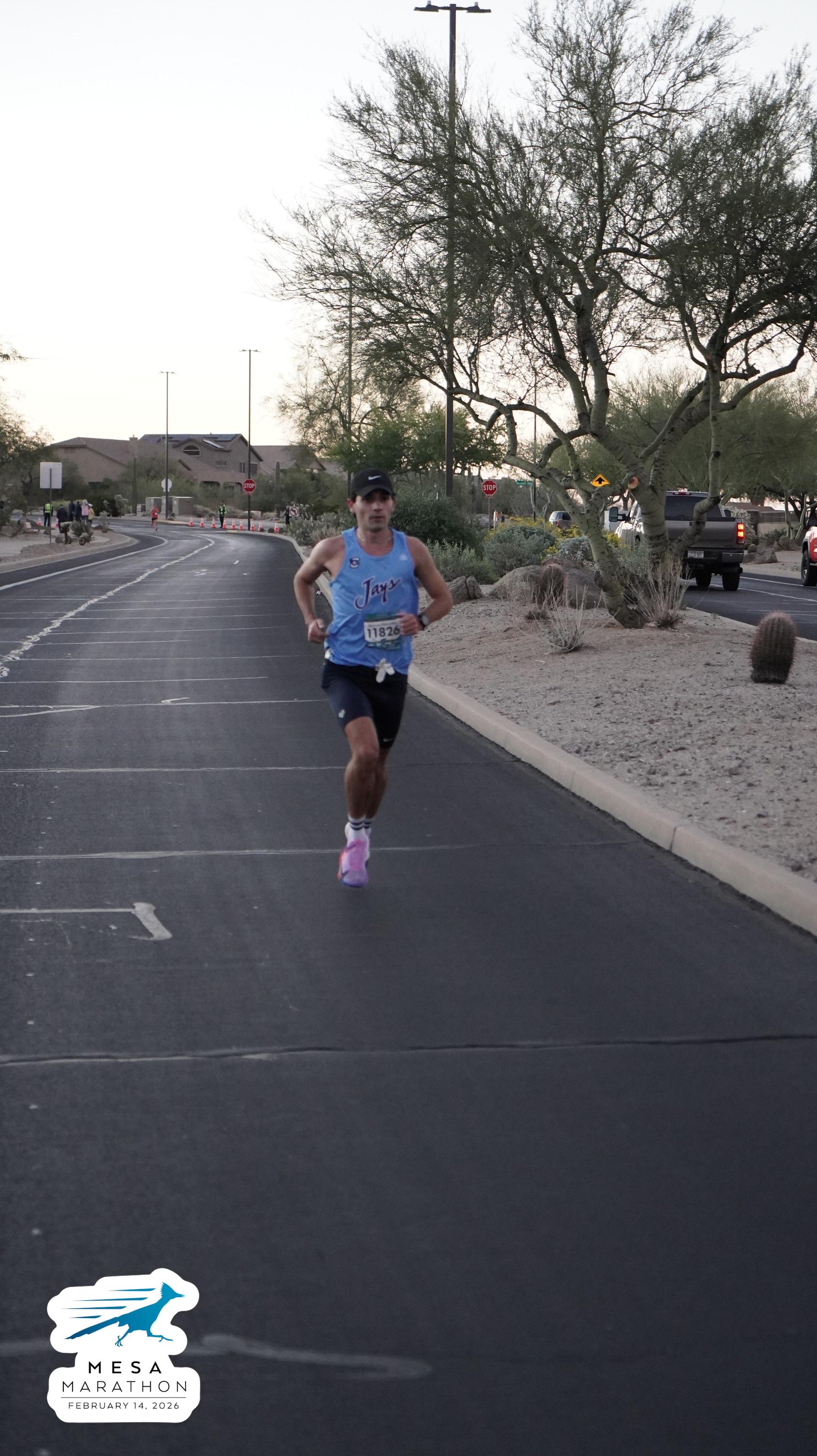 Date: Feb. 14, 2026 Participant: Marcos Gonzalez #11826 Race: 2026 Mesa Marathon Distance: 26.2 miles