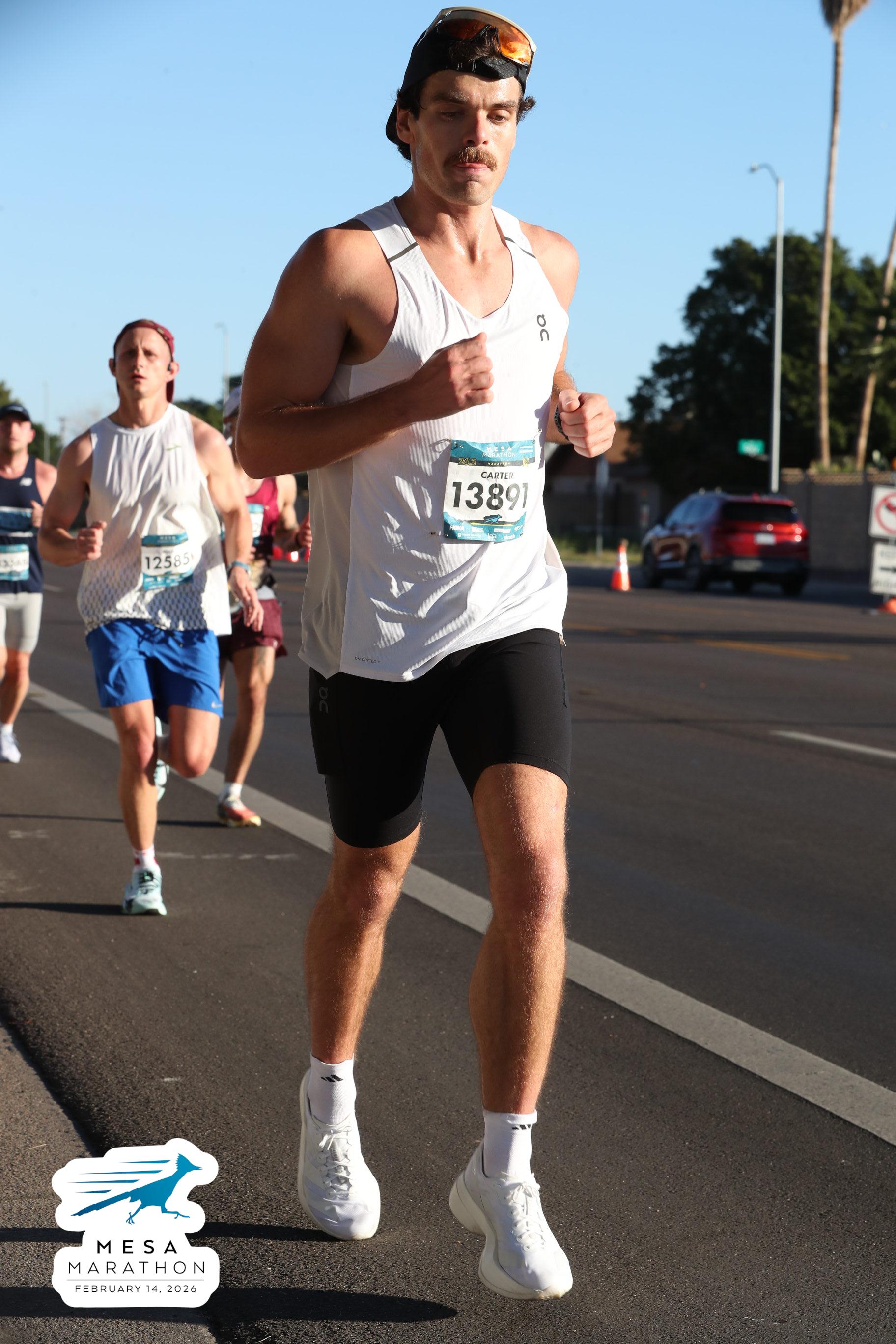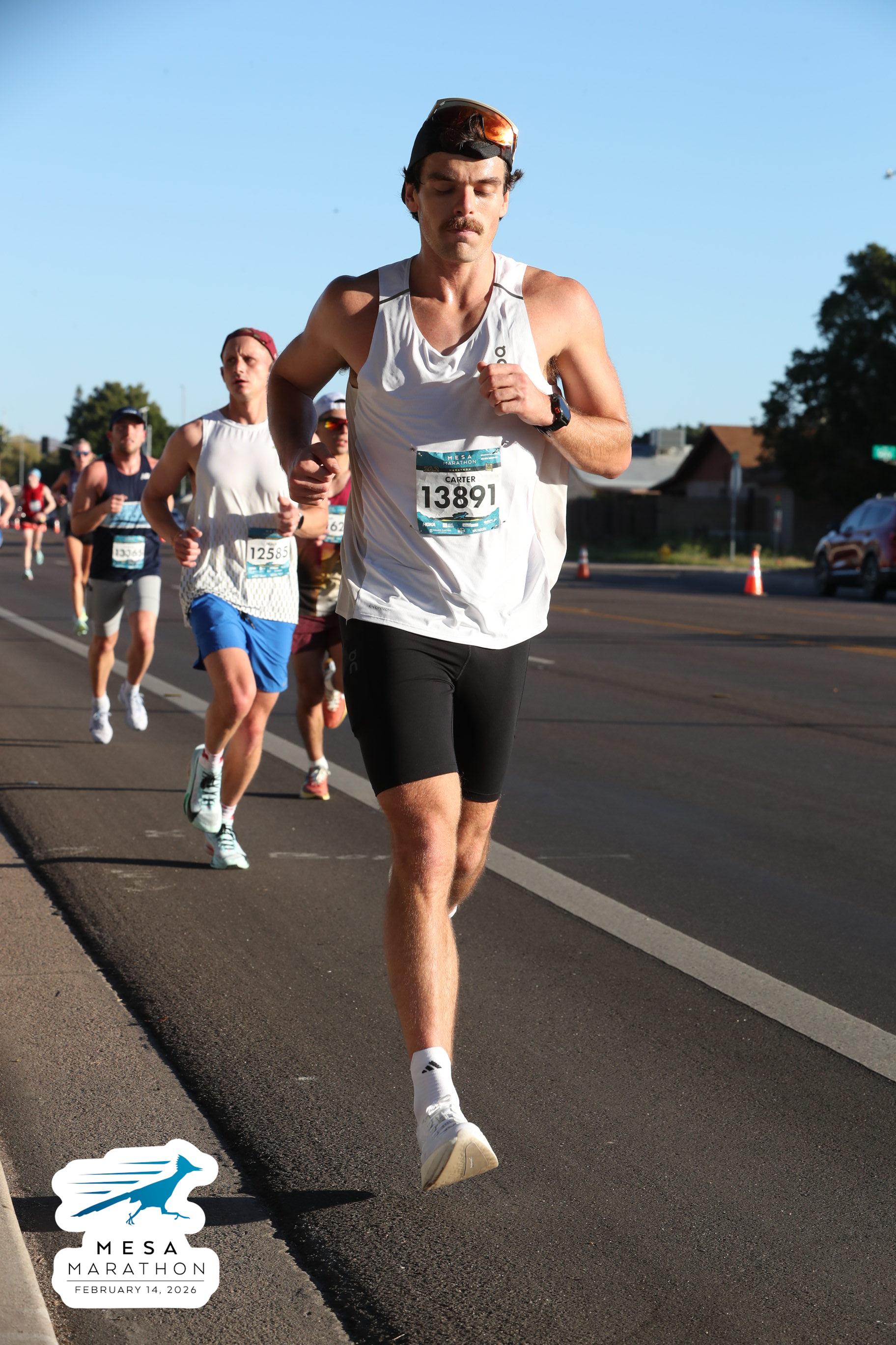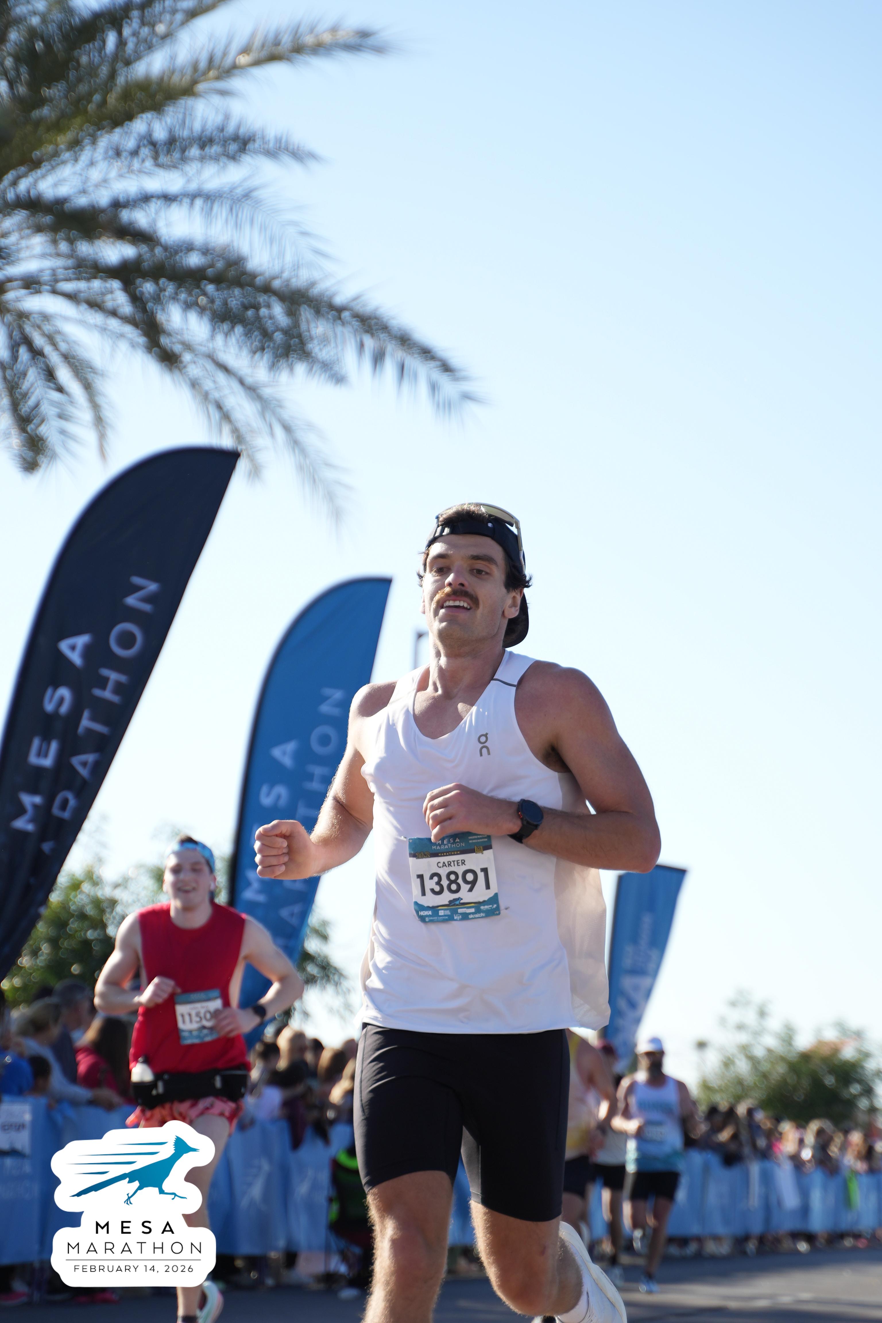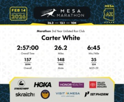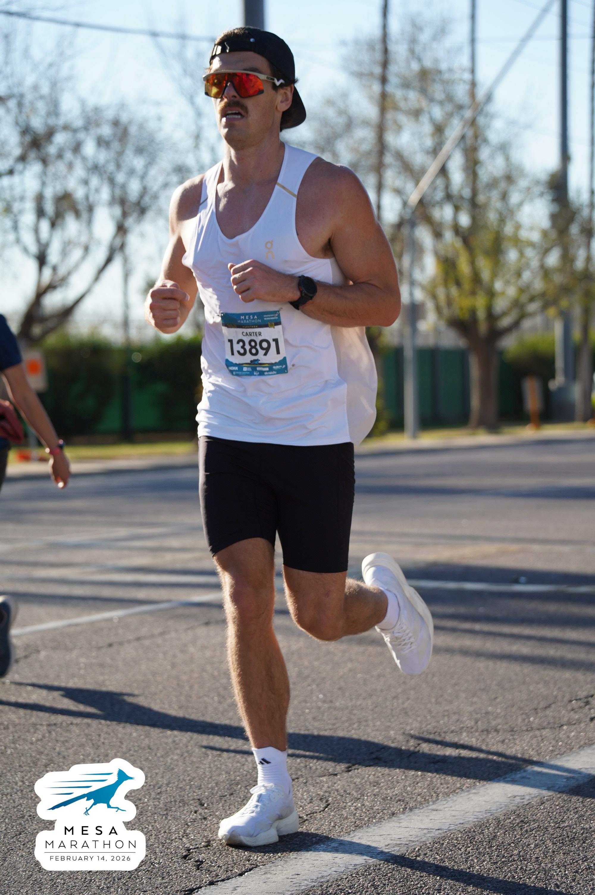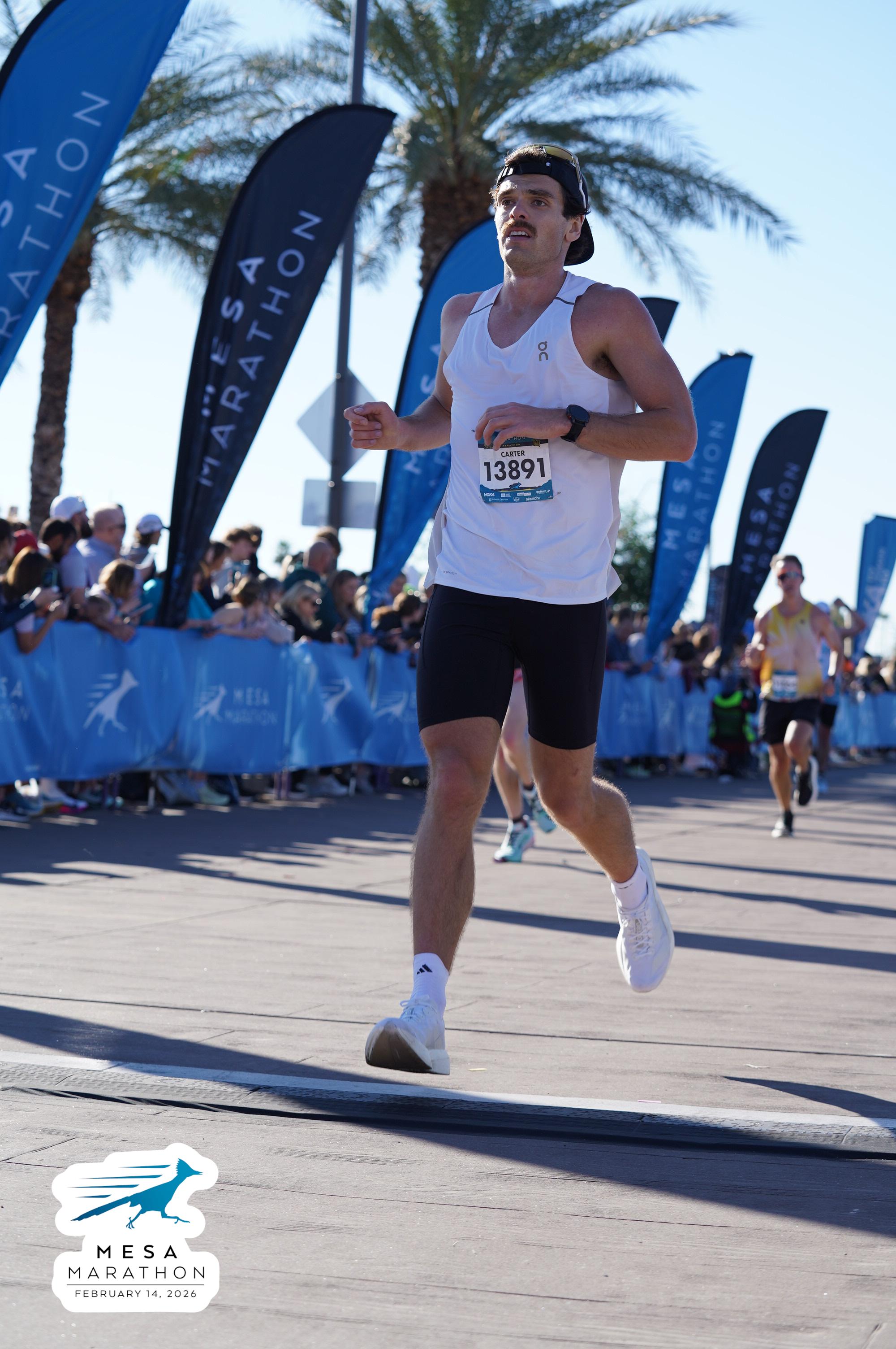 Date: Feb. 14, 2026 Participant: Carter White #13891 Race: 2026 Mesa Marathon Distance: 26.2 miles