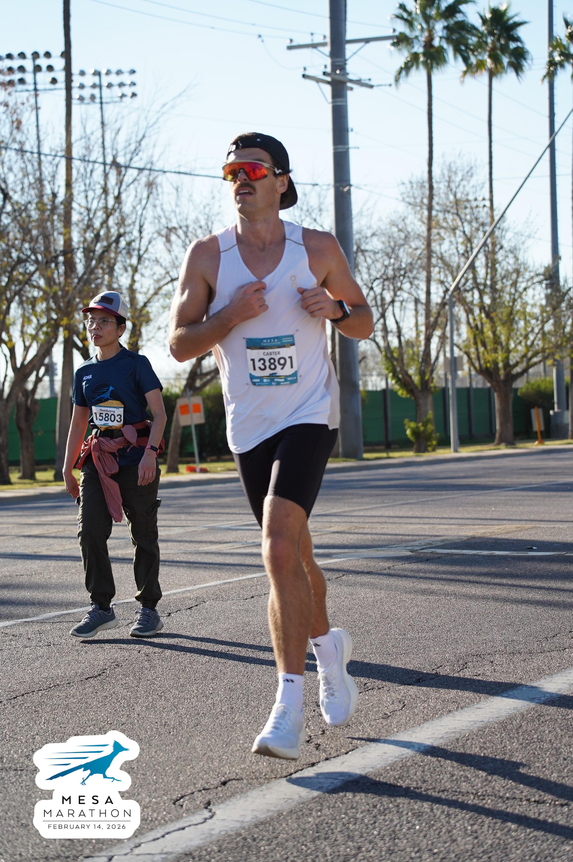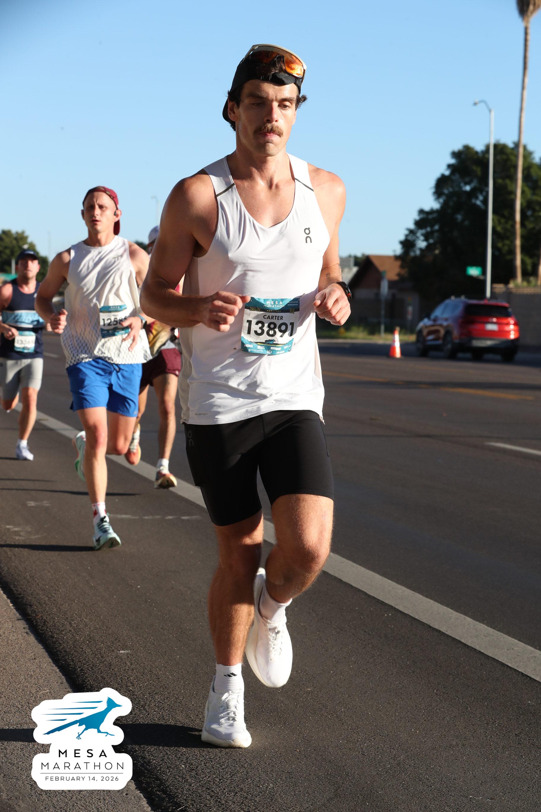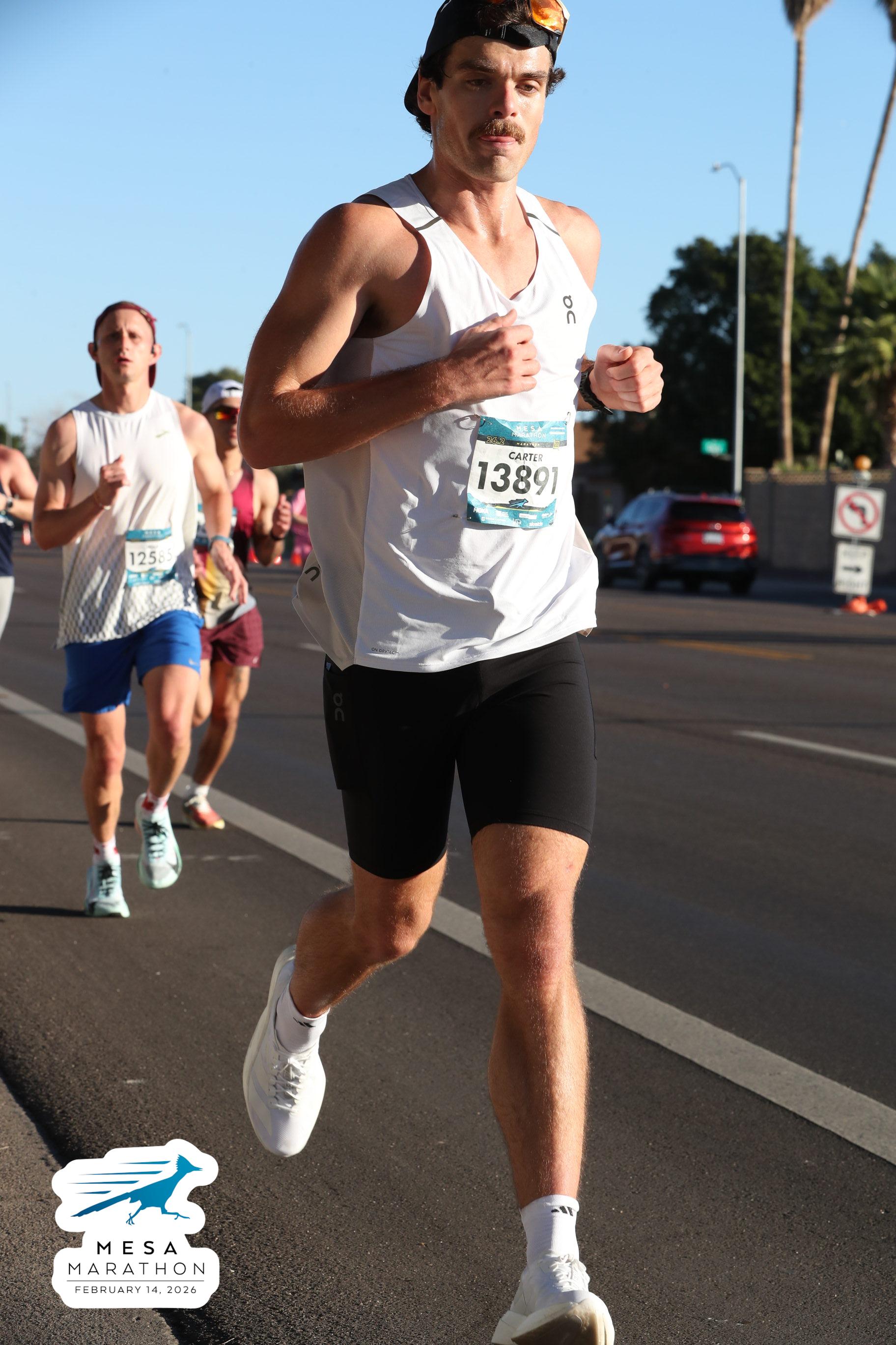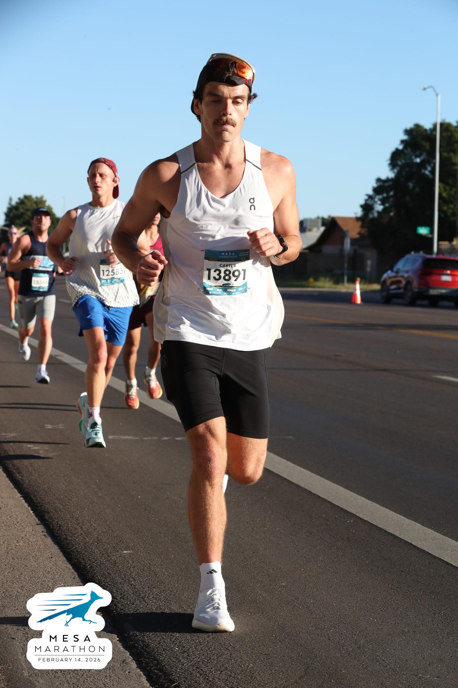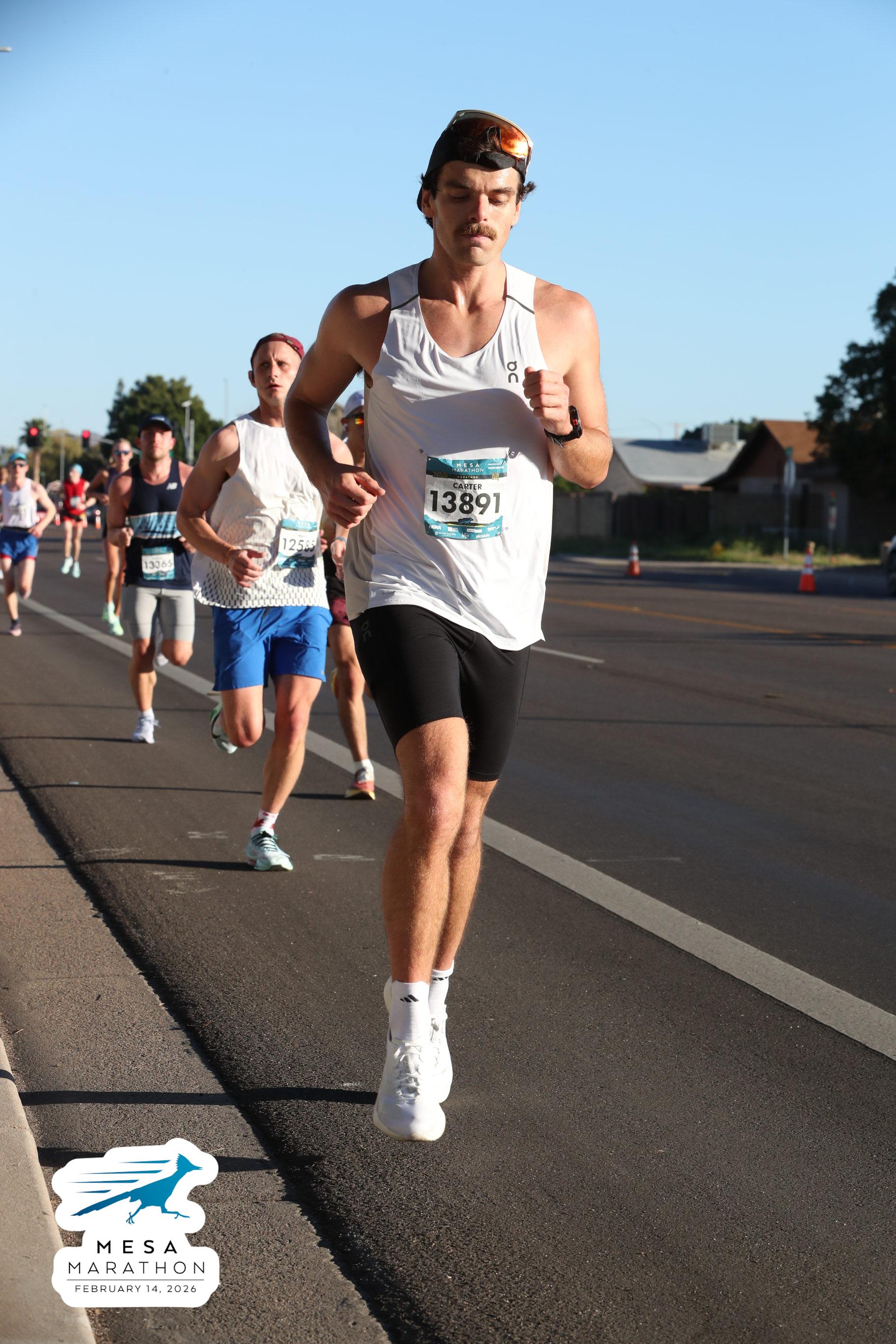 Date: Feb. 14, 2026 Participant: Carter White #13891 Race: 2026 Mesa Marathon Distance: 26.2 miles