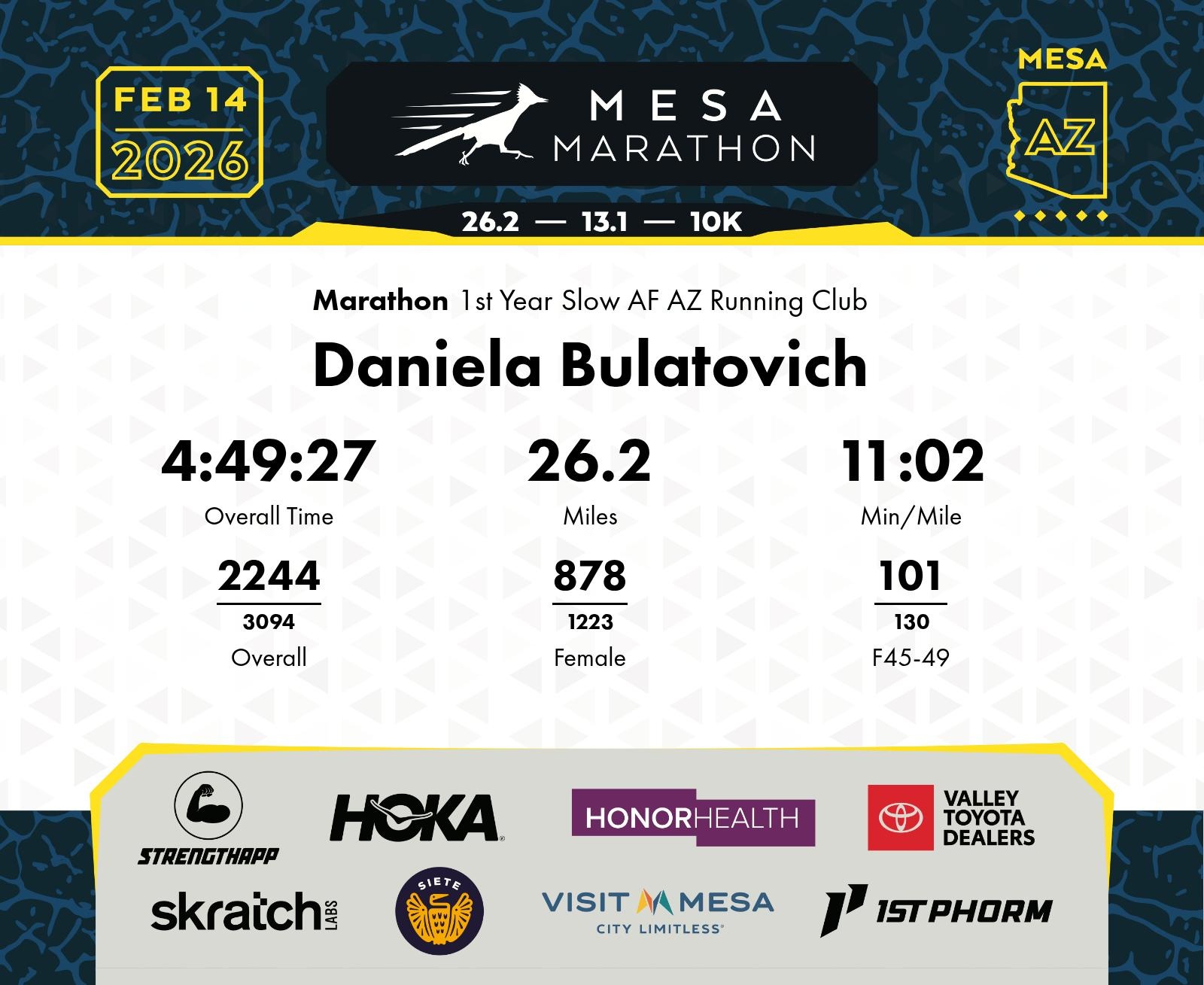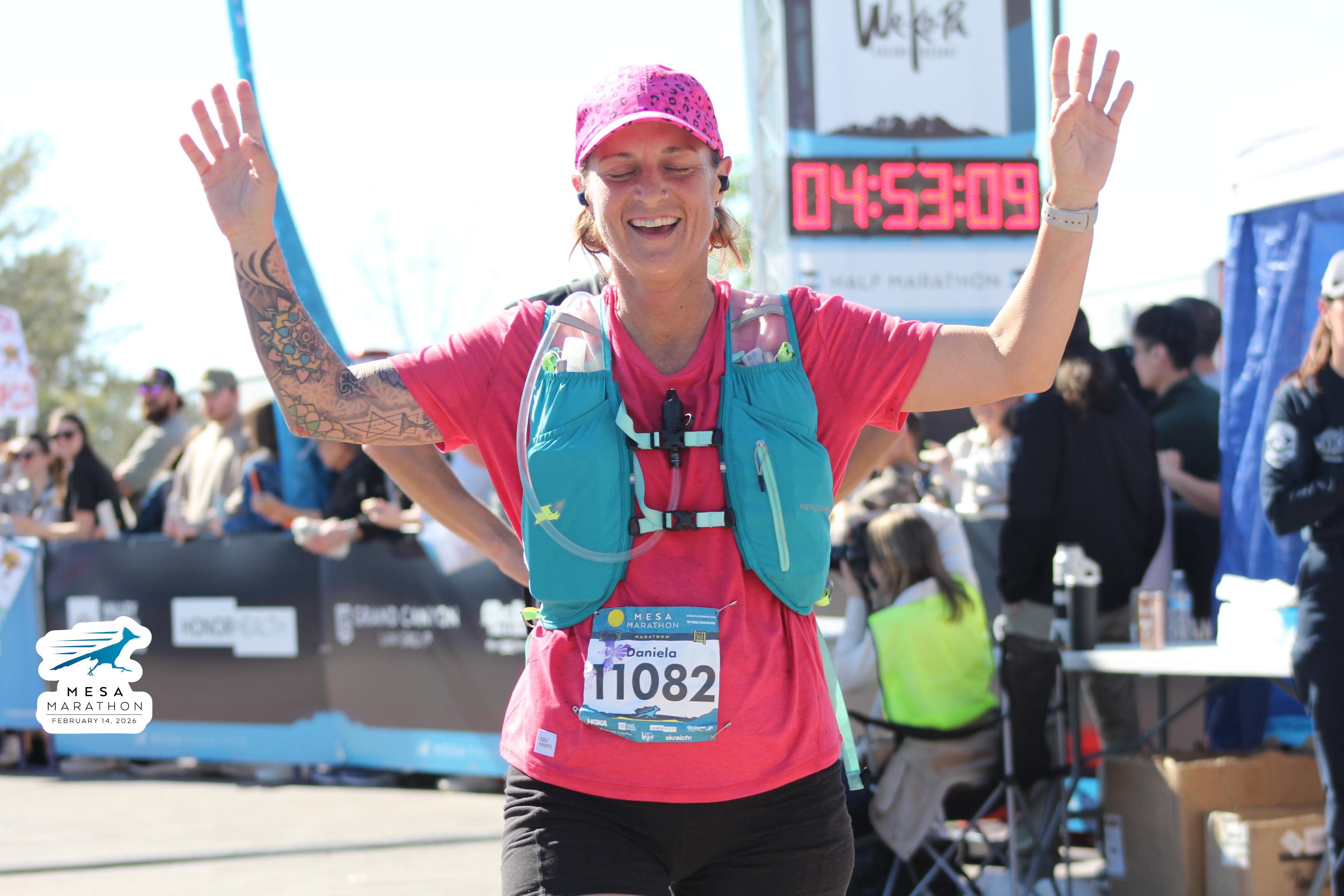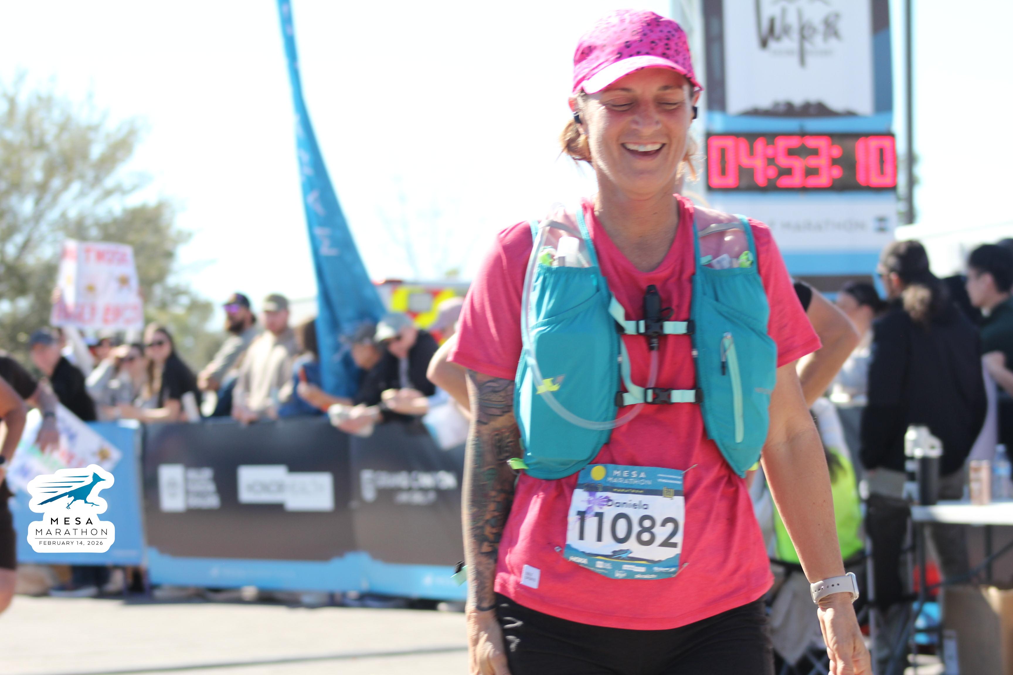 Date: Feb. 14, 2026 Participant: Daniela Bulatovich #11082 Race: 2026 Mesa Marathon Distance: 26.2 miles