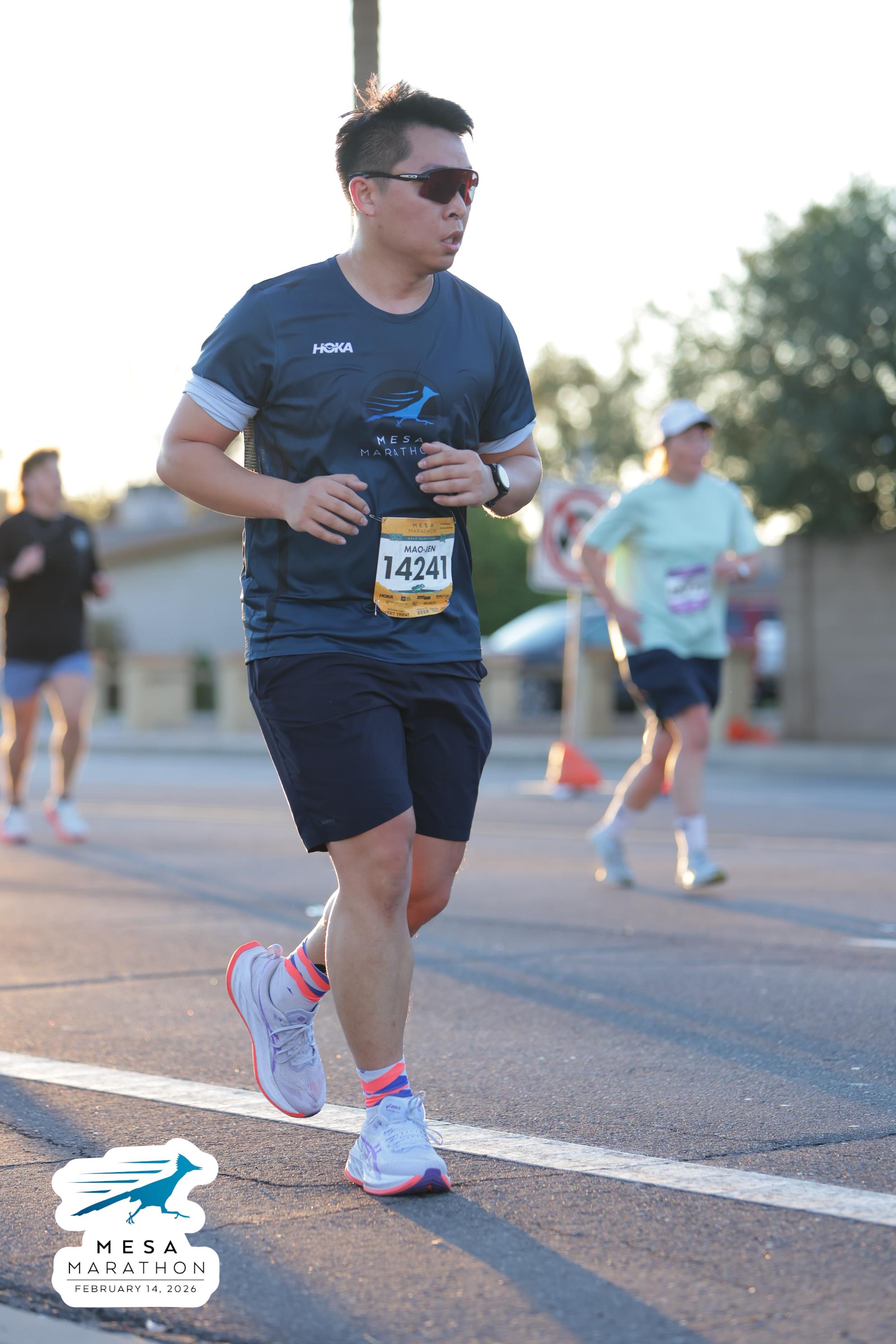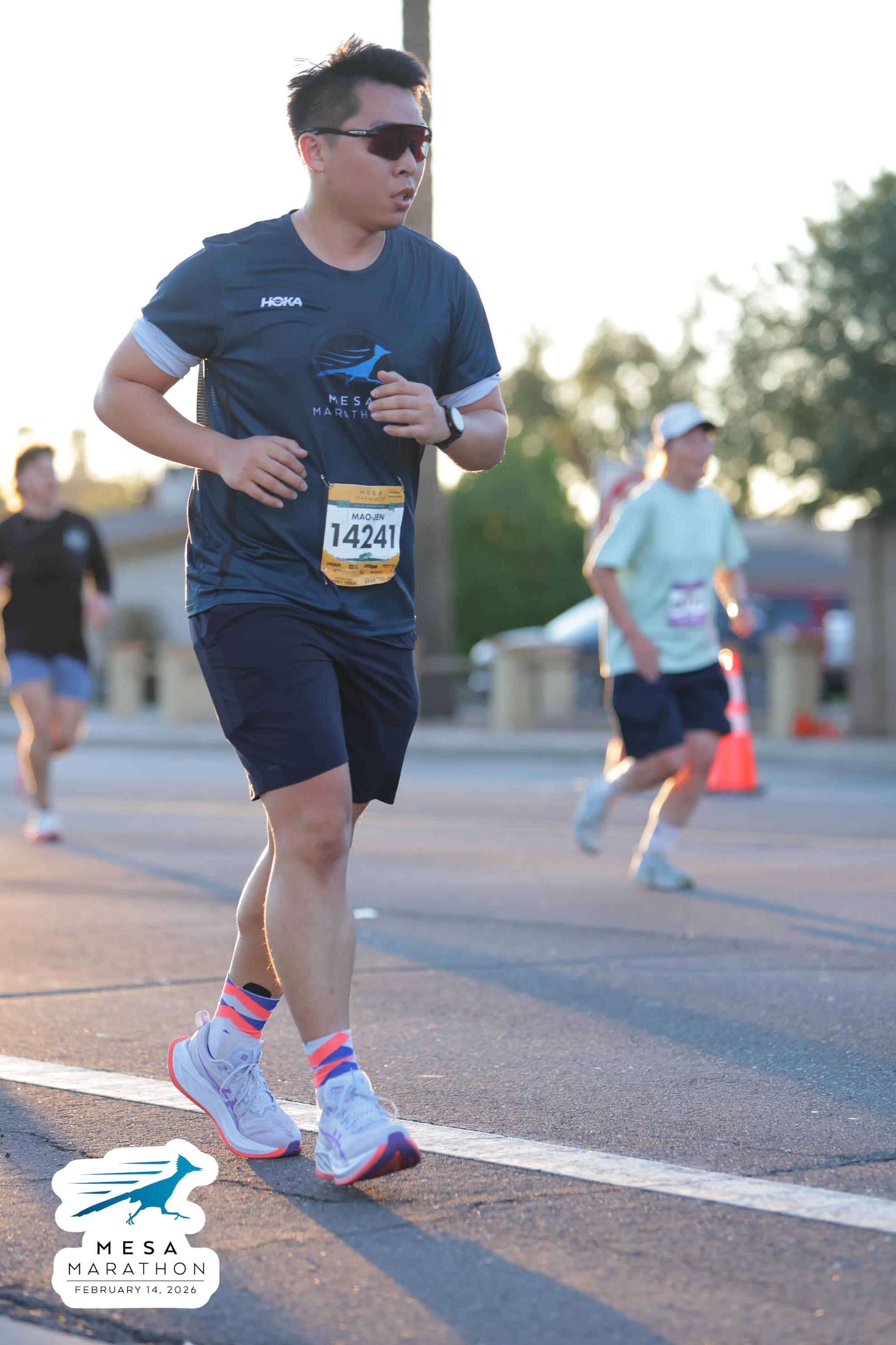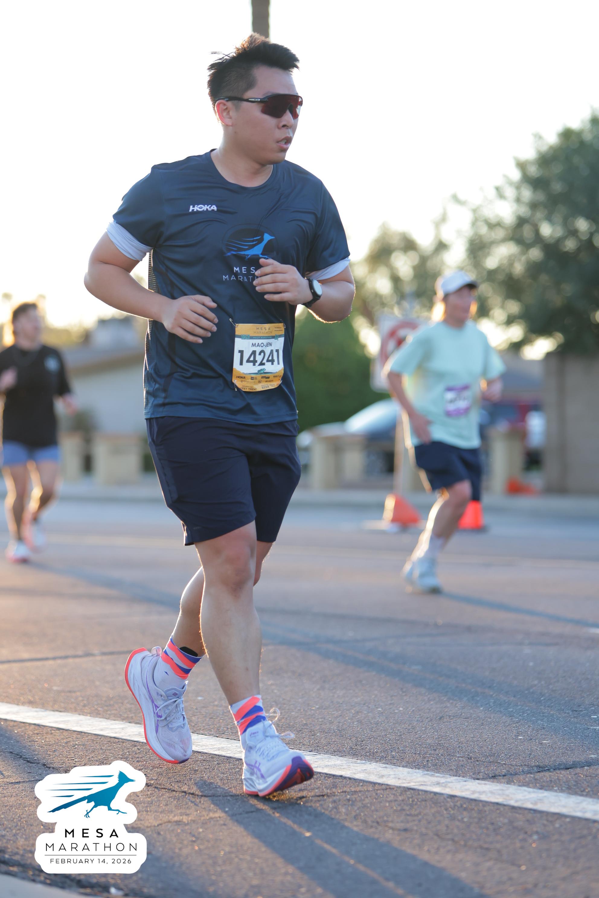 Date: Feb. 14, 2026 Participant: Mao-Jen Chung #14241 Race: 2026 Mesa Half Marathon Distance: 13.1 miles
