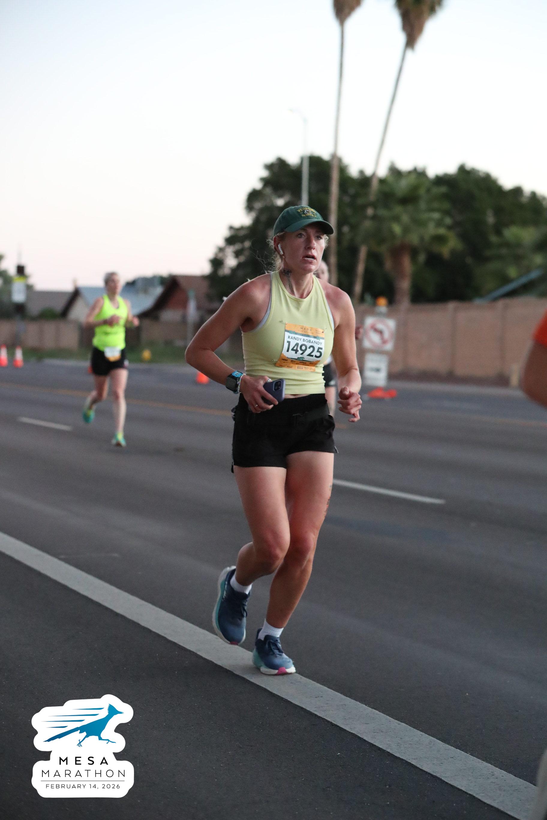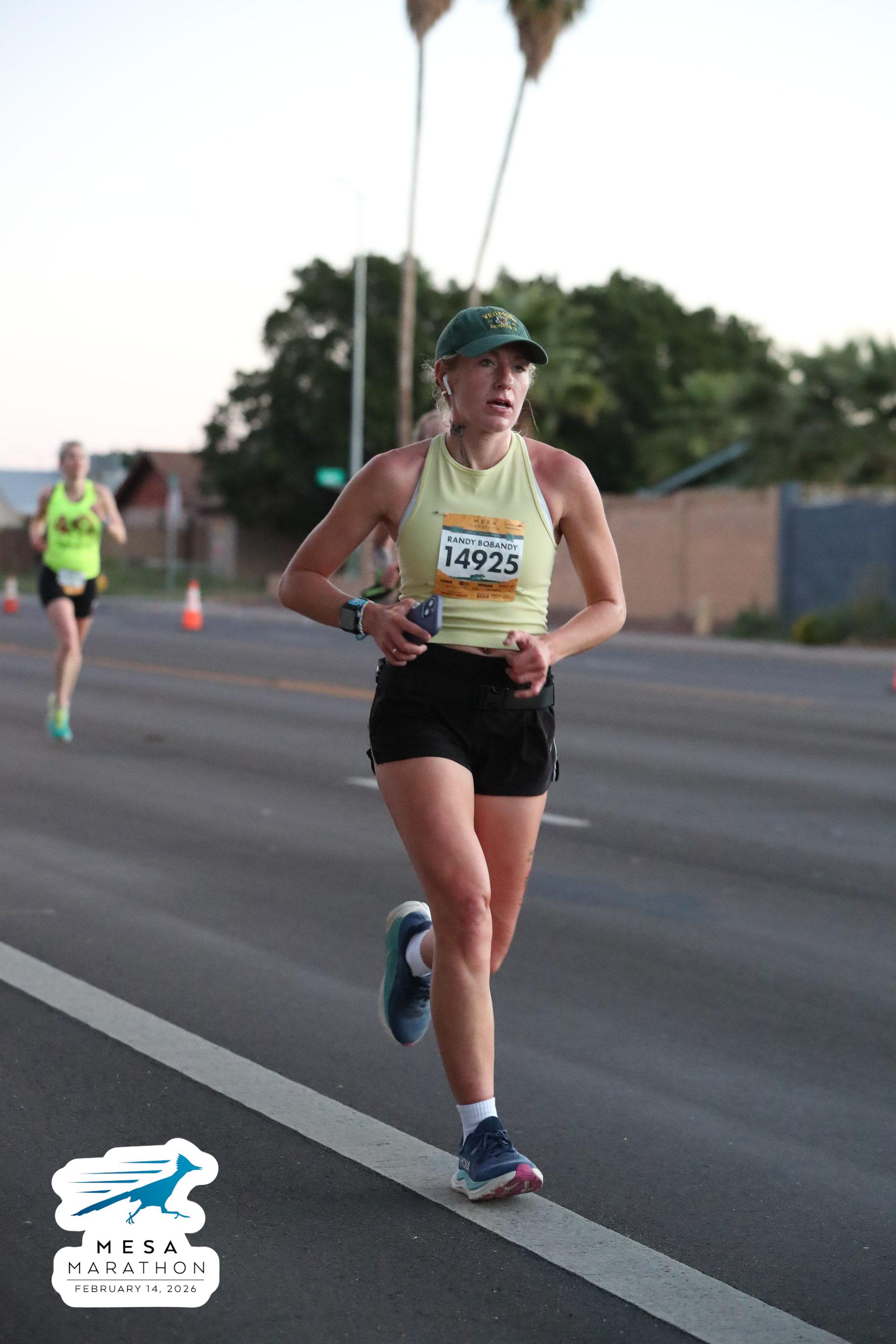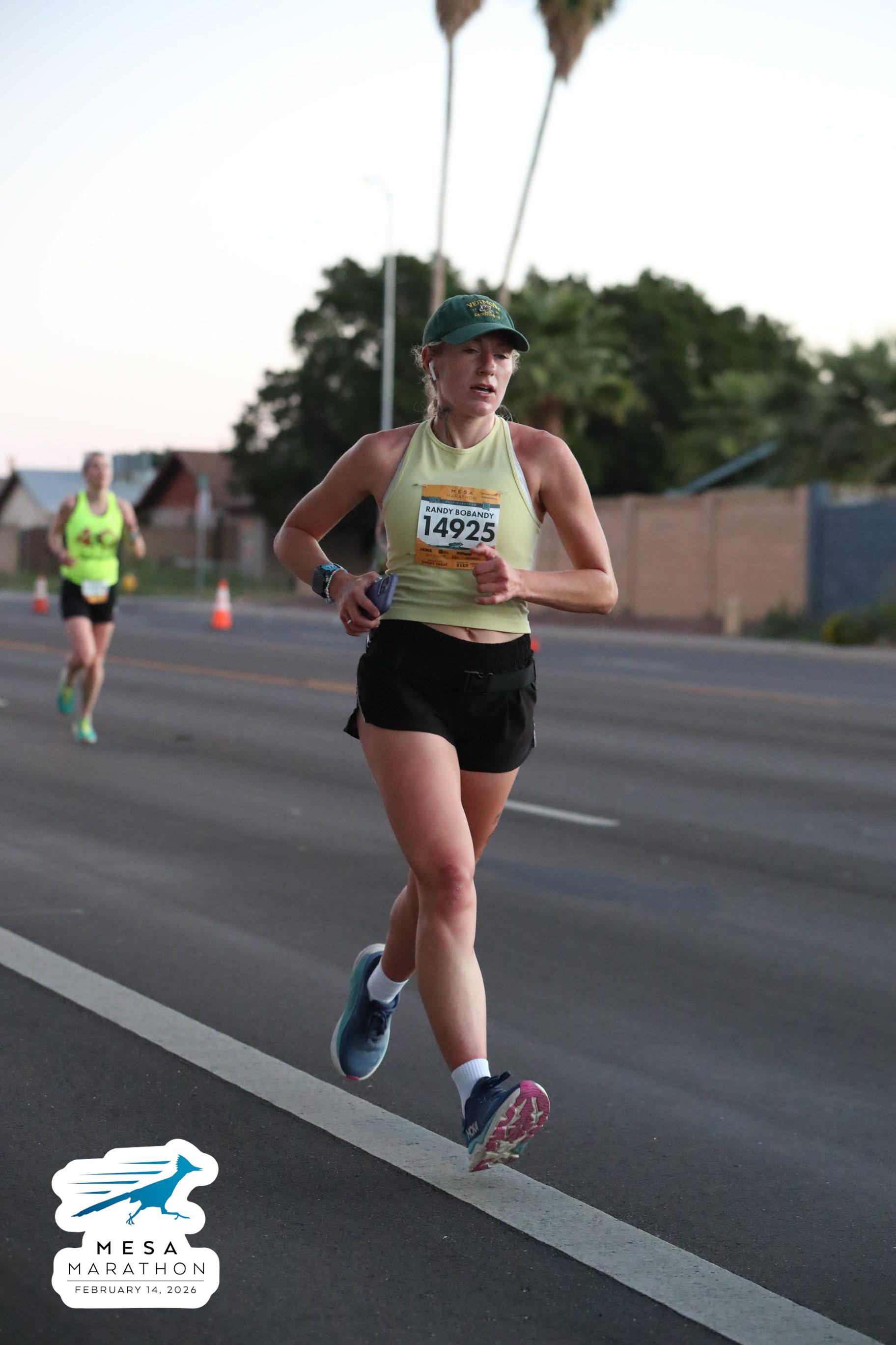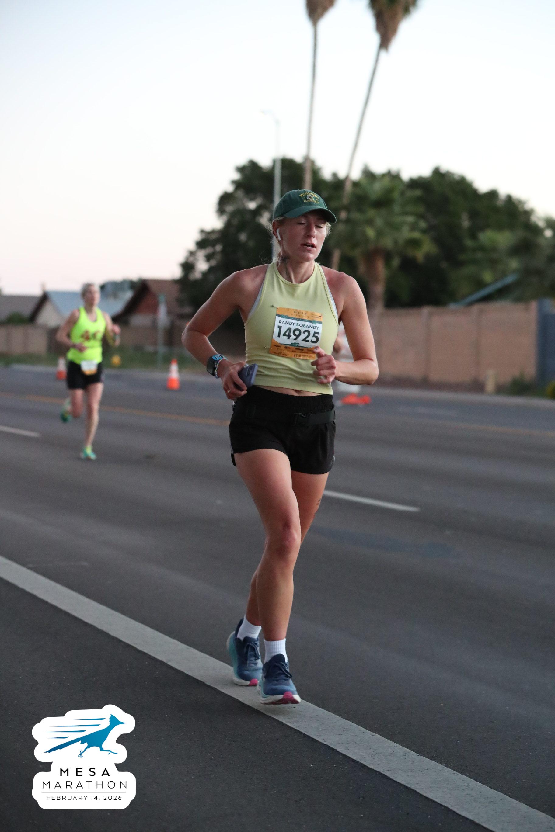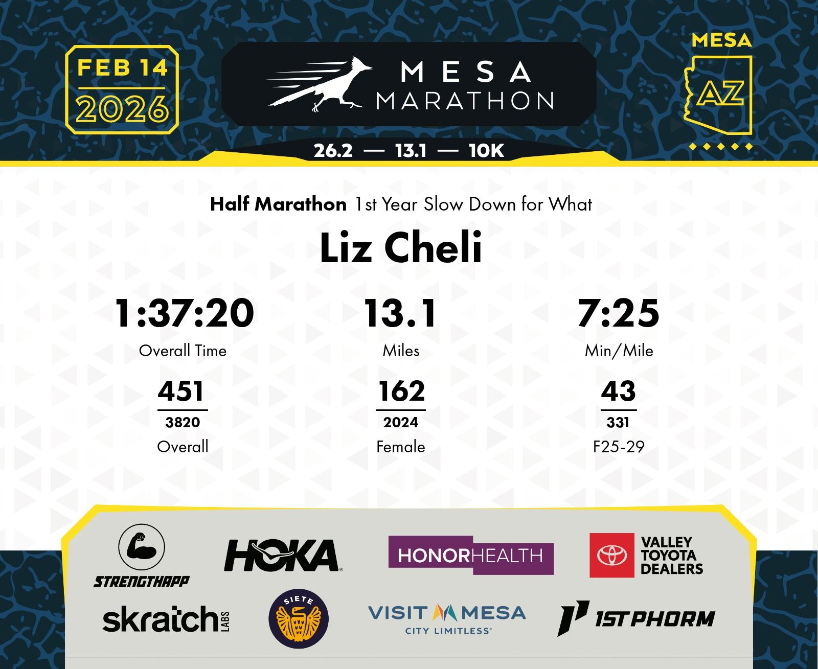 Date: Feb. 14, 2026 Participant: Liz Cheli #14925 Race: 2026 Mesa Half Marathon Distance: 13.1 miles