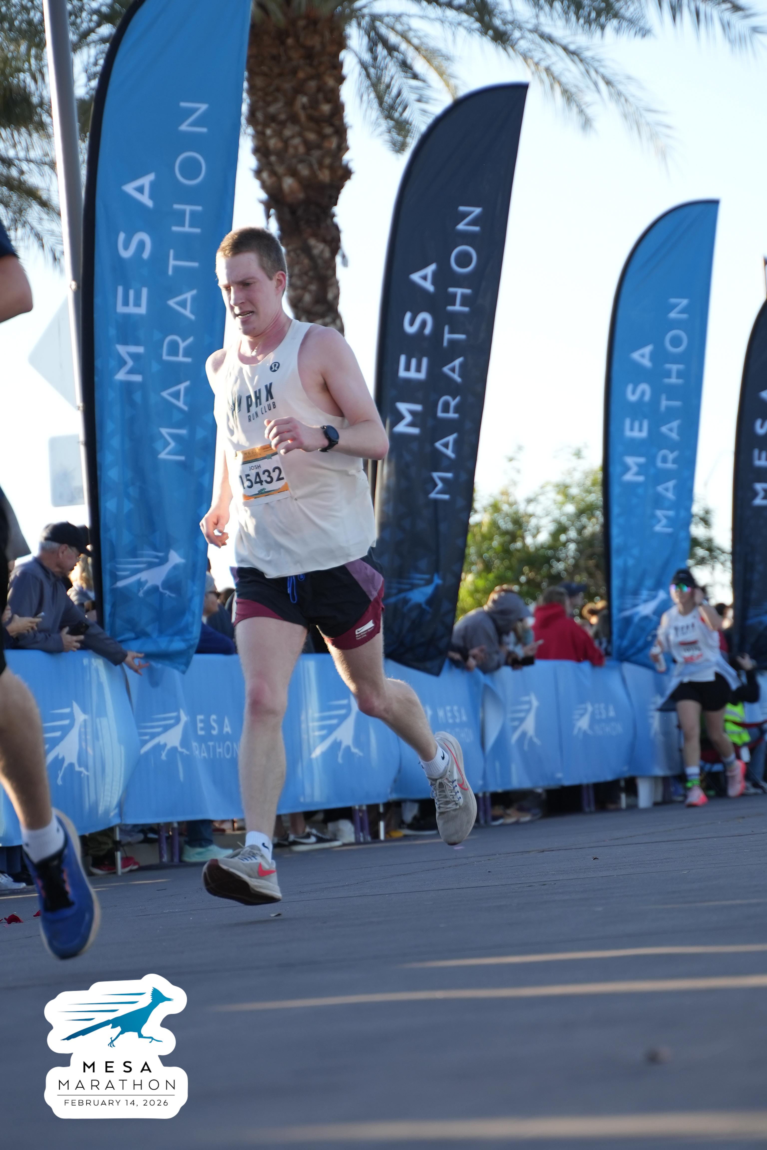 Date: Feb. 14, 2026 Participant: Josh Gavin #15432 Race: 2026 Mesa Half Marathon Distance: 13.1 miles