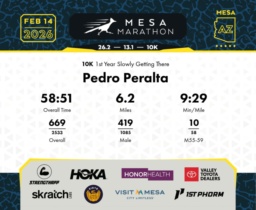 Date: Feb. 14, 2026 Participant: Pedro Peralta #19296 Race: 2026 Mesa 10K Distance: 6.2 miles