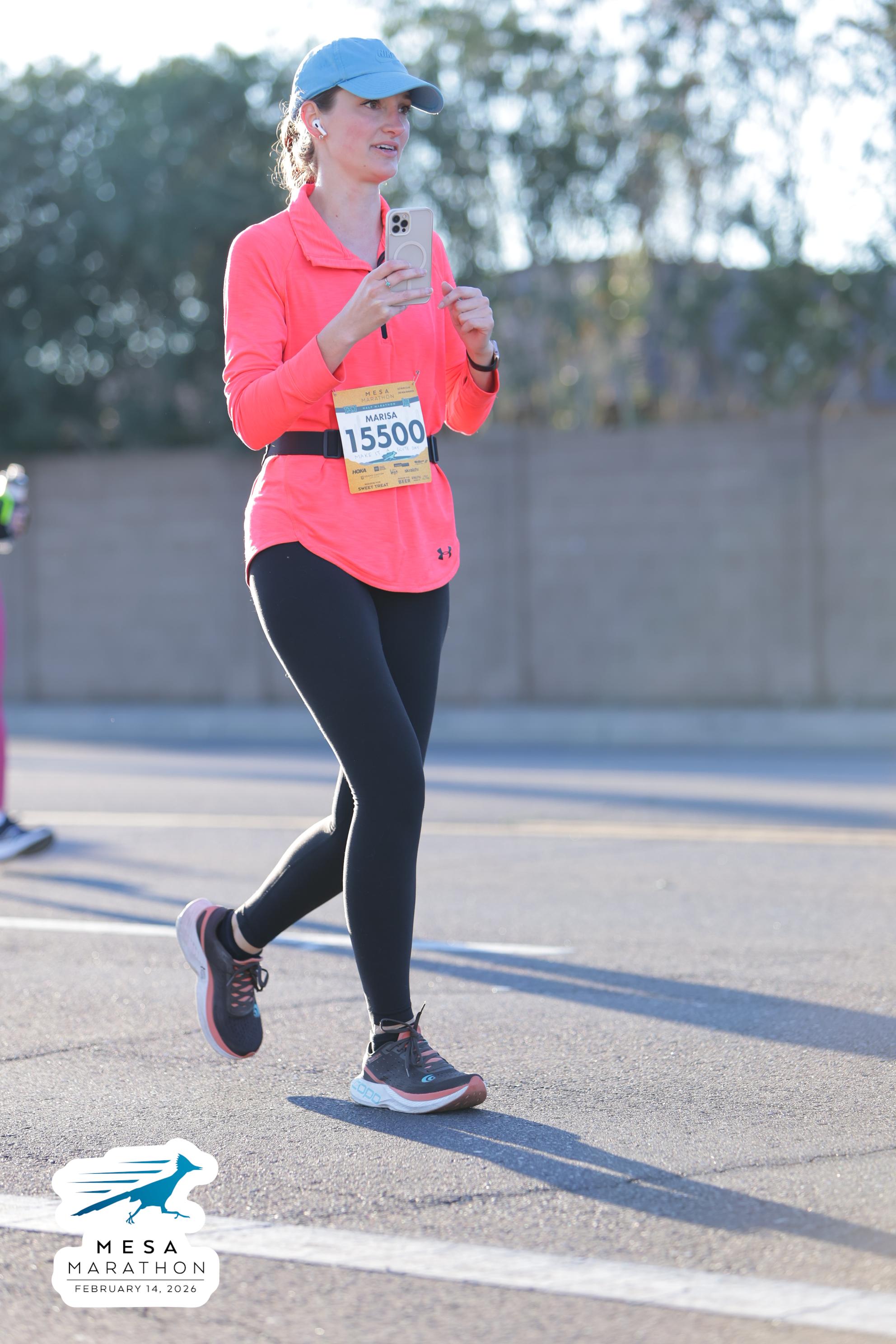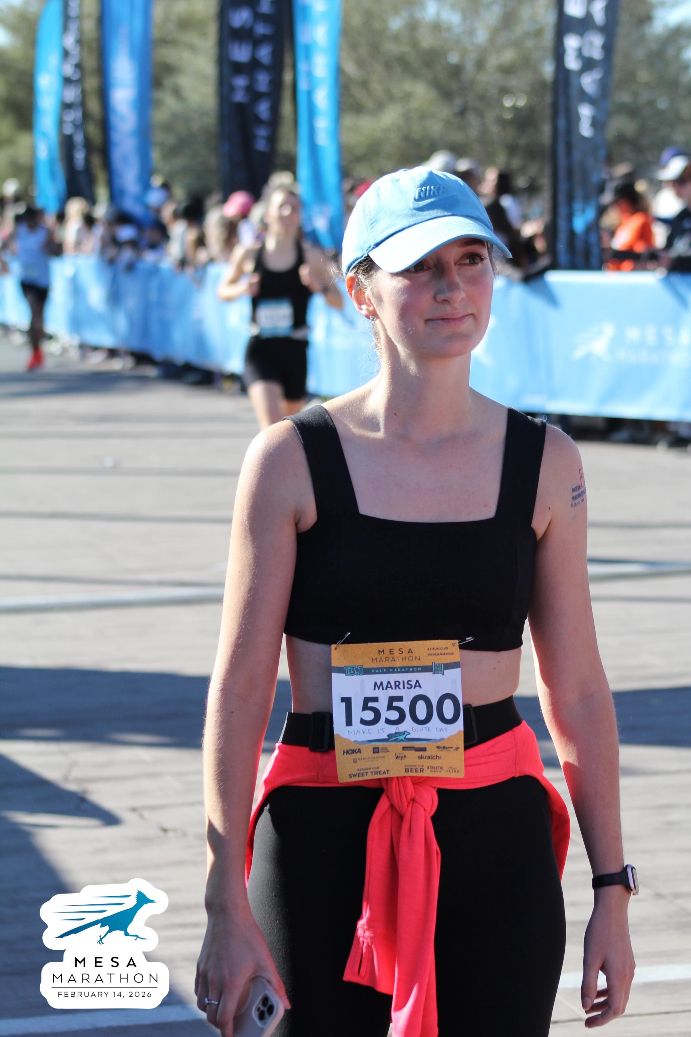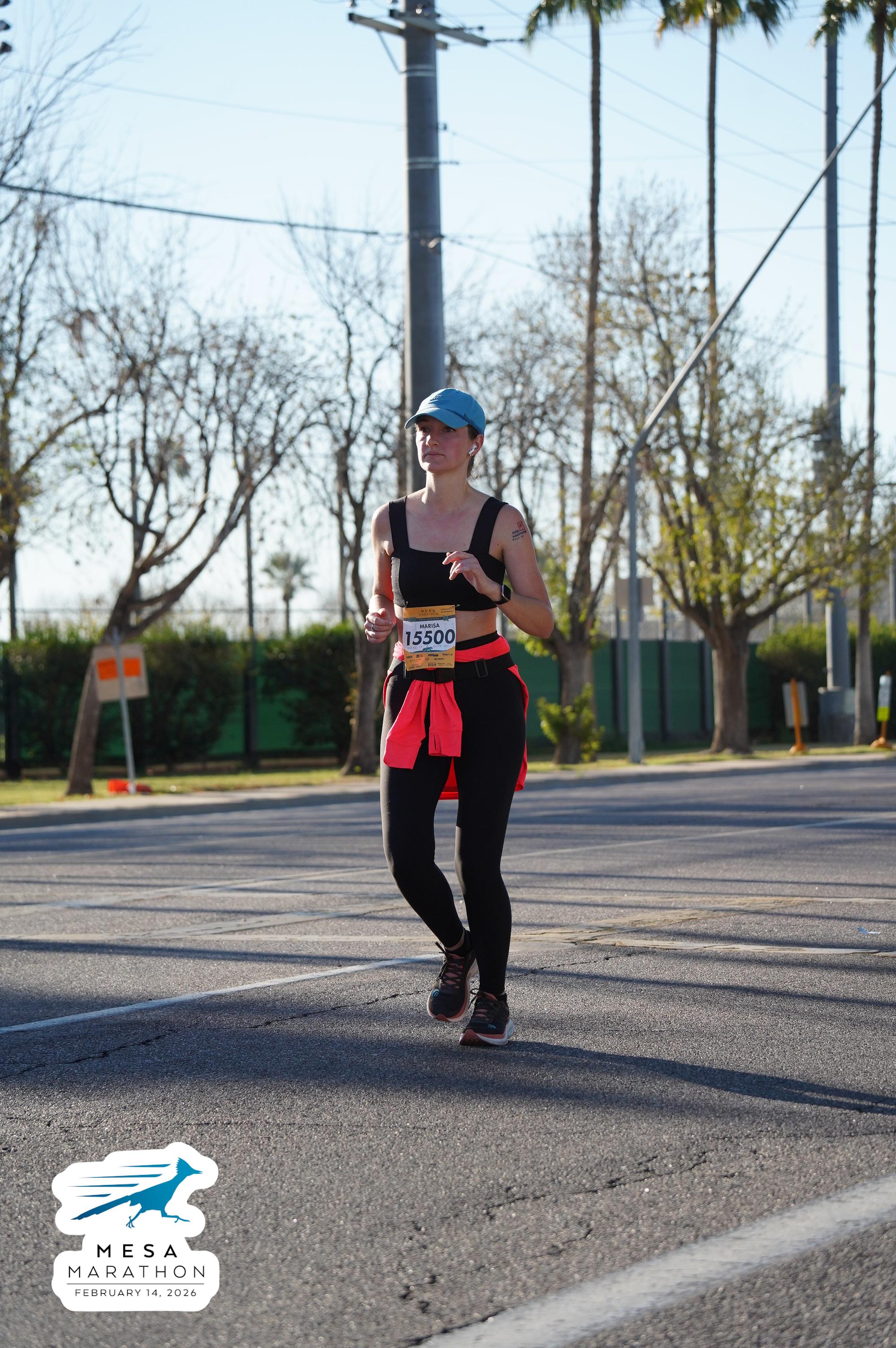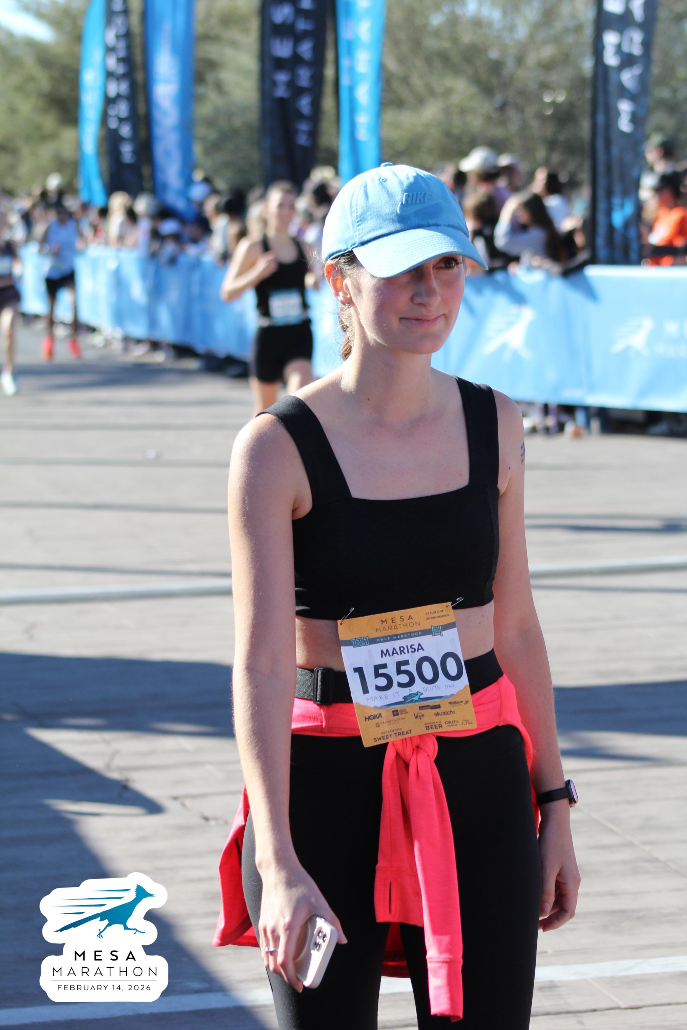 Date: Feb. 14, 2026 Participant: Marisa Green #15500 Race: 2026 Mesa Half Marathon Distance: 13.1 miles